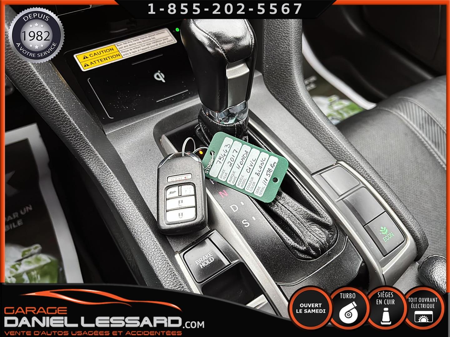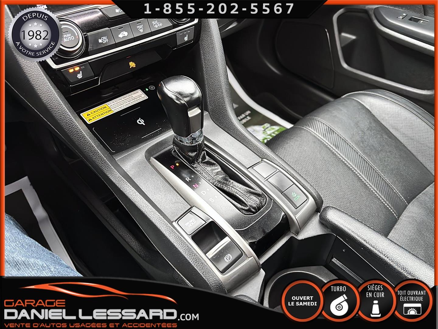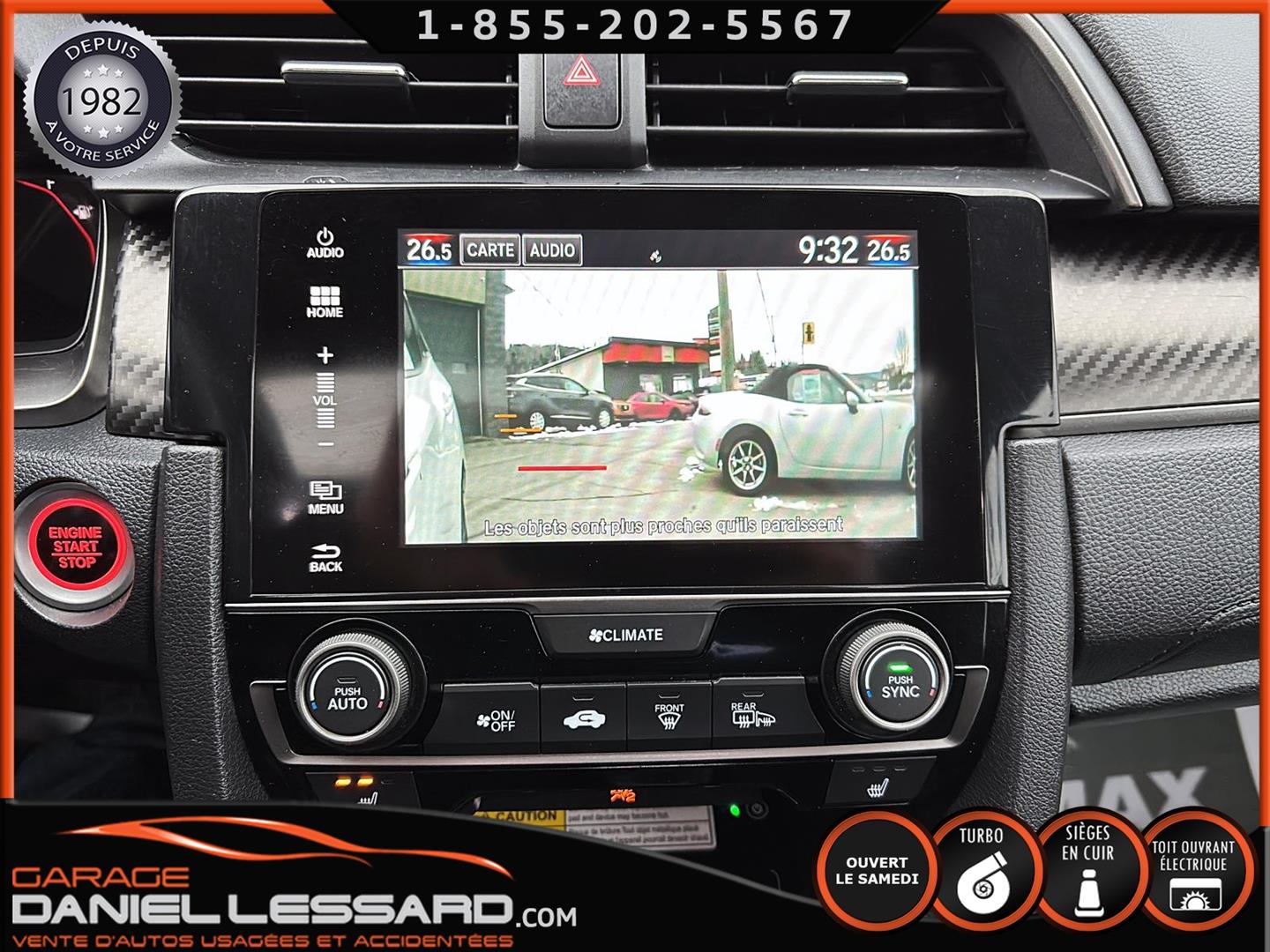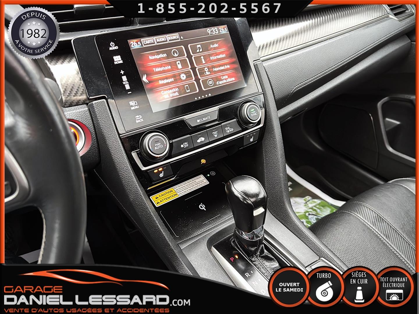 HONDA CIVIC 4 PORTES À HAYON HBK *SPORT TOURING* 2017, BLANC PERLE, TRANSMISSION AUTOMATIQUE AVEC PADDLE SHIFT AU VOLANT, TOIT OUVRANT, MOTEUR 1.5 LITRES TURBO, INTÉRIEUR EN CUIR AVEC BANC AVANT ET ARRIÈRE CHAUFFANT, LES 2 SIÈGES AVANT SONT ÉLECTRIQUES, LE SIÈGE CONDUCTEUR À 8 RÉGLAGES ET PASSAGER AVANT À 4 RÉGLAGES, SYSTÈME DE NAVIGATION GPS D'ORIGINE, RADIO SATELLITE XM, CAMÉRA DE RECUL ET ANGLE MORT, ÉCRAN TACTILE, SYSTÈME D'ALERTE COLLISION ET ASSISTANCE AU FREINAGE, SYSTÈME D'AVERTISSEMENT DE CHANGEMENT DE VOIE, RÉTROVISEUR ÉLECTROCHIMIQUE, CLIMATISATION 2 ZONES DIGITALE, PHARE AVANT AU DEL, LUMIÈRE À BRUME, PORT USB ET AUXILIAIRE, MODE ÉCO, TRACTION CONTROL, DÉMARRAGE À BOUTON POUSSOIR, SYSTÈME APPLE CARPLAY / ANDROID AUTO, CONNECTIVITÉ WI – FI, RECHARGE SANS FIL POUR APPAREIL COMPATIBLE, RAIN SENSOR, CRUISE ADAPTATIF MONTÉ AU VOLANT, VITRES TEINTÉES, MOULURE DE BAS DE PORTE ET JUPE NOIR PEINTES, MAGS AVEC PNEU D'ÉTÉ MOMO M3 225 / 40 / 18 USÉE A 50%, AILERON, VITRE TEINTÉ, 1 CLÉ INTELLIGENTE AVEC DÉMARREUR À DISTANCE ** LES MAGS ONT ÉTÉ REPEINT, PETITE IMPERFECTION AU PARE CHOC ARRIERE **