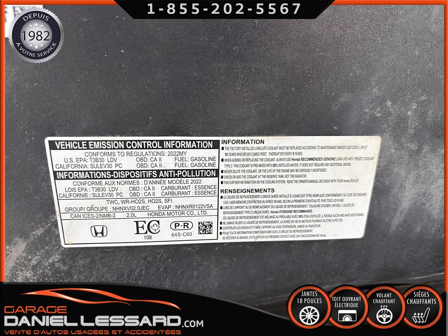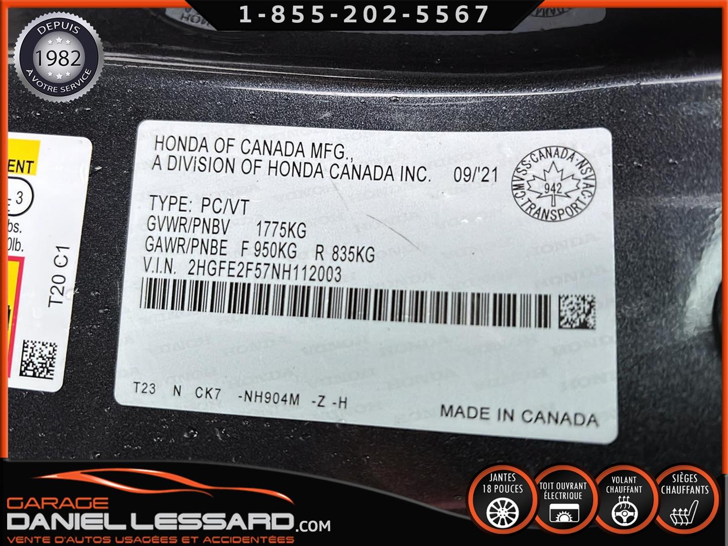 HONDA CIVIC 2022 MODELE ** SPORT ** TRÈS BIEN ÉQUIPÉ, COULEUR GRIS CHARBON, SEULEMENT 55.963 KM AU COMPTEUR, TRANSMISSION AUTOMATIQUE, MOTEUR FIABLE ET ECONOMQUE 2.0 LITRES 4 CYLINDRES, BANCS AVANT CHAUFFANT, VOLANT CHAUFFANT, TOIT OUVRANT, DETECTEUR D'ANGLES MORT, CRUSE CONTROLE ADAPTATIF, AVERTISSEUR DE CHANGEMENT DE VOIES, TAPIS 4 SAISONS D'ORIGINE HONDA, DEMARREUR A DISTANCE INTÉGRÉ D'ORIGINE, NOUS AVONS UNE SEULE CLEF EN MAIN, BIEN CHAUSSÉ SUR PNEUS D'HIVER MICHELIN X-ICE 235 / 40 / 18 MONTÉ SUR MAGS 18 POUCES, MANUEL DU PROPRIETAIRE INCLUS, ET BIEN PLUS ENCORE TRÈS BELLE BERLINE DISPONIBLE DÈS MAINTENANT, FINANCEMENT DISPONIBLE, VEHICULE RECONSTRUIT ACCIDENTÉ RÉPARÉ, NOUS INCLUONS UNE GARANTIE BONNE POUR 3 MOIS / 5000 KM