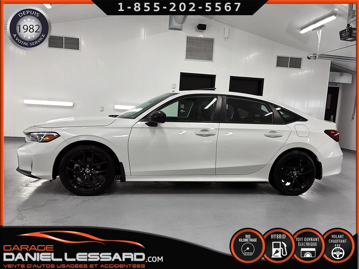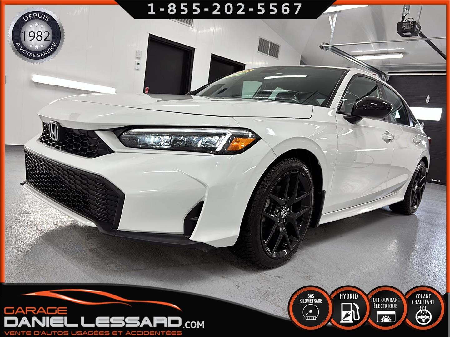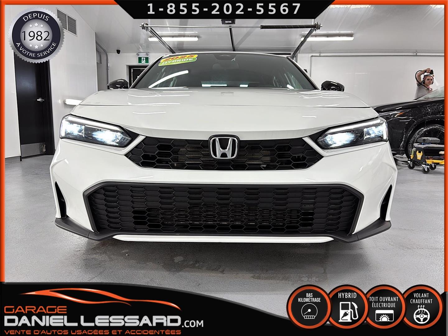 HONDA CIVIC ** HYBRID SPORT ** 2025, BAS KM, MOTEUR 2.0 LITRES, AUTOMATIQUE, CONTROL AUDIO, TÉLÉPHONIQUE, CRUISE CONTROL ET VITESSE AU VOLANT, BANC AVANT ET VOLANT CHAUFFANT, PUSH START, CLIMATISATION 2 ZONES, TOIT OUVRANT, MODE SPORT, NORMAL ET ECO, MAGS AVEC PNEU D'HIVER CONTINENTAL ICE CONTACT 235 / 40 / 18 AVEC 30% D'USURE, ANGLE MORT, CAMERA DE RECUL, GARDE BOUE, 1 SEUL CLÉ AVEC DÉMARREUR A DISTANCE, TAPIS DE CAOUTCHOUC AVANT ET ARRIÈRE ET LA LOCK NUT,