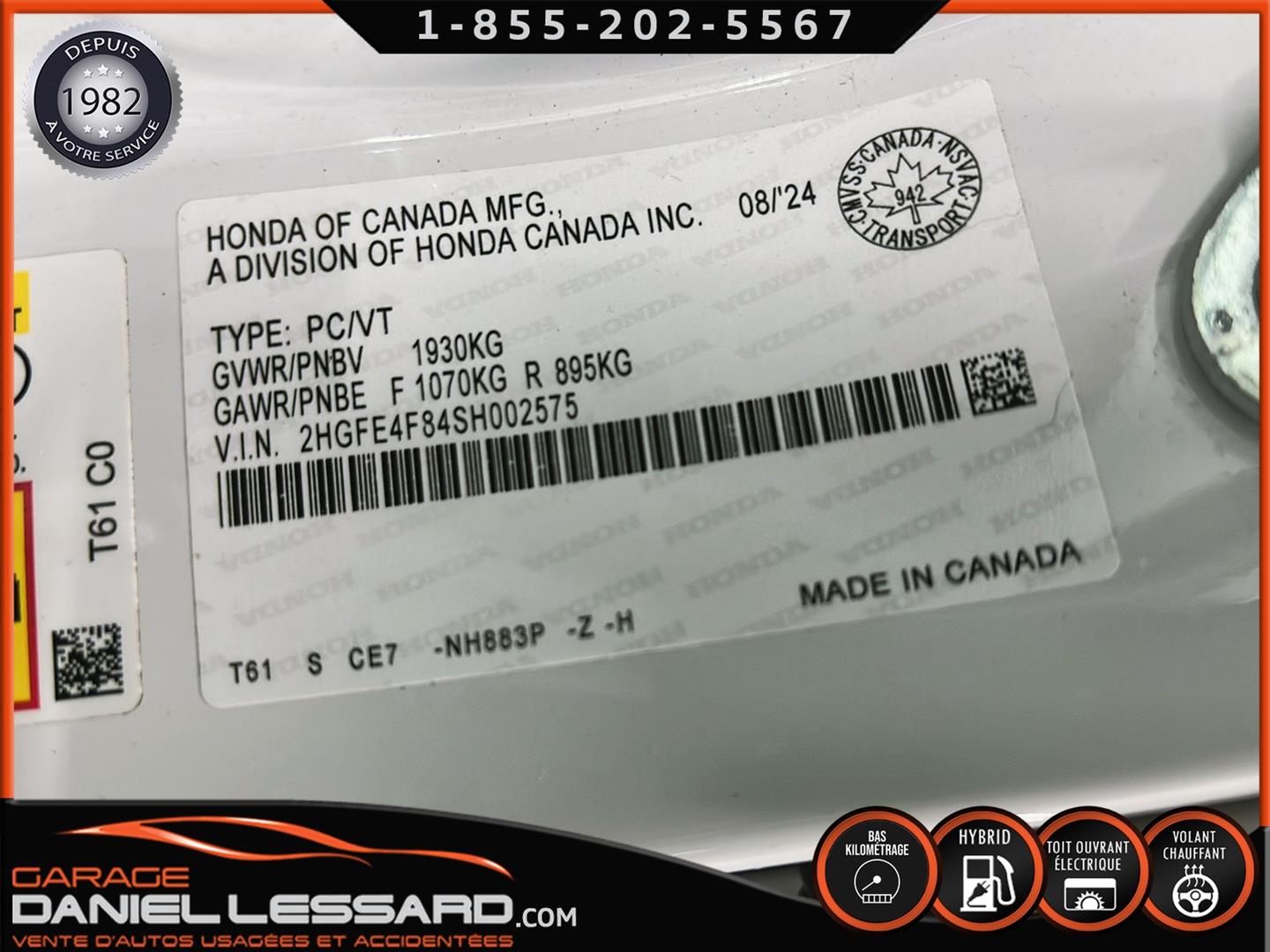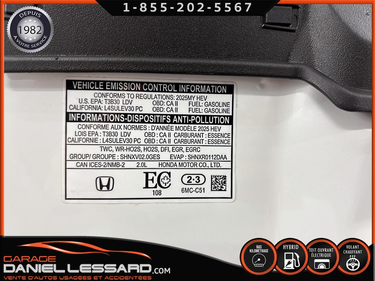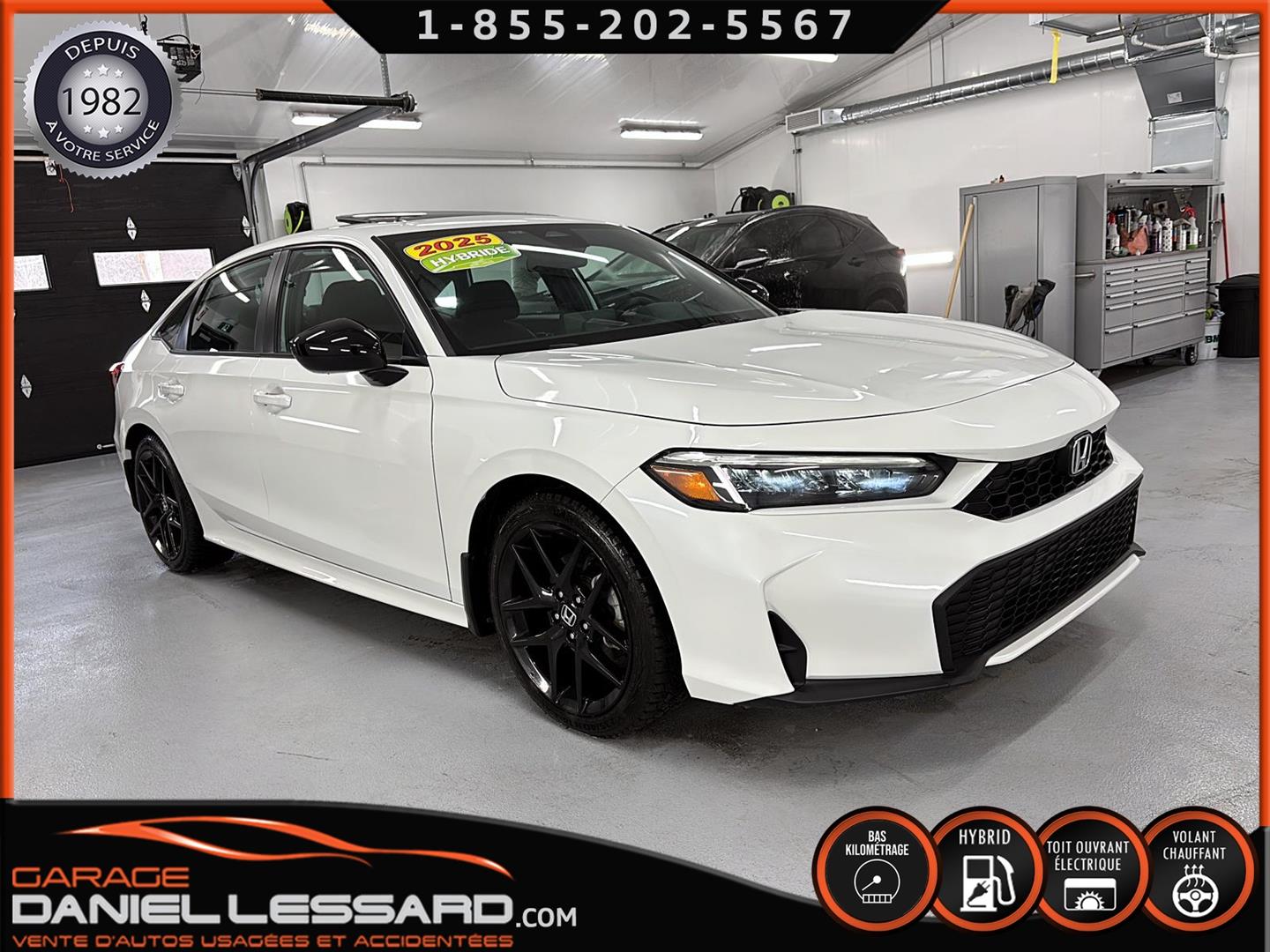 HONDA CIVIC ** HYBRID SPORT ** 2025, BAS KM, MOTEUR 2.0 LITRES, AUTOMATIQUE, CONTROL AUDIO, TÉLÉPHONIQUE, CRUISE CONTROL ET VITESSE AU VOLANT, BANC AVANT ET VOLANT CHAUFFANT, PUSH START, CLIMATISATION 2 ZONES, TOIT OUVRANT, MODE SPORT, NORMAL ET ECO, MAGS AVEC PNEU D'HIVER CONTINENTAL ICE CONTACT 235 / 40 / 18 AVEC 30% D'USURE, ANGLE MORT, CAMERA DE RECUL, GARDE BOUE, 1 SEUL CLÉ AVEC DÉMARREUR A DISTANCE, TAPIS DE CAOUTCHOUC AVANT ET ARRIÈRE ET LA LOCK NUT,