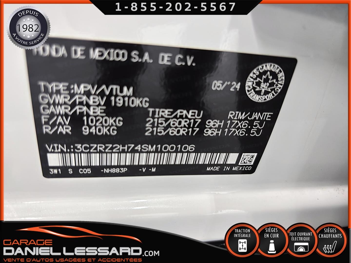HONDA HR-V EX-L NAVI AWD 2025, 4 CYLINDRES DE 2,0 LITRES, SYSTÈME À ROUAGE INTÉGRAL, 17 PO EN ALLIAGE D’ALUMINIUM SUR PNEUS NEUF DE MARQUE MAXTREK MAXIMUS 215/60/17, SYSTÈME DE CLIMATISATION AUTOMATIQUE BIZONE, CAPTEURS DE LA DISTANCE DE STATIONNEMENT AVANT ET ARRIÈRE, ÉCRAN TACTILE DE 9 PO AVEC SYSTÈME DE NAVIGATION, RÉGULATEUR DE VITESSE ADAPTATIF, SYSTÈME DE RECONNAISSANCE DES PANNEAUX DE SIGNALISATION, SYSTÈME D’INFORMATION D’ANGLE MORT, TOIT OUVRANT ÉLECTRIQUE À UN BOUTON, VOLANT GAINÉ DE CUIR CHAUFFANT, SIÈGES AVANT CHAUFFANTS EN CUIR, DISPOSITIF DE RECHARGE SANS FIL POUR TÉLÉPHONE, SYSTÈMES APPLE CARPLAY ET ANDROID AUTO, NOUS AVONS SEULEMENT 1CLÉ AVEC LE DÉMARREUR À DISTANCE ET LES TAPIS DE TISSUS.
