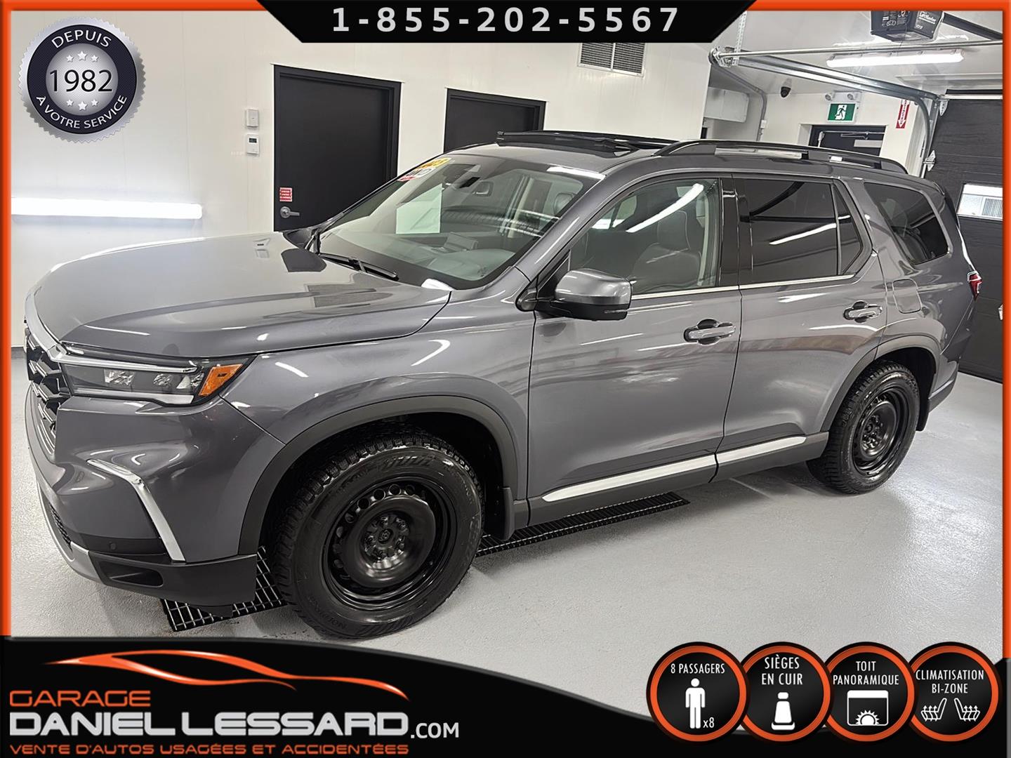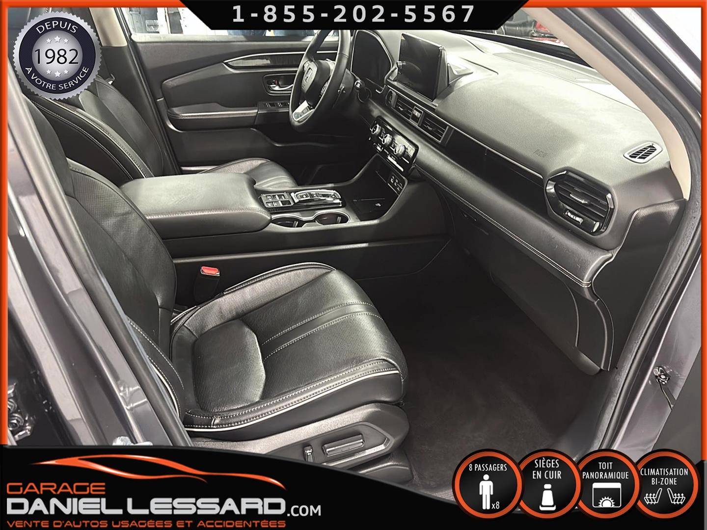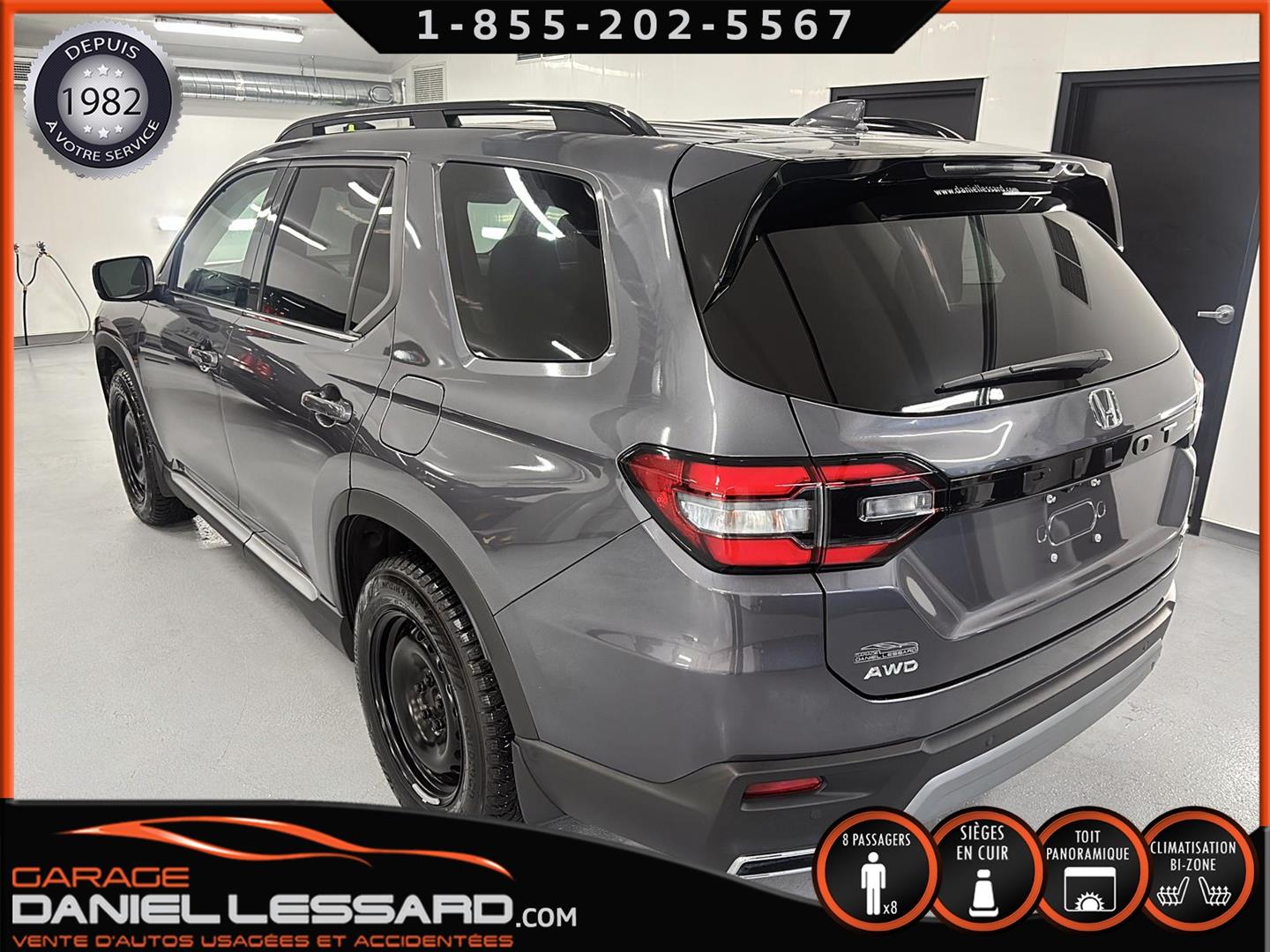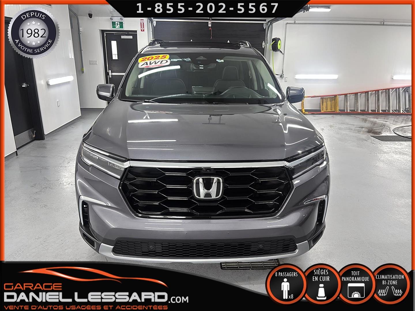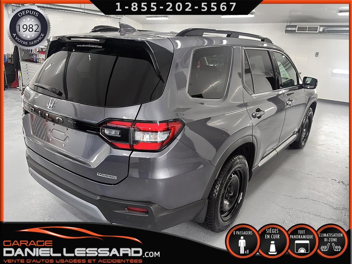 HONDA PILOT TOURING AWD 2025, BAS KM, MOTEUR 3.5 LITRES, 8 PLACES, INTÉRIEUR EN CUIR, LES BANC AVANT SONT ÉLECTRIQUE CHAUFFANT ET CLIMATISÉ, BANC CONDUCTEUR A MÉMOIRE, BANC 2 IÈMES RANGÉ CHAUFFANT, TOIT PANORAMIQUE, HAYON MÉCANIQUE, PORTE BAGAGE, ANGLE MORT, CONTROL AUDIO, TÉLÉPHONIQUE ET CRUISE CONTROL AU VOLANT, SYSTÈME DE NAVIGATION, CAMERA 360 DEGRÉ, PUSH START, CLIMATISATION 2 ZONES + CHAUFFAGE ARRIÈRE, VITRE TEINTÉ, GARDE BOUE, ROUE D'ACIER ET PNEU D'HIVER NORMAND 235 / 65 / 18 AVEC 5% D'USURE, 2 CLÉS AVEC DÉMARREUR A DISTANCE,