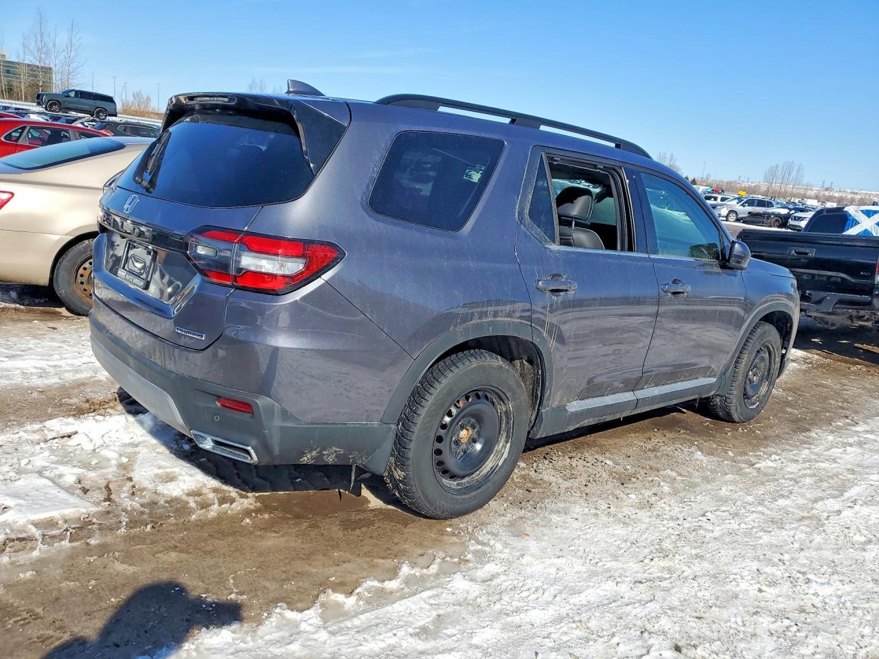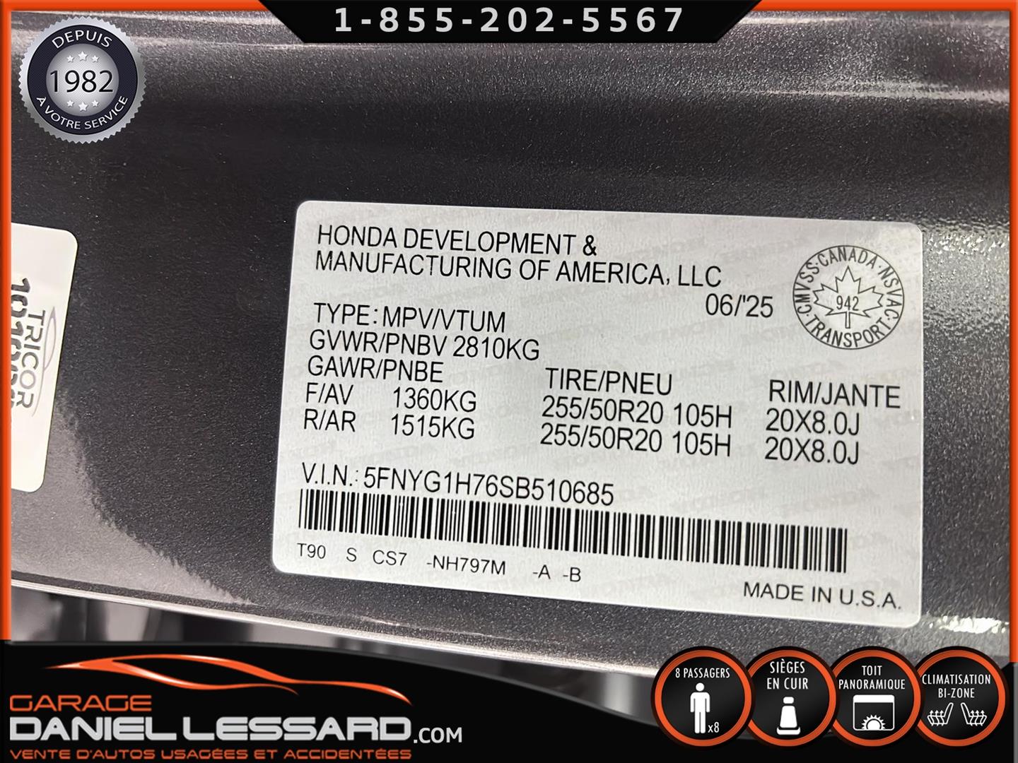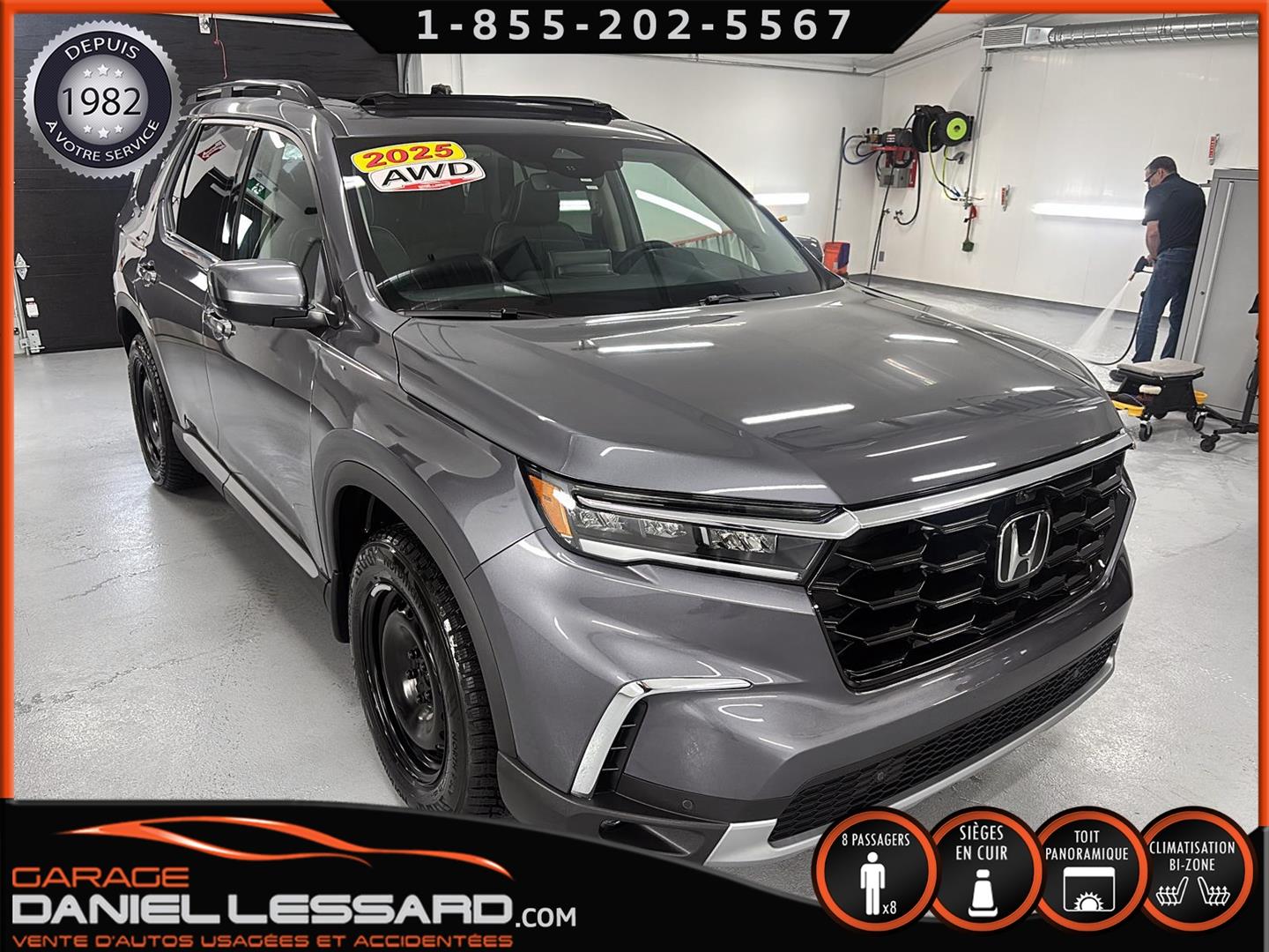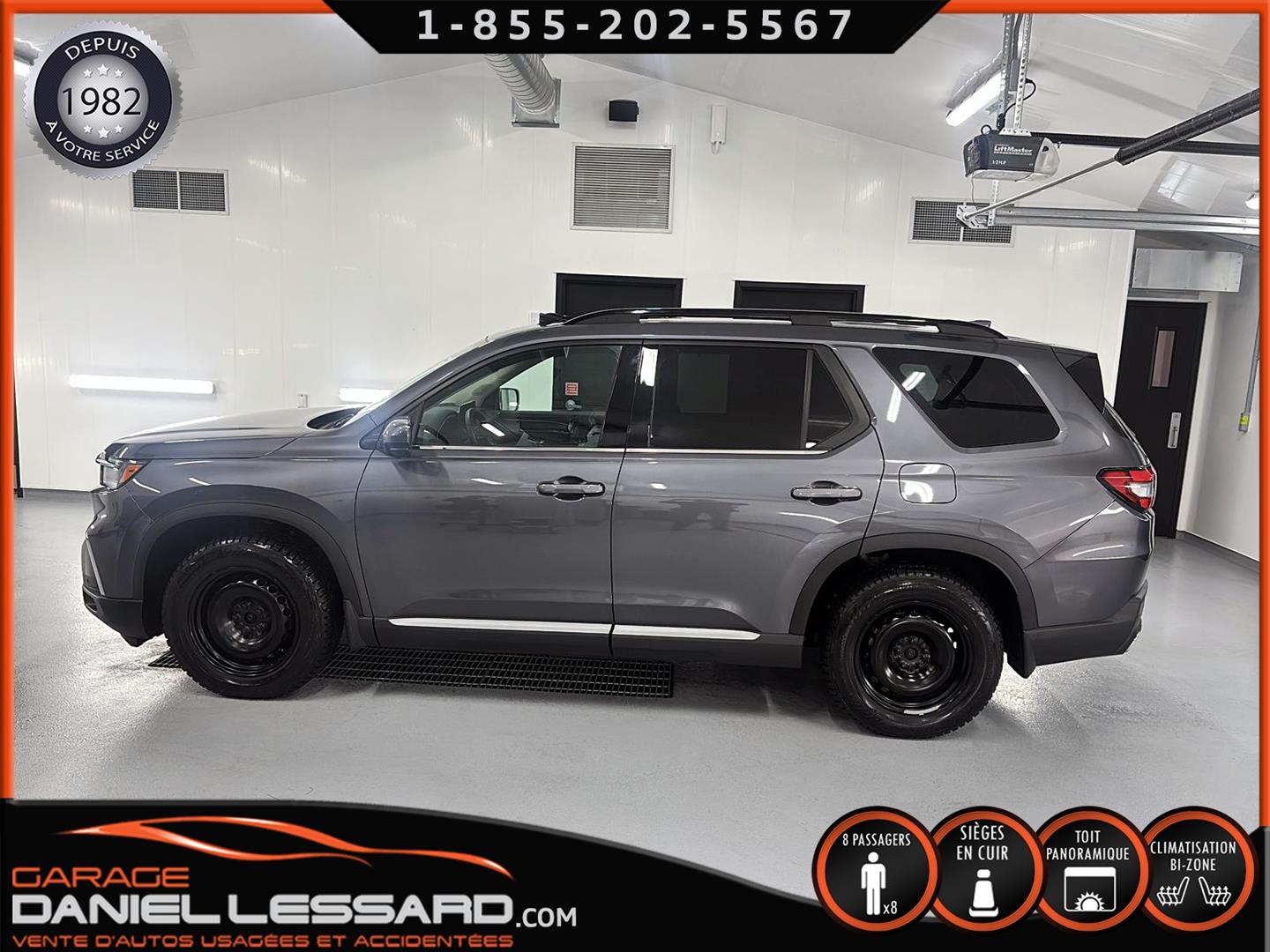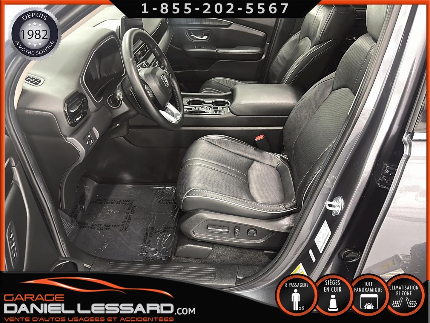 HONDA PILOT TOURING AWD 2025, BAS KM, MOTEUR 3.5 LITRES, 8 PLACES, INTÉRIEUR EN CUIR, LES BANC AVANT SONT ÉLECTRIQUE CHAUFFANT ET CLIMATISÉ, BANC CONDUCTEUR A MÉMOIRE, BANC 2 IÈMES RANGÉ CHAUFFANT, TOIT PANORAMIQUE, HAYON MÉCANIQUE, PORTE BAGAGE, ANGLE MORT, CONTROL AUDIO, TÉLÉPHONIQUE ET CRUISE CONTROL AU VOLANT, SYSTÈME DE NAVIGATION, CAMERA 360 DEGRÉ, PUSH START, CLIMATISATION 2 ZONES + CHAUFFAGE ARRIÈRE, VITRE TEINTÉ, GARDE BOUE, ROUE D'ACIER ET PNEU D'HIVER NORMAND 235 / 65 / 18 AVEC 5% D'USURE, 2 CLÉS AVEC DÉMARREUR A DISTANCE,