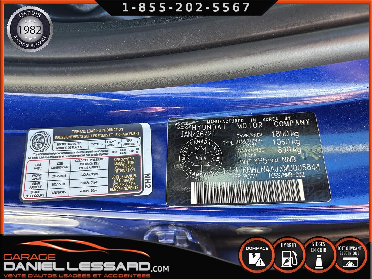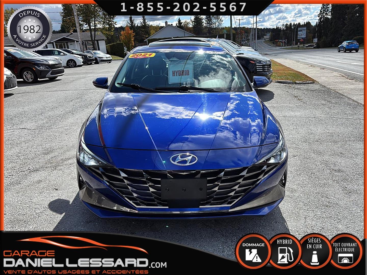 TRES BEAU HYUNDAI ELANTRA ULTIMATE 2021 DE COULEUR BLEU, EDITION ** HYBRIDE ** NON BRANCHABLE DONC À LA FOIS ESSENCE ET ELECTRIQUE, LE MEILLEUR DES 2 MONDES !!! SEULEMENT 56. 301 KM AU COMPTEUR, 4 PORTES, MOTEUR 1.6 LITRES 4 CYLINDRES, TRANSMISSION AUTOMATIQUE, EDITION FULL ÉQUIPÉ AVEC INTERIEUR EN CUIR NOIR, BANCS AVANT CHAUFFANT, VOLANT CHAUFFANT, TOIT OUVRANT ELECTRIQUE, BLINDSPOT ANGLES MORT, VITRES ET MIROIRS ELECTRIQUE, AFFICHAGE SUR ECRAN DE BORD TACTILE, CAMERA DE RECUL, RADIO COMPATIBLE POUR APPLECARPLAY ET ANDROIDAUTO, TAPIS INDUCTION INTÉGRÉ QUI RECHARGE VOTRE APPAREIL SANS FIL, AIR CLIMATISÉ DOUBLE ZONE, CRUSE CONTROLE ADAPTATIF, AVERTISSEUR DE CHANGEMENT DE VOIES, PNEUS D'HIVER MICHELIN X-ICE SNOW 195 / 60 / 16 MONTÉ SUR ROUES D'ACIER ET ENJOLIVEURS, NOUS AVONS UNE CLEF EN MAIN, DEMARREUR A DISTANCE INTÉGRÉ D'ORIGINE, LES TAPIS SONT MANQUANTS
