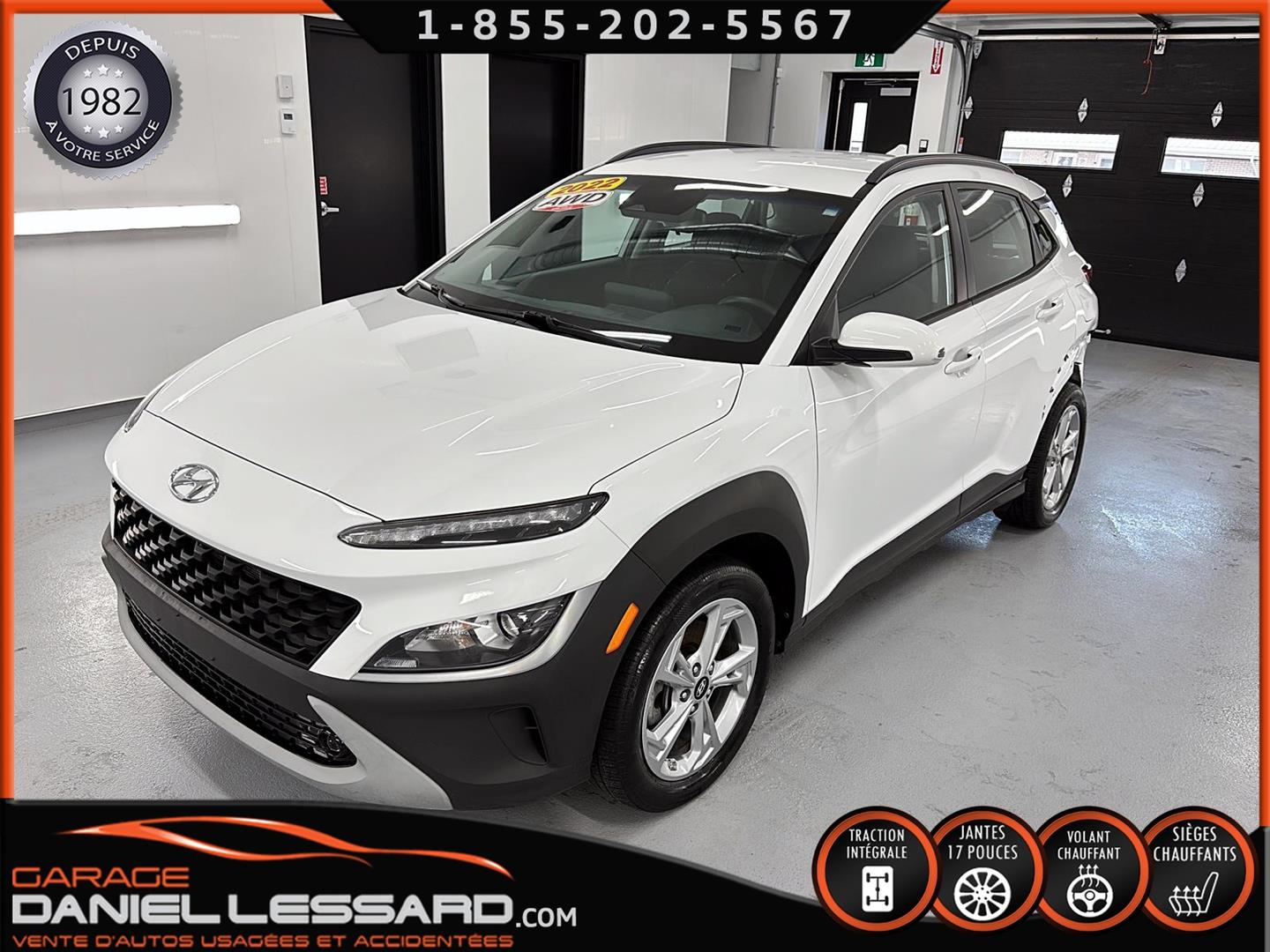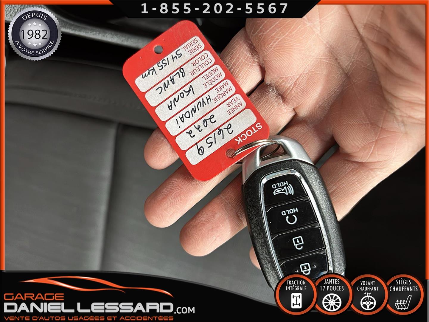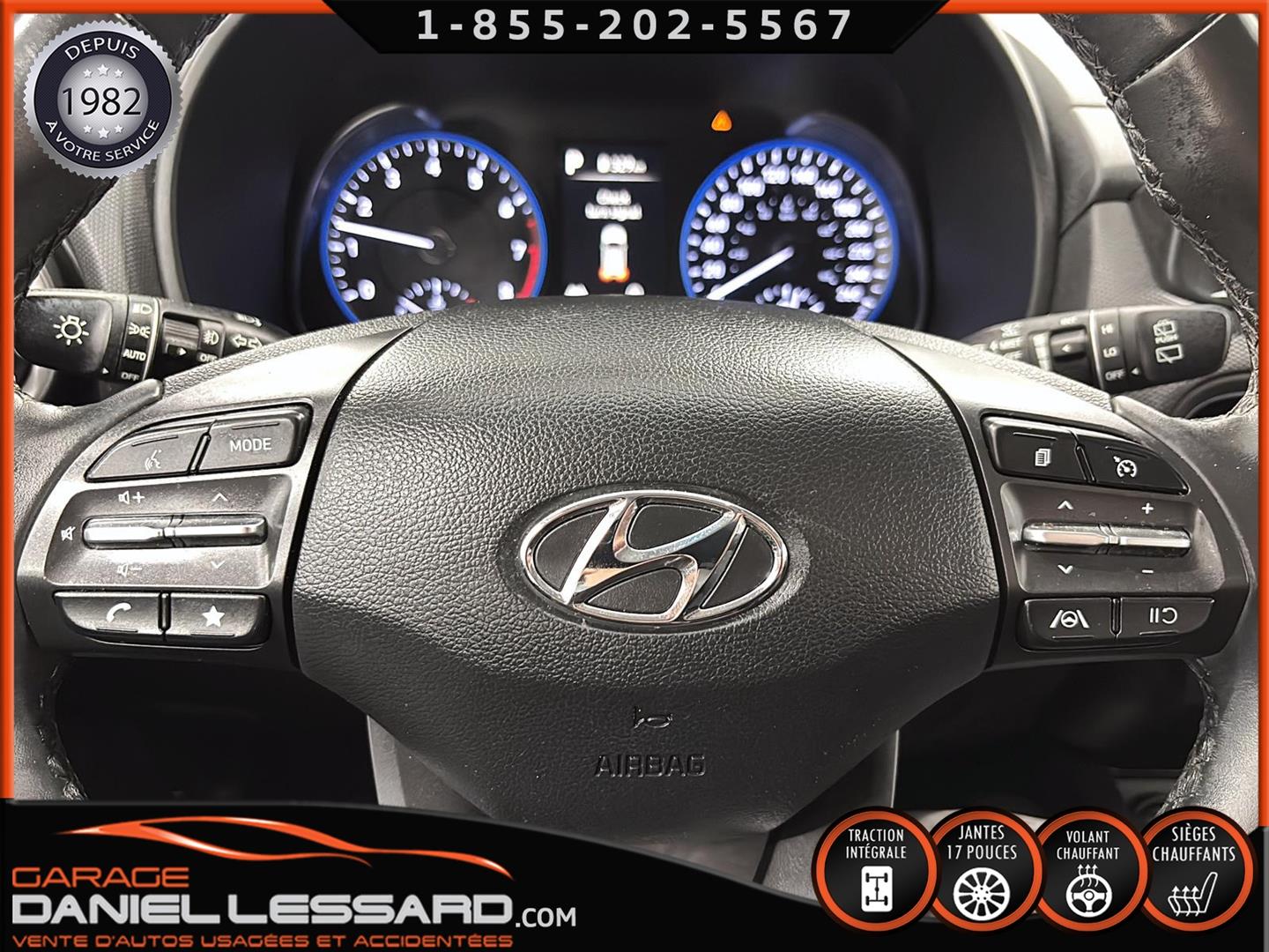HYUNDAI KONA PREFERRED À TRACTION INTÉGRALE, MOTEUR 4 CYLINDRE DE 2,0 L, JANTES EN ALLIAGE D’ALUMINIUM DE 17 PO SUR PNEUS NEXEN NPRIZ S 215/55/17, VOLANT CHAUFFANT, ÉCRAN TACTILE DE 8 PO AVEC APPLE CARPLAY ET ANDROID AUTO SANS FIL, SIÈGES AVANT CHAUFFANTS, CLIMATISEUR, SYSTÈME DE TÉLÉPHONIE MAINS LIBRES BLUETOOTH, NOUS AVONS SEULEMENT 1 CLÉ
