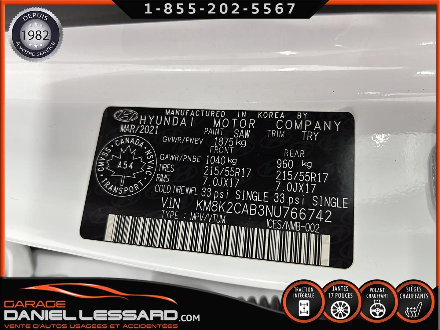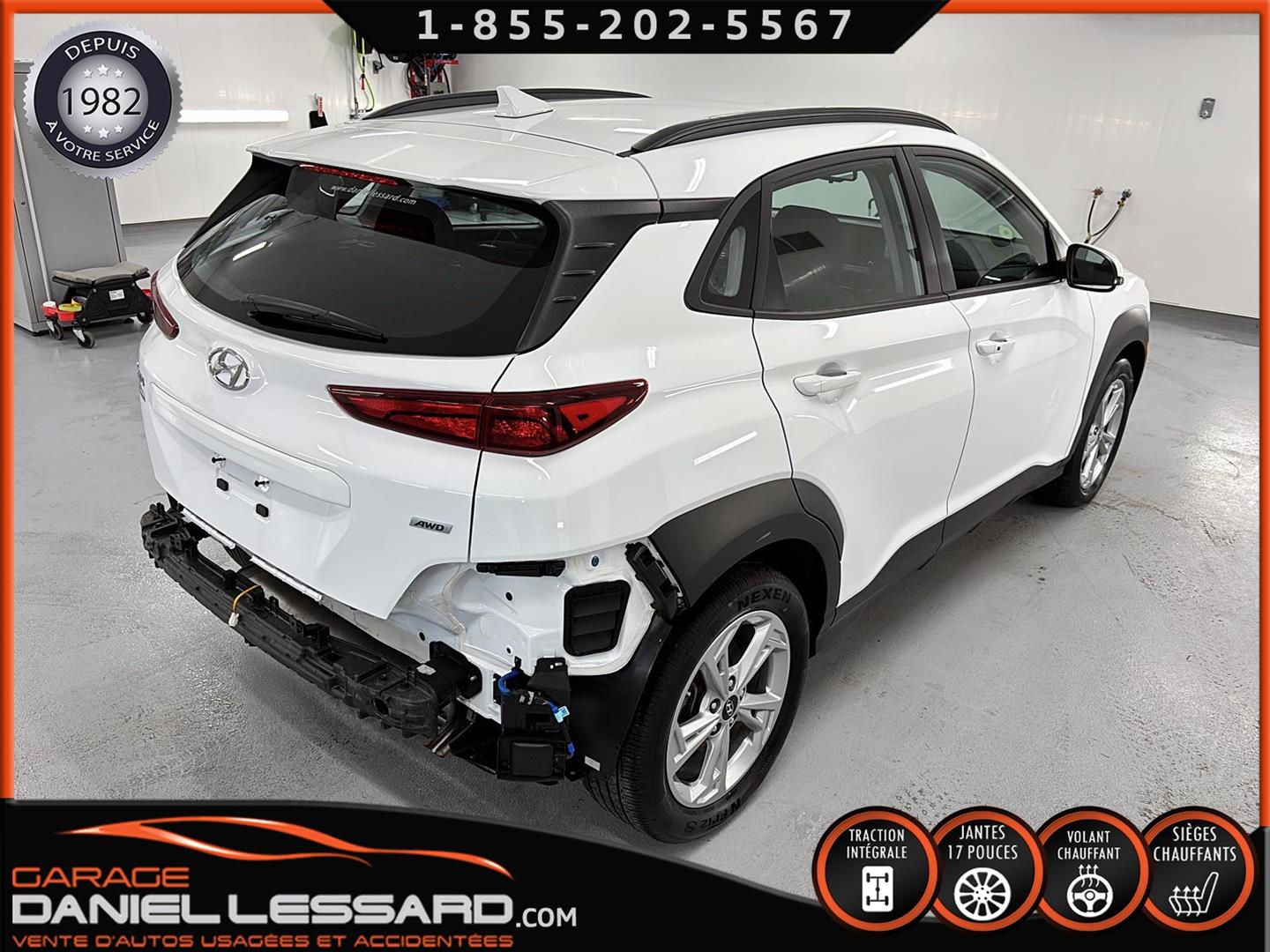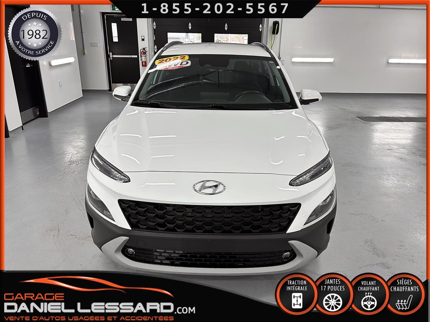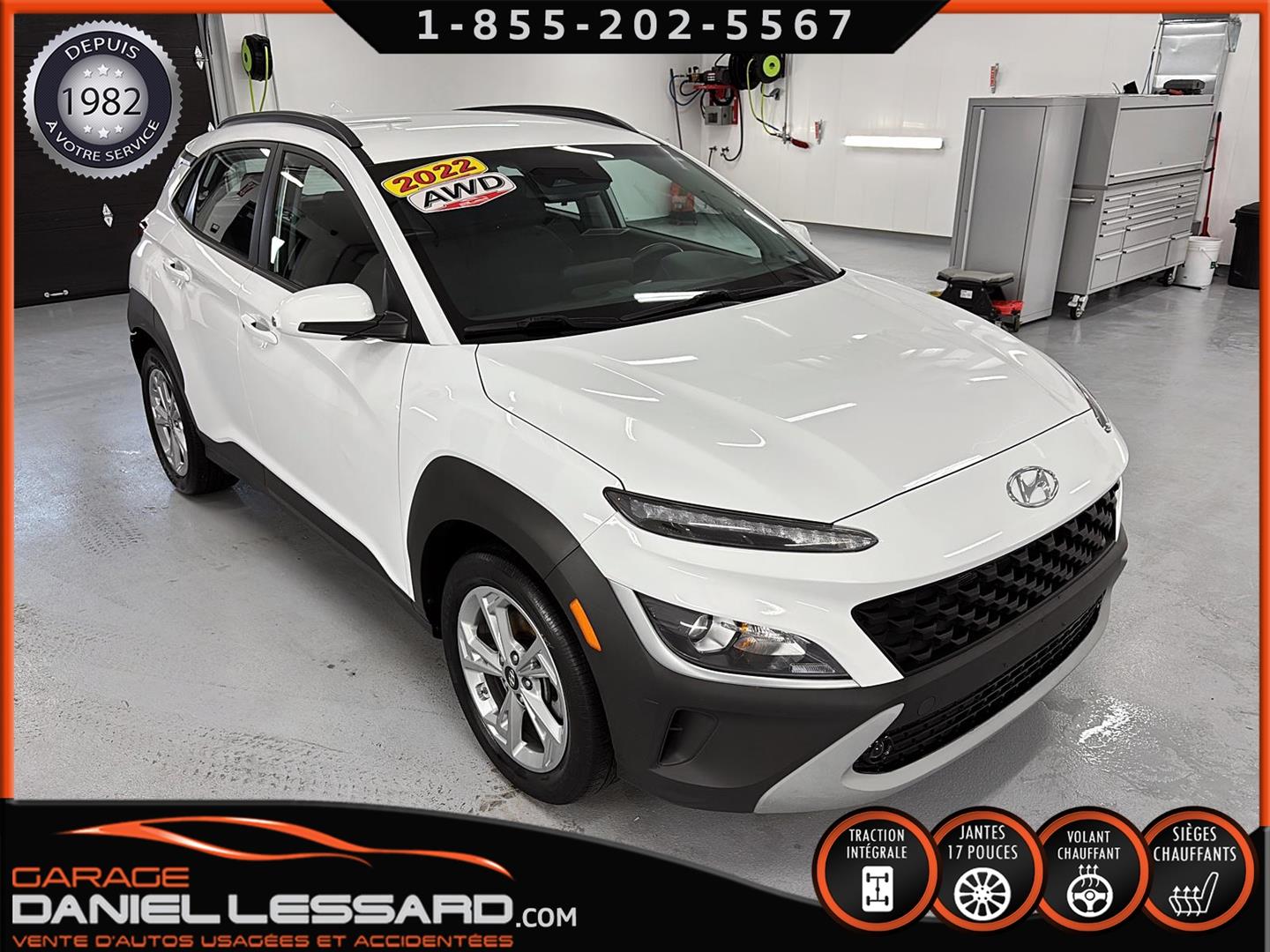 HYUNDAI KONA PREFERRED À TRACTION INTÉGRALE, MOTEUR 4 CYLINDRE DE 2,0 L, JANTES EN ALLIAGE D’ALUMINIUM DE 17 PO SUR PNEUS NEXEN NPRIZ S 215/55/17, VOLANT CHAUFFANT, ÉCRAN TACTILE DE 8 PO AVEC APPLE CARPLAY ET ANDROID AUTO SANS FIL, SIÈGES AVANT CHAUFFANTS, CLIMATISEUR, SYSTÈME DE TÉLÉPHONIE MAINS LIBRES BLUETOOTH, NOUS AVONS SEULEMENT 1 CLÉ