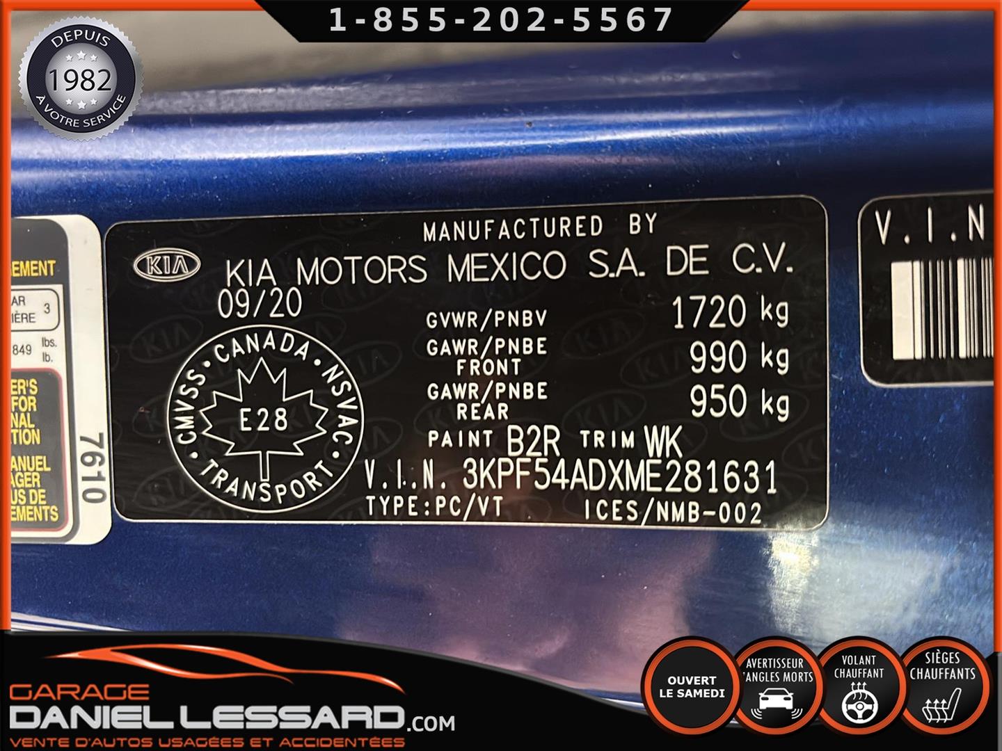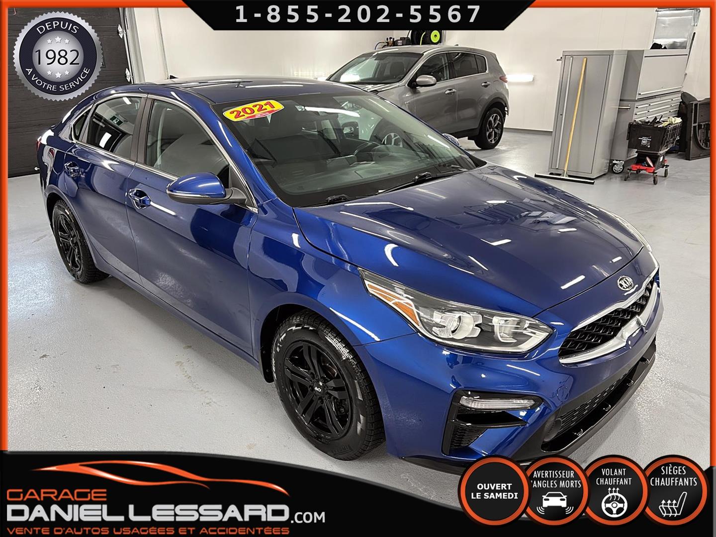 SUPERBE KIA FORTE EX 2021 BERLINE 4 PORTES DE COULEUR BLUE AVEC 74730KM AU COMPTEUR ! TRANSMISSION AUTOMATIQUE, MOTEUR FIABLE ET TRES ÉCONOMIQUE 2.0 LITRES, ÉDITION EX BIEN ÉQUIPÉ AVEC INTÉRIEUR EN TISSUS GRIS CHARBON, BANCS AVANT CHAUFFANT ET VOLANT CHAUFFANT, VITRES ET MIROIRS ÉLECTRIQUE, DÉTECTEUR D'ANGLES MORT, AVERTISSEUR DE CHANGEMENT DE VOIES, AFFICHAGE SUR GRANDE ÉCRAN DE BORD AVEC CAMÉRA DE RECUL, RADIO COMPATIBLE POUR APPLECARPLAY ET ANDROIDAUTO, PLAQUE INTÉGRÉ QUI RECHARGE VOTRE APPAREIL SANS FIL, COMMANDE MONTÉ AU VOLANT AVEC BLUETOOTH, COMMANDE VOCAL, CONTRÔLE AUDIO ET BIEN PLUS ENCORE, PRISES USB / 12 V / AUX, CHAUSSÉ SUR 4 PNEUS HIVER AVEC MAG DAI NOIR LUSTRÉ AVEC PNEUS PIRELLO195-65-15, AVONS 1 CLEF EN MAIN, TAPIS DE TISSUS D'ORIGINE INCLUS.