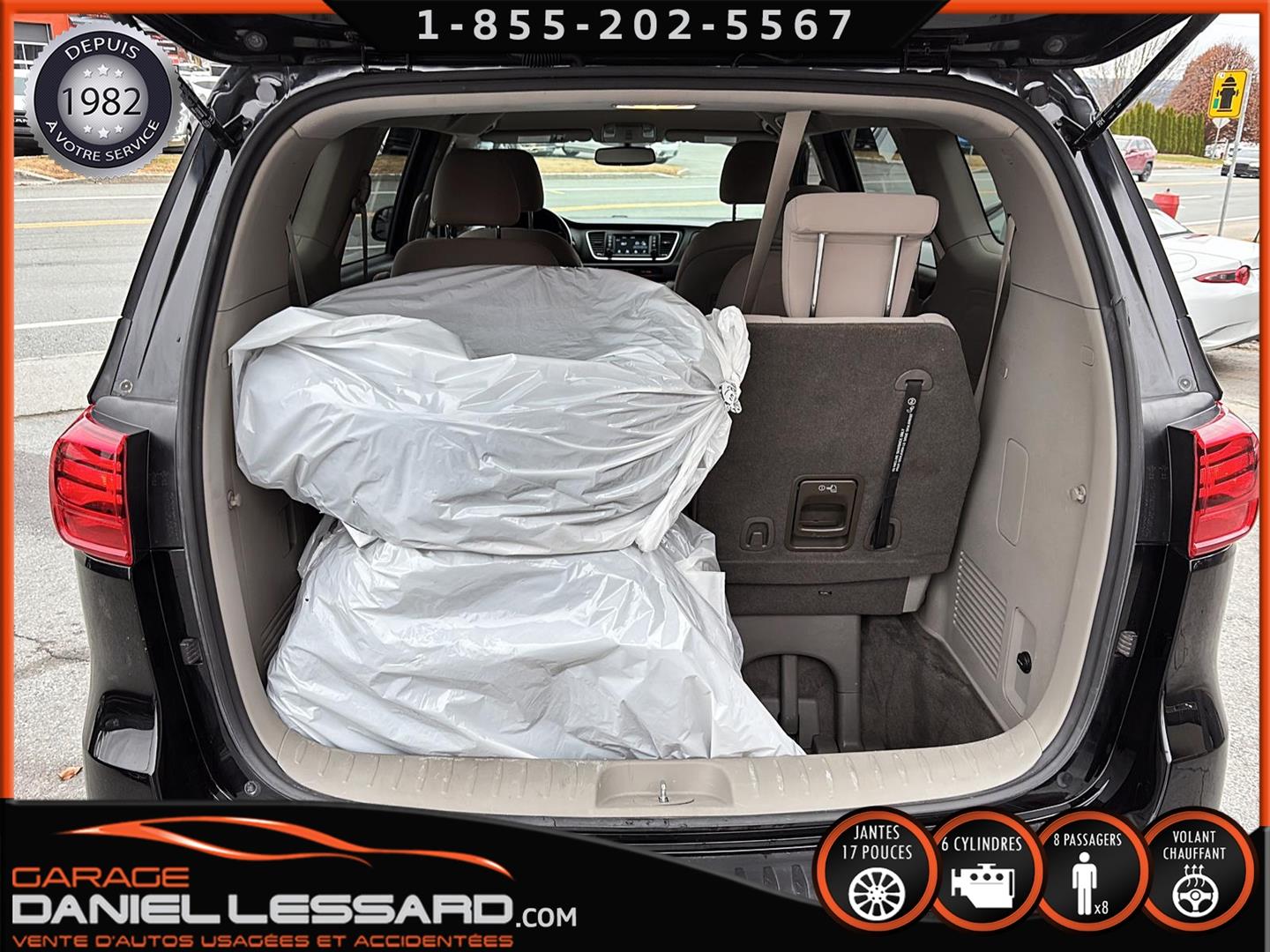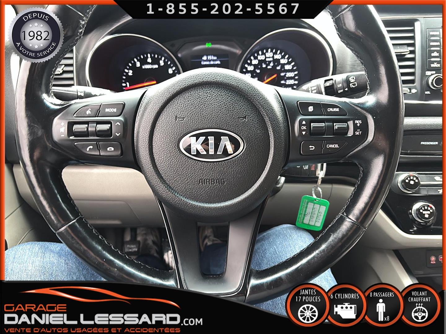 KIA SEDONA LX 2020, MOTEUR 3.3 LITRES V6, KM DE 103989KM, COULEUR ABP AURORA BLACK PEARL, CONTROL AUDIO, TÉLÉPHONIQUE ET CRUISE CONTROL AU VOLANT, LE BANC DU CONDUCTEUR EST ÉLECTRIQUE ET LES 2 SIÈGES AVANT SONT CHAUFFANT, VOLANT CHAUFFANT, CAMÉRA ET SONARD DE RECUL, RADIO AM / FM / SIRIUS, PRISE AUXILIAIRE ET USB, CLIMATISATION AVANT ET ARRIÈRE, MODE ECO, MODE ANTI PATINAGE, 3 OUVRE PORTE DE GARAGE, TRACTION CONTROL, MODE ECO, PORTE COULISSANTE ET HAYON MÉCANIQUE, MAG 17 POUCES AVEC PNEU AVANT LAUFENN X FIT EN 235-65-17 ET ARRIÈRE EN GOOD YEAR ASSURANCE EN 236-65-17, ON INCLUS AUSSI UN ENSEMBLE DE 4 PNEUS D'HIVER MAXXIS CLOUTÉ EN BONNE CONDITIONS PORTE BAGAGE, VITRE TEINTÉ, GARDE BOUE, 1 CLÉS, TAPIS ET MANUEL DU PROPRIÉTAIRE.