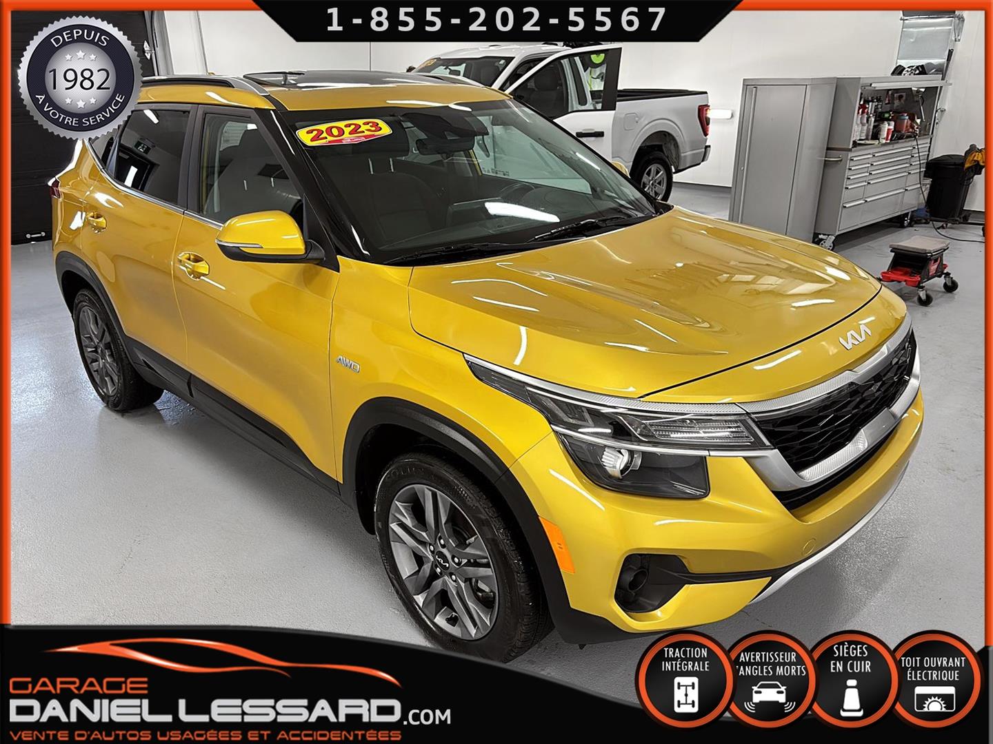 SUPERBE KIA SELTOS EX 2023 AWD D'UNE TRÈS BELLE COULEUR JAUNE ÉTOILE BRILLANTE MÉTALLISÉ AVEC 66320KM AU COMPTEUR WOW ! TRACTION INTÉGRALE AVEC AWD LOCK, MOTEUR 2.0 LITRES 4 CYLINDRES FIABLE ET ÉCONOMIQUE, INTÉRIEUR EN CUIR NOIR, VITRES ET MIROIRS ÉLECTRIQUE, TOIT OUVRANT ÉLECTRIQUE, VOLANT CHAUFFANT, BANCS AVANT CHAUFFANT A TRIPLE INTENSITÉ, RADIO COMPATIBLE POUR APPLECARPLAY ET ANDROIDAUTO, CAMÉRA DE RECUL, AFFICHAGE SUR ECRAN DE BORD TACTILE, DÉTECTEUR D'ANGLES MORT, AVERTISSEUR DE CHANGEMENT DE VOIES, COMMANDES MONTÉ AU VOLANT, CRUSE CONTRÔLE, BLUETOOTH, RACK DE TOIT LATÉRALE, FOGLIGHTS, PRISES 12 V ET USB, DÉMARRAGE AU BOUTON PUSHSTART, NOUS AVONS UNE CLEF EN MAIN, DÉMARREUR A DISTANCE INTÉGRÉ D'ORIGINE, CHAUSSÉ SUR PNEUS 215 / 55 / 17 MONTÉ SUR MAGS 17 POUCES.
