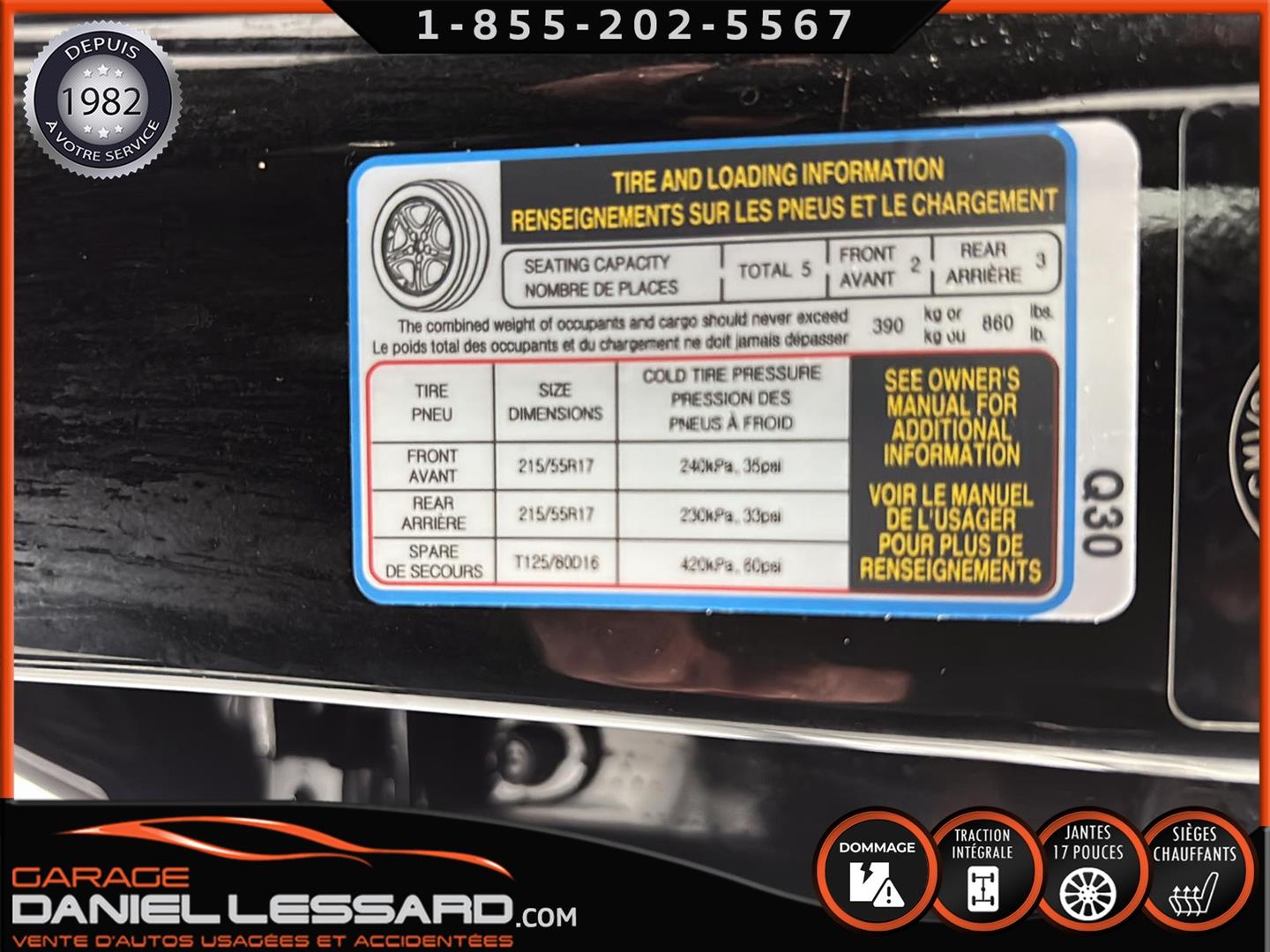 CONTACTEZ L'UN DE NOS CONSEILLERS QUALIFIÉS POUR PLUS DE DÉTAILS ! PLUSIEURS VÉHICULES DE TOUTES MARQUES DISPONIBLES AU WWW.DANIELLESSARD.COM, LA PLACE POUR MAGASINER VOTRE VÉHICULE JAMAIS ACCIDENTÉ, RÉPARÉ OU ENDOMMAGÉ. PLUS DE 100 VÉHICULES DISPONIBLES. ARRIVAGES QUOTIDIENS !!! FINANCEMENT ET GARANTIE PROLONGÉE DISPONIBLES ! NOUS REPRENONS LES ÉCHANGES. NOUS AVONS UN LARGE RÉSEAU DE CARROSSIERS EXPERTS À VOTRE DISPOSITION POUR VOTRE SERVICE DE RÉPARATION CLÉ EN MAIN. NOS VÉHICULES PRÊTS À PARTIR SONT INSPECTÉS AU COMPLET PAR NOUS ET LA SAAQ, VENDUS AVEC GARANTIE. NOUS SOMMES OUVERTS DU LUNDI AU VENDREDI 8:00 À 17:00 ET LE SAMEDI AU 9:00 À 12:00. VISITEZ NOTRE PAGE FACEBOOK ! AU PLAISIR DE VOUS RENCONTRER!.