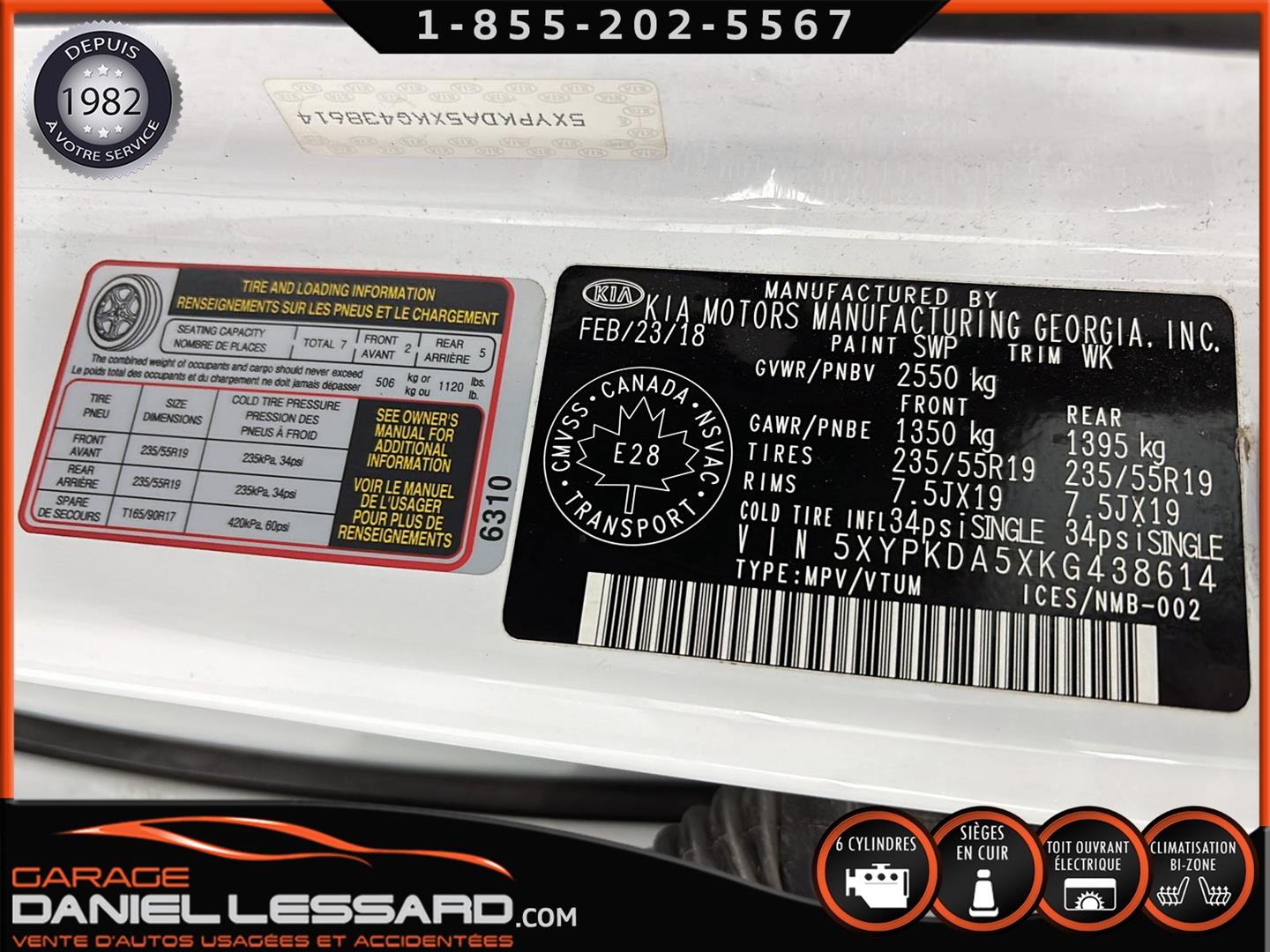 KIA SORENTO SXL AWD 2019, BAS KM, 7 PLACES, MOTEUR V-6 DE 3.3 LITRES, INTÉRIEUR EN CUIR BRUN, LES BANC AVANT SONT ÉLECTRIQUE CHAUFFANT ET CLIMATISÉ, BANC CONDUCTEUR A MÉMOIRE, SIÈEGE DE LA 2 IÈMES RANGÉ CHAUFFANT, TOIT OUVRANT PANORAMIQUE, NAVIGATION, CAMERA 360 DEGRÉS, SENSOR DE RAPPROCHEMENT, CLIMATISATION 2 ZONES, HAYON MÉCANIQUE, MAGS 19 POUCES AVEC PNEU D'ÉTÉ MICHELIN 235 / 55 / 19 AVEC 50% D'USURE, VITRE TEINTÉ, GARDE BOUE, PORTE BAGAGE, 1 SEUL CLÉ