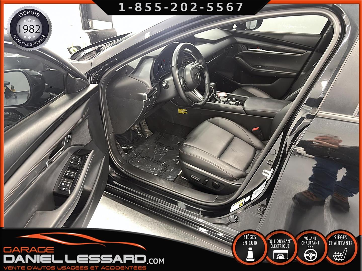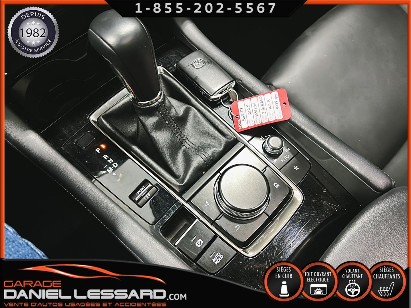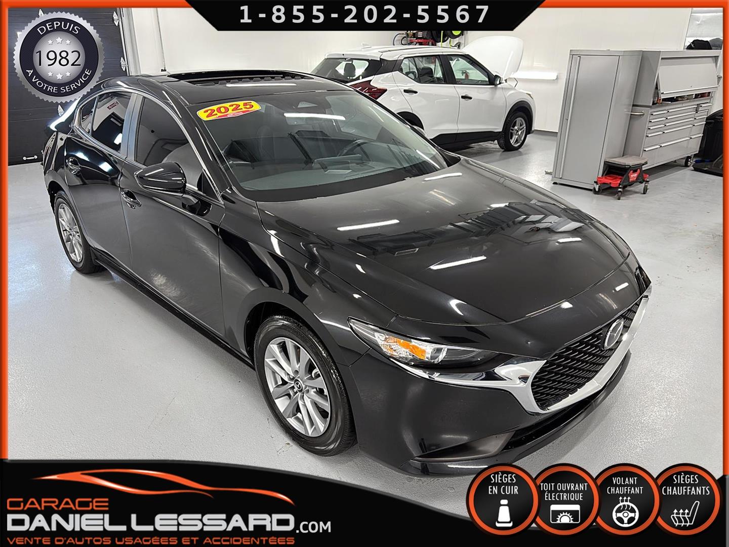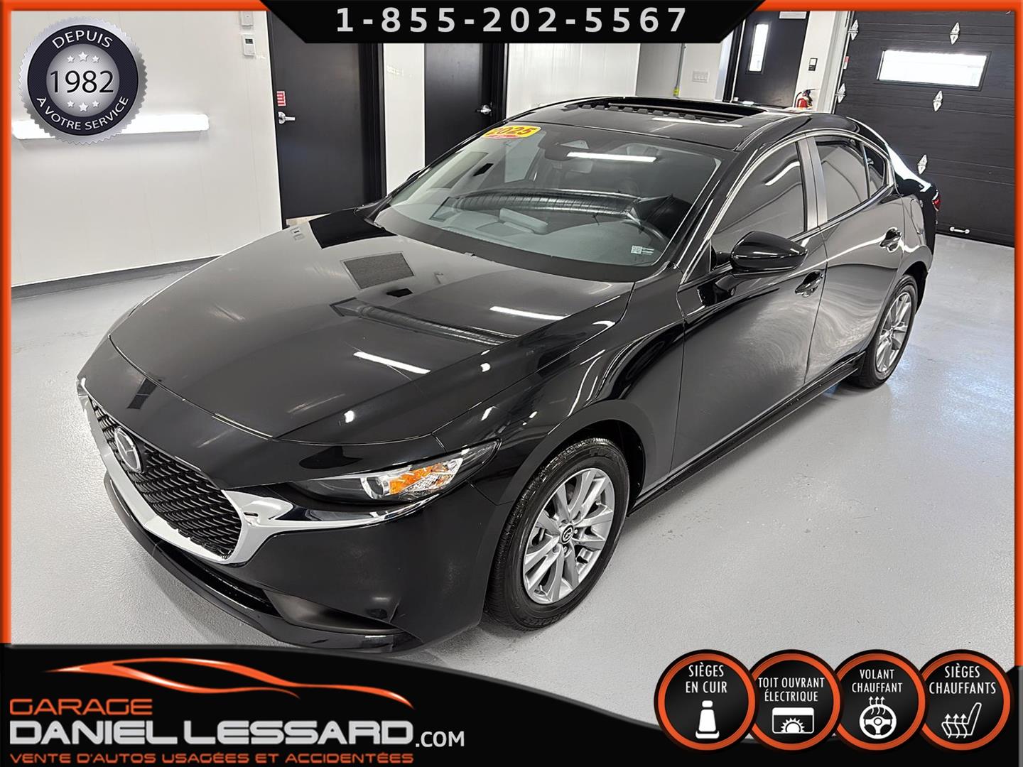 MAZDA 3 GS 2025, INTÉRIEUR EN CUIR, BANC CONDUCTEUR ÉLECTRIQUE, BANC AVANT ET VOLANT CHAUFFANT, TOIT OUVRANT, CONTROL AUDIO, TÉLÉPHONIQUE ET CRUISE CONTROL AU VOLANT, ANGLE MORT, TRACTION CONTROL, CAMERA DE RECUL, VITRE TEINTÉ, CLIMATISATION 2 ZONES, PUSH START, MAGS AVEC PNEU TOYO D'ÉTÉ 205 / 60 / 16 AVEC 20% D'USURE, PARE PIERRE SUR LE CAPOT ET LES 2 AILES AVANT, 1 CLÉ ET TAPIS DE TISSUS