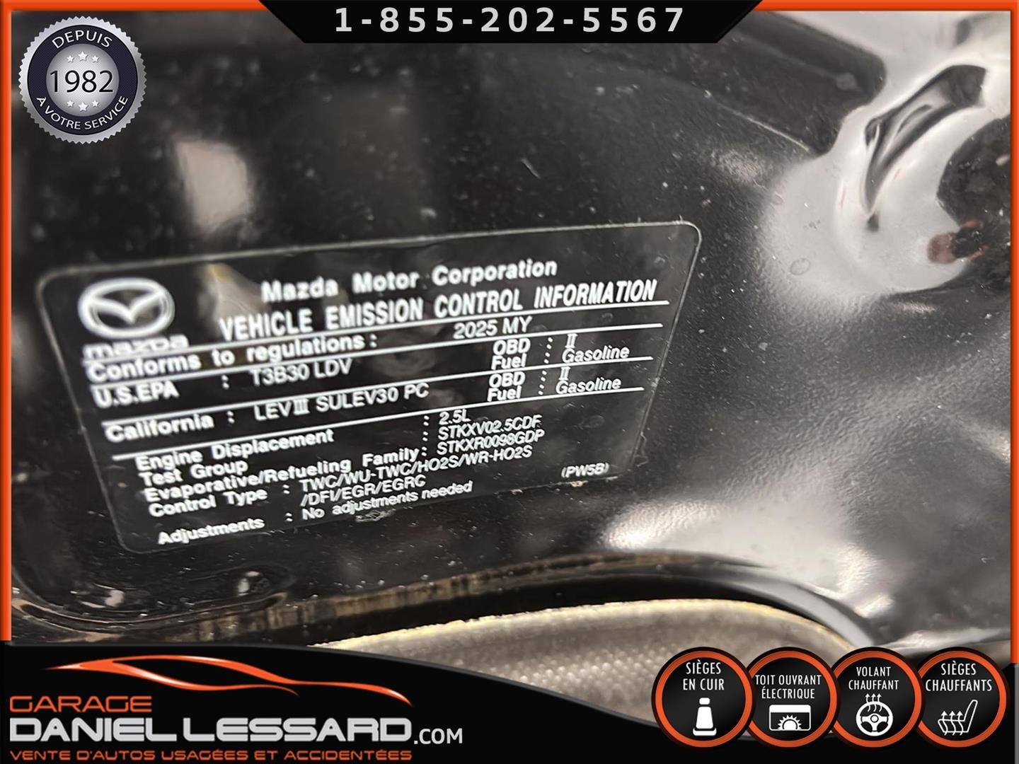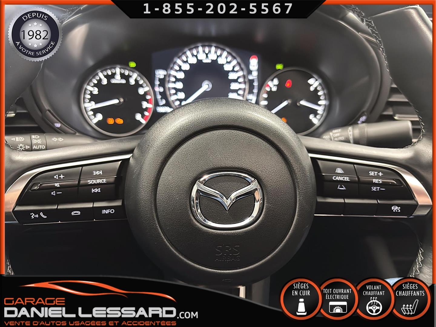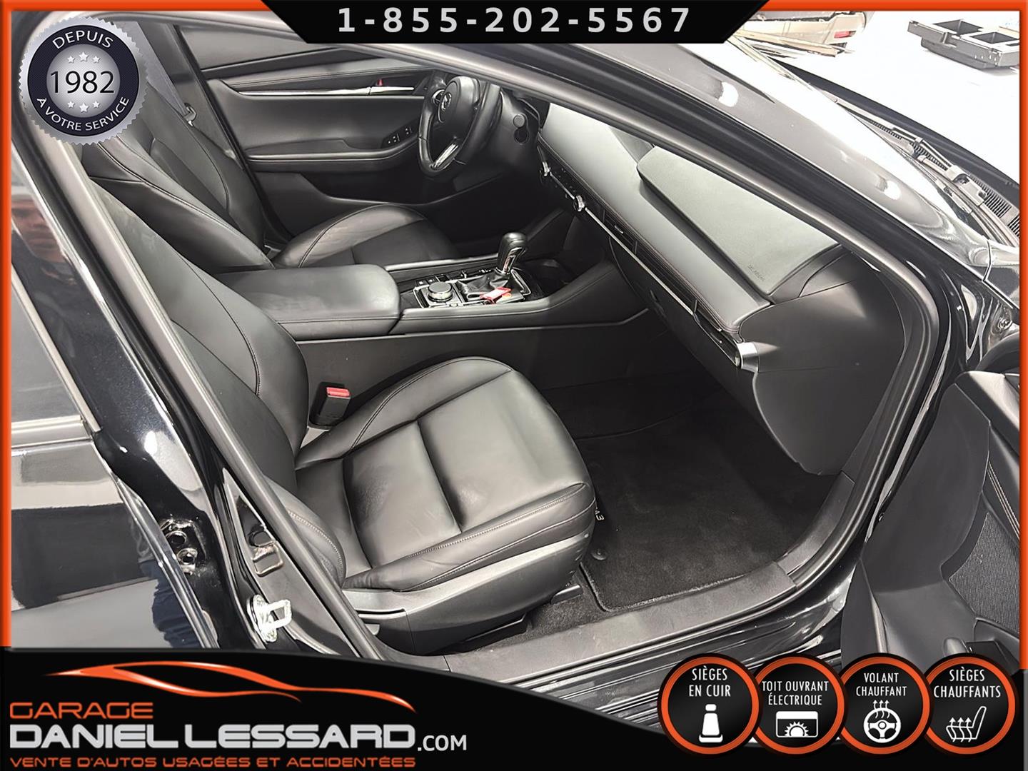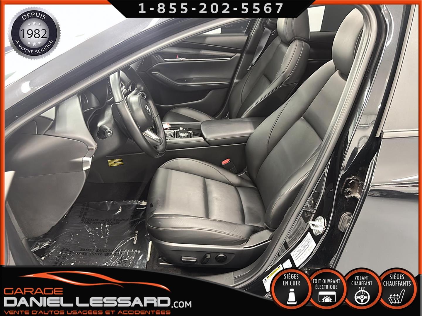 MAZDA 3 GS 2025, INTÉRIEUR EN CUIR, BANC CONDUCTEUR ÉLECTRIQUE, BANC AVANT ET VOLANT CHAUFFANT, TOIT OUVRANT, CONTROL AUDIO, TÉLÉPHONIQUE ET CRUISE CONTROL AU VOLANT, ANGLE MORT, TRACTION CONTROL, CAMERA DE RECUL, VITRE TEINTÉ, CLIMATISATION 2 ZONES, PUSH START, MAGS AVEC PNEU TOYO D'ÉTÉ 205 / 60 / 16 AVEC 20% D'USURE, PARE PIERRE SUR LE CAPOT ET LES 2 AILES AVANT, 1 CLÉ ET TAPIS DE TISSUS
