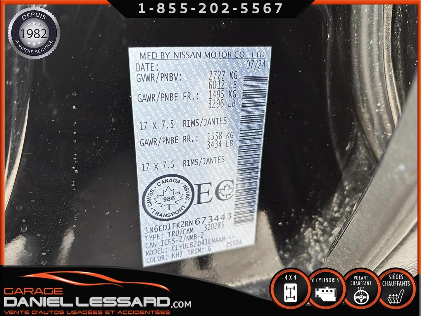 NISSAN FRONTIER SV HARDBODY 2024, CREW CAB 4 X 4, V-6 DE 3.8 LITRES, BOITE DE 6 PIEDS, CONTROL AUDIO, TÉLÉPHONIQUE ET CRUISE CONTROL AU VOLANT, BANC AVANT ET VOLANT CHAUFFANT, SIRIUS, CAMERA DE RECUL, SENSOR DE RAPPROCHEMENT, ENSEMBLE REMORQUAGE, MAGS JOBER HD AVEC PNEU HOMOLOGUÉ 265 / 70 / 17 AVEC 5% D'USURE, BARRE DE PROTECTION DES MARCHEPIEDS, ROLL BAR * FRONTIER * DANS LA BOITE, DÉFLECTEUR LATÉRAL, MODE 2WD, 4HI ET 4 LO, CLIMATISATION 2 ZONES, PUSH START, LUMIÈRE A BRUME, PRISE DE COURANT DANS LA BOITE, 2 CLÉS AVEC DÉMARREUR A DISTANCE, LIVRE DE COMPAGNIE ET LES TAPIS DE CAOUTCHOUC