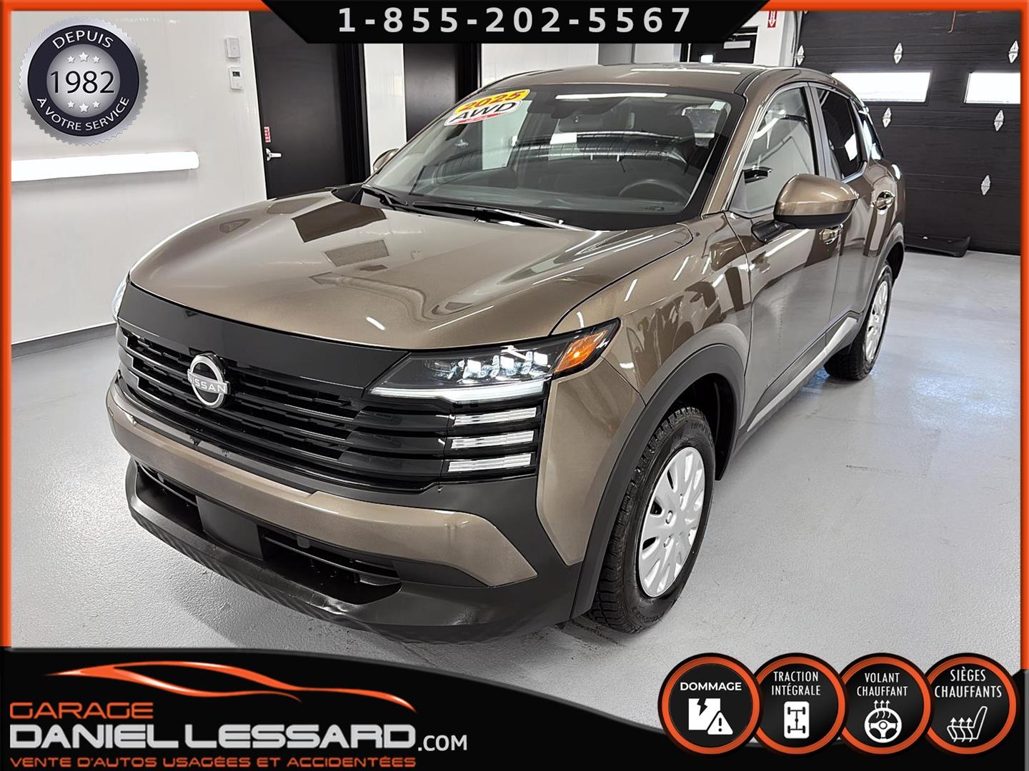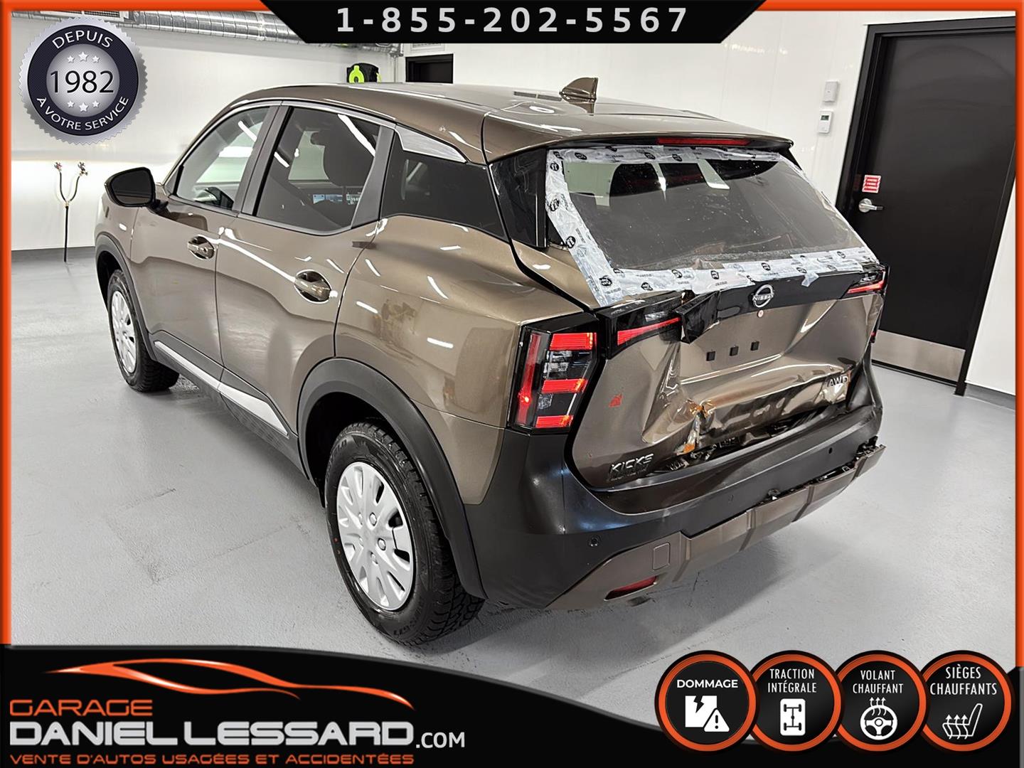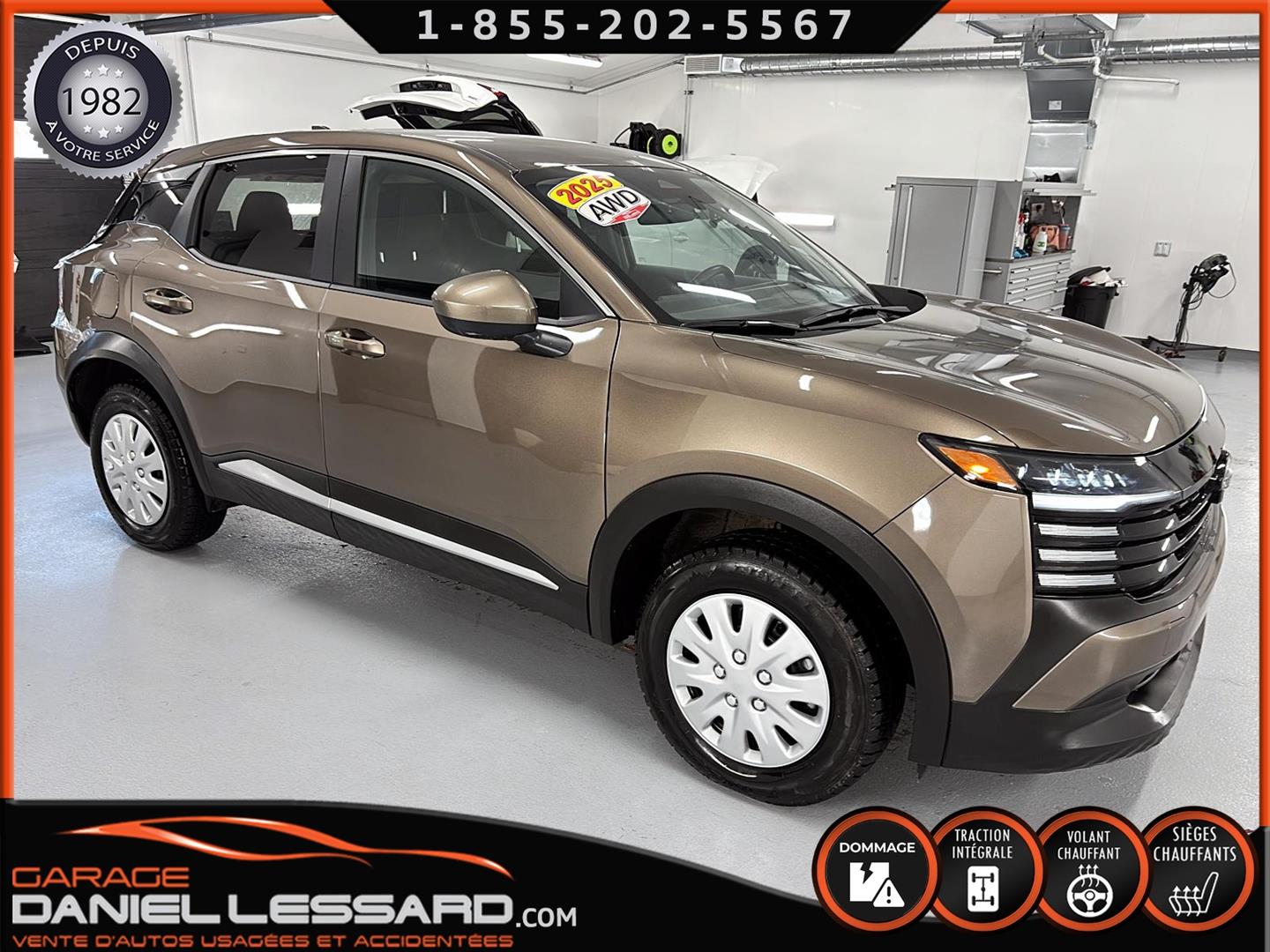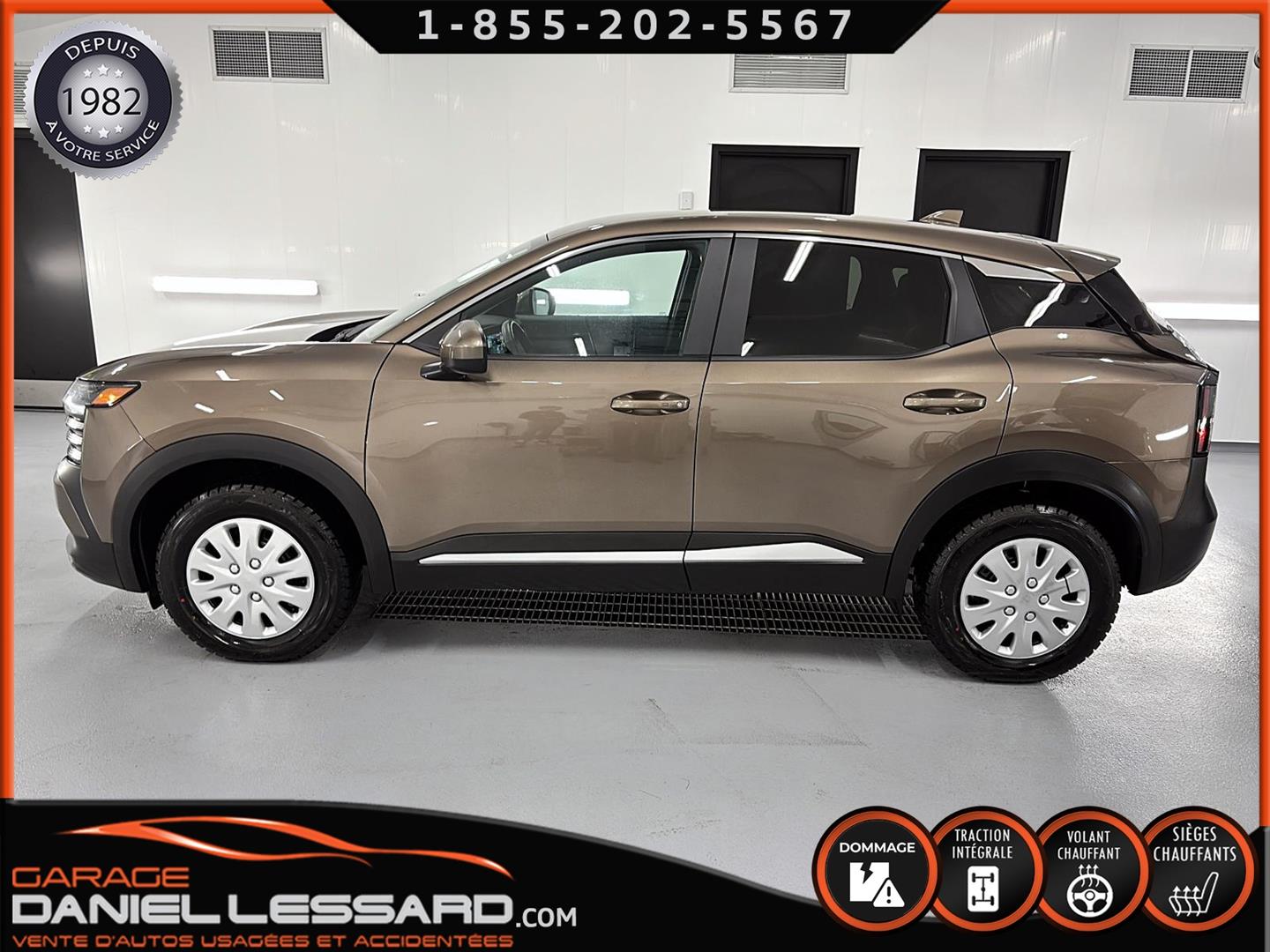 NISSAN KICKS SV AWD 2025, COULEUR BRONZE CANYON MÉTALLISÉ, MOTEUR 2.0 LITRES À INJECTION DIRECTE, TRANSMISSION CVT XTRONIC, TRACTION INTÉGRALE INTELLIGENTE, CHARGEUR DE TÉLÉPHONE SANS FIL, VOLANT CHAUFFANT, FREIN DE STATIONNEMENT ÉLECTRONIQUE, RÉGULATEUR DE VITESSE INTELLIGENT, AVERTISSEUR D'ANGLE MORT, AVERTISSEUR DE SORTIE DE VOIE, ASSISTANCE AUX FEUX DE ROUTE, JANTES EN ACIER 16 POUCES AVEC ENJOLIVEURS, PNEUS REVELO RWS-677 215/65/16, CLIMATISATION, CLÉ INTELLIGENTE NISSAN AVEC DÉMARRAGE PAR BOUTON-POUSSOIR, SYSTÈME DE DÉMARRAGE À DISTANCE AVEC CLIMATISATION INTELLIGENTE, SIÈGES AVANT CHAUFFANTS, ÉCRAN NISSANCONNECT 12,3 POUCES AVEC COMMANDES TACTILES MULTIPOINTS, ANDROID AUTO SANS FIL, APPLE CARPLAY SANS FIL, LES DEUX CLÉS SONT FOURNIES.