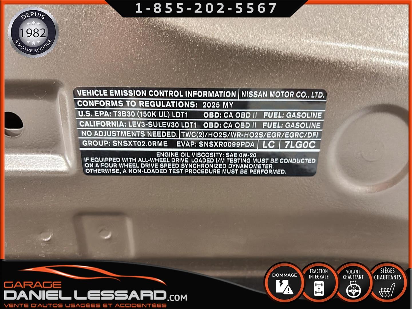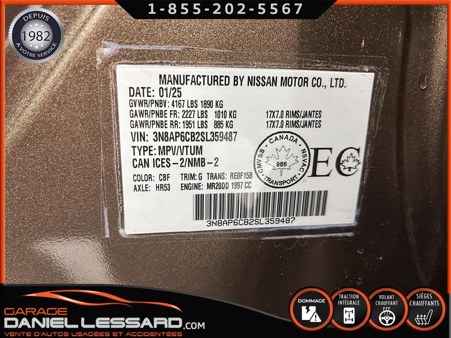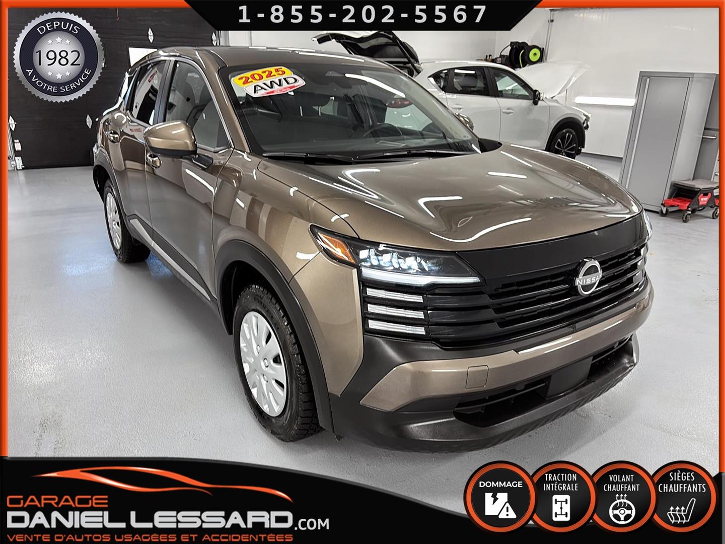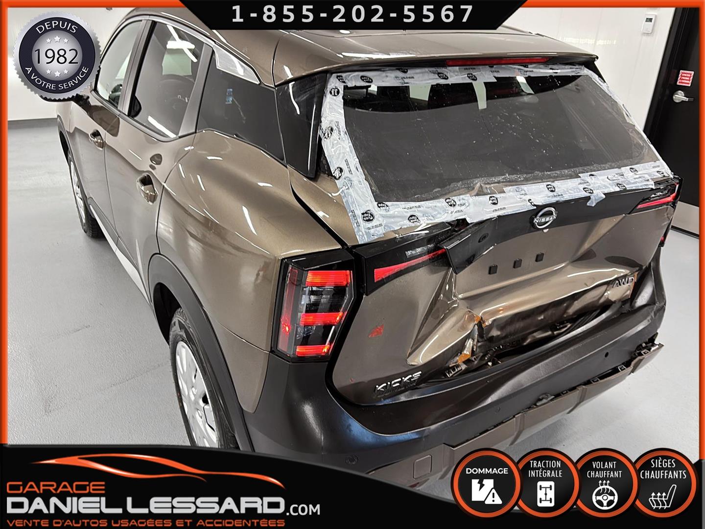 NISSAN KICKS SV AWD 2025, COULEUR BRONZE CANYON MÉTALLISÉ, MOTEUR 2.0 LITRES À INJECTION DIRECTE, TRANSMISSION CVT XTRONIC, TRACTION INTÉGRALE INTELLIGENTE, CHARGEUR DE TÉLÉPHONE SANS FIL, VOLANT CHAUFFANT, FREIN DE STATIONNEMENT ÉLECTRONIQUE, RÉGULATEUR DE VITESSE INTELLIGENT, AVERTISSEUR D'ANGLE MORT, AVERTISSEUR DE SORTIE DE VOIE, ASSISTANCE AUX FEUX DE ROUTE, JANTES EN ACIER 16 POUCES AVEC ENJOLIVEURS, PNEUS REVELO RWS-677 215/65/16, CLIMATISATION, CLÉ INTELLIGENTE NISSAN AVEC DÉMARRAGE PAR BOUTON-POUSSOIR, SYSTÈME DE DÉMARRAGE À DISTANCE AVEC CLIMATISATION INTELLIGENTE, SIÈGES AVANT CHAUFFANTS, ÉCRAN NISSANCONNECT 12,3 POUCES AVEC COMMANDES TACTILES MULTIPOINTS, ANDROID AUTO SANS FIL, APPLE CARPLAY SANS FIL, LES DEUX CLÉS SONT FOURNIES.