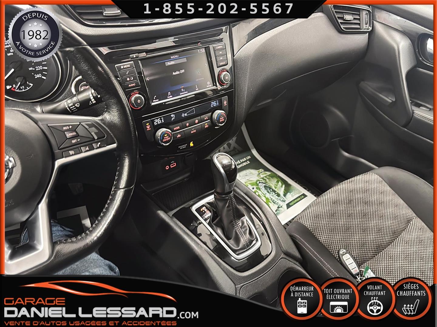 NISSAN QASHQAI SV 2020, MOTEUR 4 CYLINDRES DE 2 L, BOÎTE DE VITESSES XTRONIC, TRACTION AVANT, JANTES EN ALLIAGE D’ALUMINIUM DE 17 PO SUR PNEUS ANNAITE AN626 215/60/17, RÉGULATEUR AUTOMATIQUE DE L’AIR AMBIANT BIZONE, DÉMARRAGE À DISTANCE, SIÈGES AVANT À CHAUFFAGE RAPIDE QUICK COMFORT, VOLANT CHAUFFANT GAINÉ DE CUIR, TOIT OUVRANT VITRÉ ÉLECTRIQUE COULISSANT, SYSTÈME DE RANGEMENT DIVIDE-N-HIDE, ANDROID AUTO, APPLE CARPLAY, SYSTÈME D’AVERTISSEMENT SUR L’ANGLE MORT, SYSTÈME D’ALERTE DE TRAFIC TRANSVERSAL, SYSTÈMES DE DÉTECTION DE SORTIE DE VOIE ET DE PRÉVENTION DE SORTIE DE VOIE INTELLIGENT, NOUS AVONS LES DEUX CLÉS ET LE MANUEL DU PROPRIO, IL A ÉTÉ ENTIÈREMENT INSPECTÉ PAR NOUS À SONT ARRIVER SUR PLACE, CE VUS VIENT AVEC UNE GARANTIE DE 1 MOIS/ 1700 KM DE NOTRE PART. VÉHICULE AVEC AUCUNE MENTION SUR ENREGISTREMENTS (VOIR LES 4 DERNIER PHOTOS LORS DE SON ACHAT) 2 MENTION SUR CARFAX UN LE 27 ET 29 DÉCEMBRE 2020 (COLLISION ET L'AUTRE VANDALISME), CHANGEMENT D'HUILE A ÉTÉ EFFECTUÉ ET TOUS LES ENTRETIENS SONT À JOUR, EN EXCELLENTE CONDITION, POSSIBILITÉ DE FINANCEMENT.