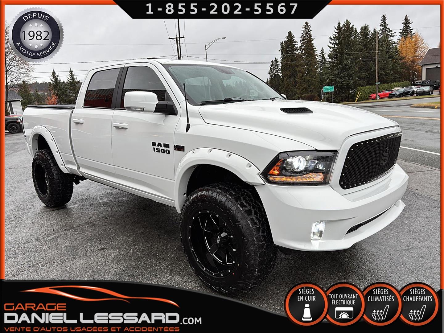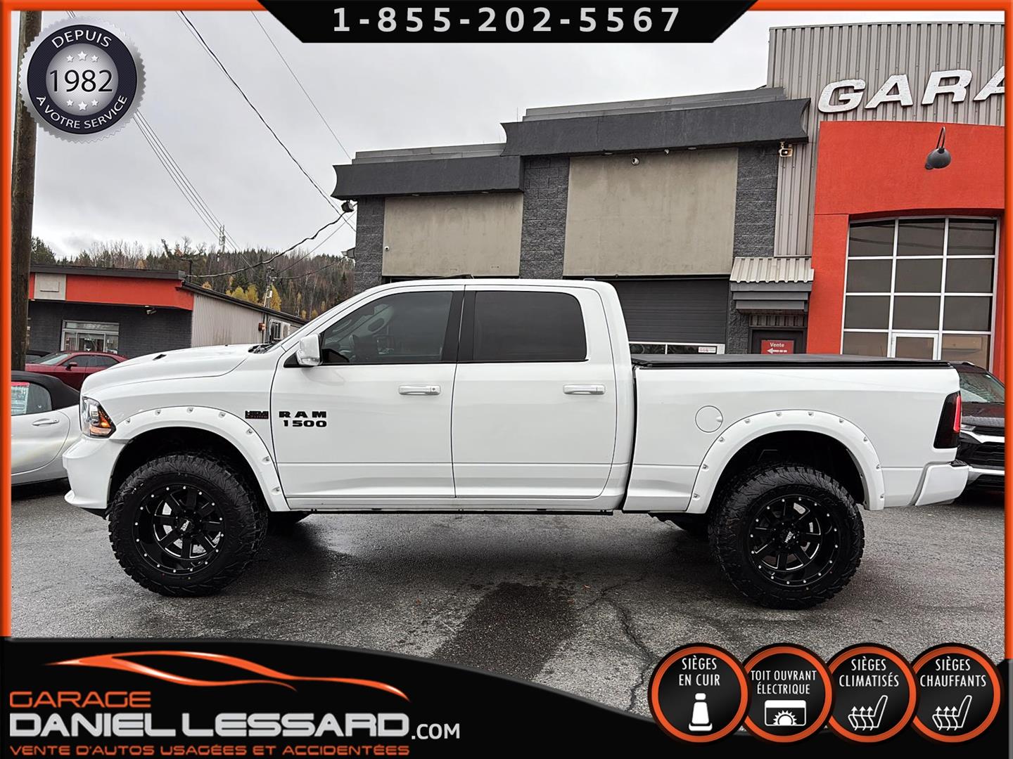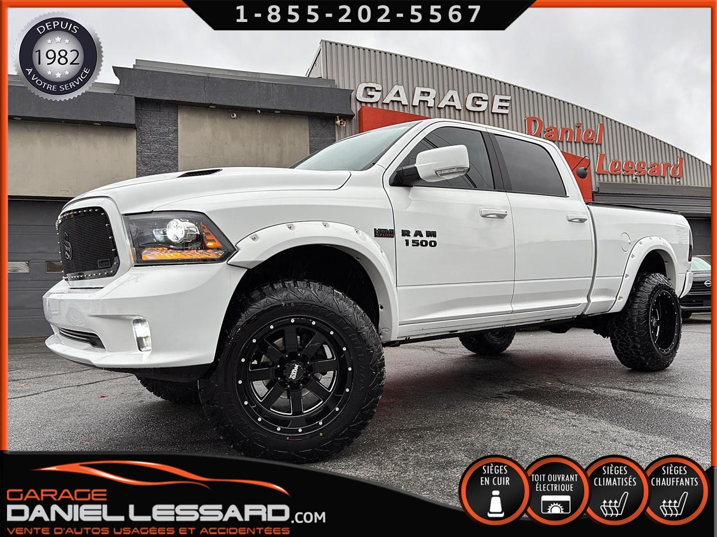 DODGE RAM 1500 SPORT 4X4 2015 DE COULEUR BLANC AVEC 132270 KM AU COMPTEUR, CREWCAB AVEC LES 4 GRANDES PORTES ET LA BOITE DE 6.4 PIEDS, TOILE SOUPLE INCLUS ET FOND DE BOITE PULVÉRISÉ, 4X4 AVEC MODE 4X4 LOCK ET AUTO, MOTEUR HEMI 5.7 LITRES V-8, VERSION SPORT TRES BIEN ÉQUIPÉ AVEC L'INTÉRIEUR EN CUIR NOIR, LES BANCS AVANT SONT CHAUFFANT ET VENTILÉ À DOUBLE INTENSITÉ, VOLANT ET MIROIRS CHAUFFANT ÉGALEMENT, GRAND TOIT OUVRANT ÉLECTRIQUE, AFFICHAGE SUR GRANDE ÉCRAN DE BORD TACTILE AVEC NAVIGATION GPS D'ORIGINE, CAMÉRA DE RECUL, SYSTÈME DE SON *ALPINE* HAUT DE GAMME, GROUPE REMORQUAGE COMPLET AVEC MODE TOW/HAUL, FREINS ÉLECTRIQUE D'ORIGINE, HITCH ET FILAGE 4/7 BRINS, ENSEMBLE DE BALLON A AIR STANDENS AVEC COMPRESSEUR INTÉGRÉ DANS LE COFFRE DE PLANCHER ET MODULE DASN LA CONSOLE CENTRALE, COMMANDE MONTÉ AU VOLANT AVEC CRUSE CONTRÔLE, BLUETOOTH, COMMANDE VOCAL, CONTRÔLE AUDIO ET CONTRÔLE DES VITESSES GEAR +/-, ANTI PATINAGE, AIR CLIMATISÉ DOUBLE ZONES, FOG LIGHTS, HOOD SPOR, LIFT KIT DE 2 POUCES ET BODY LIFT, TOUR D'AILES BUSHWACKER, EXHAUST CUSTOM, MARCHE PIED ELECTRIQUE AMP, RADIO AM / FM / XM, MULTIPLE PRISES 12 V / USB / UNE AUXILIAIRE ET UNE 115 V, CHAUSSÉ SUR PNEUS NEUF TERRA RAIDER 37 X 12.50-20LT MONTÉ SUR JANTES CUSTOM 20 POUCES MOTOMETAL, CAMION TRÈS COMPLET ! NOUS AVONS EN MAIN UNE SEUL CLEF, DÉMARREUR A DISTANCE INTÉGRÉ D'ORIGINE, TAPIS 4 SAISONS D'ORIGINE POUR L'AVANT ET L'ARRIÈRE INCLUS.