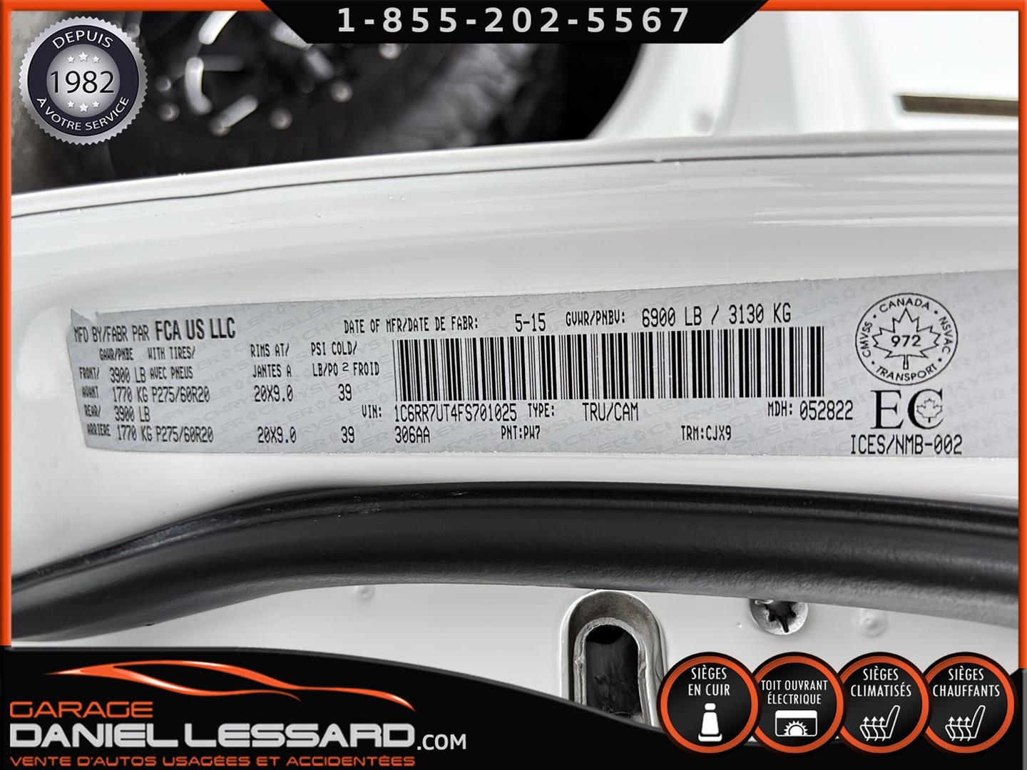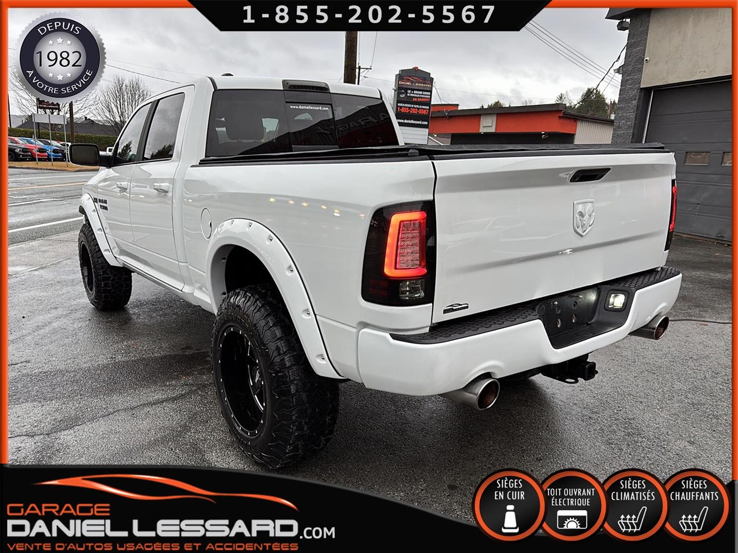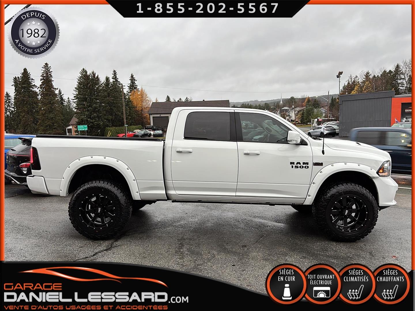 DODGE RAM 1500 SPORT 4X4 2015 DE COULEUR BLANC AVEC 132270 KM AU COMPTEUR, CREWCAB AVEC LES 4 GRANDES PORTES ET LA BOITE DE 6.4 PIEDS, TOILE SOUPLE INCLUS ET FOND DE BOITE PULVÉRISÉ, 4X4 AVEC MODE 4X4 LOCK ET AUTO, MOTEUR HEMI 5.7 LITRES V-8, VERSION SPORT TRES BIEN ÉQUIPÉ AVEC L'INTÉRIEUR EN CUIR NOIR, LES BANCS AVANT SONT CHAUFFANT ET VENTILÉ À DOUBLE INTENSITÉ, VOLANT ET MIROIRS CHAUFFANT ÉGALEMENT, GRAND TOIT OUVRANT ÉLECTRIQUE, AFFICHAGE SUR GRANDE ÉCRAN DE BORD TACTILE AVEC NAVIGATION GPS D'ORIGINE, CAMÉRA DE RECUL, SYSTÈME DE SON *ALPINE* HAUT DE GAMME, GROUPE REMORQUAGE COMPLET AVEC MODE TOW/HAUL, FREINS ÉLECTRIQUE D'ORIGINE, HITCH ET FILAGE 4/7 BRINS, ENSEMBLE DE BALLON A AIR STANDENS AVEC COMPRESSEUR INTÉGRÉ DANS LE COFFRE DE PLANCHER ET MODULE DASN LA CONSOLE CENTRALE, COMMANDE MONTÉ AU VOLANT AVEC CRUSE CONTRÔLE, BLUETOOTH, COMMANDE VOCAL, CONTRÔLE AUDIO ET CONTRÔLE DES VITESSES GEAR +/-, ANTI PATINAGE, AIR CLIMATISÉ DOUBLE ZONES, FOG LIGHTS, HOOD SPOR, LIFT KIT DE 2 POUCES ET BODY LIFT, TOUR D'AILES BUSHWACKER, EXHAUST CUSTOM, MARCHE PIED ELECTRIQUE AMP, RADIO AM / FM / XM, MULTIPLE PRISES 12 V / USB / UNE AUXILIAIRE ET UNE 115 V, CHAUSSÉ SUR PNEUS NEUF TERRA RAIDER 37 X 12.50-20LT MONTÉ SUR JANTES CUSTOM 20 POUCES MOTOMETAL, CAMION TRÈS COMPLET ! NOUS AVONS EN MAIN UNE SEUL CLEF, DÉMARREUR A DISTANCE INTÉGRÉ D'ORIGINE, TAPIS 4 SAISONS D'ORIGINE POUR L'AVANT ET L'ARRIÈRE INCLUS.