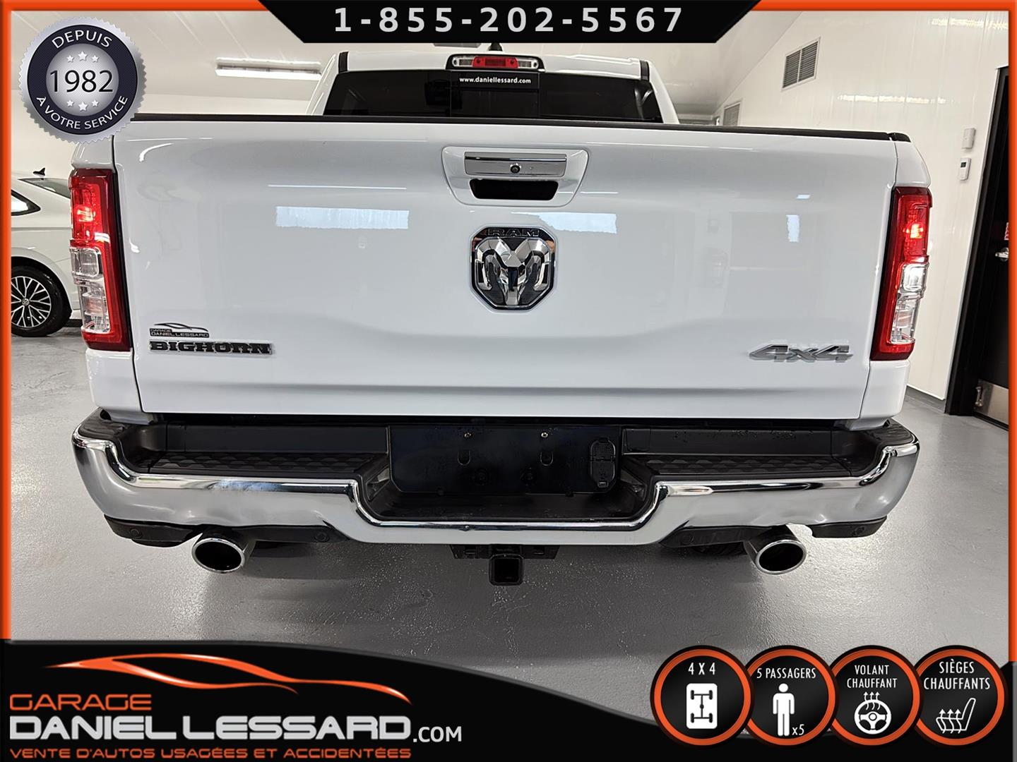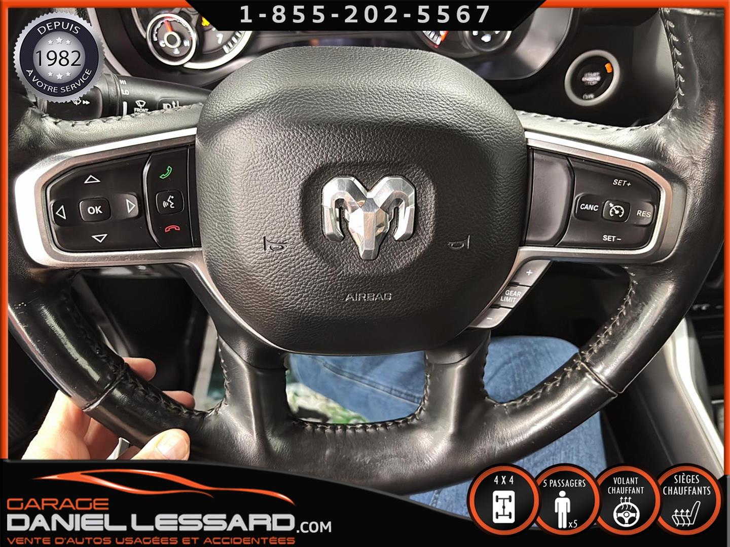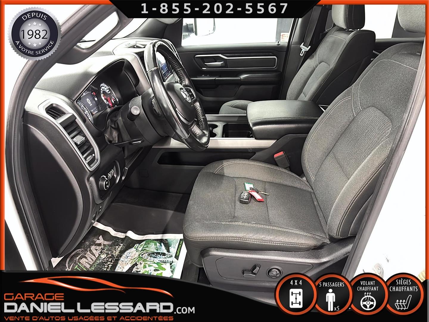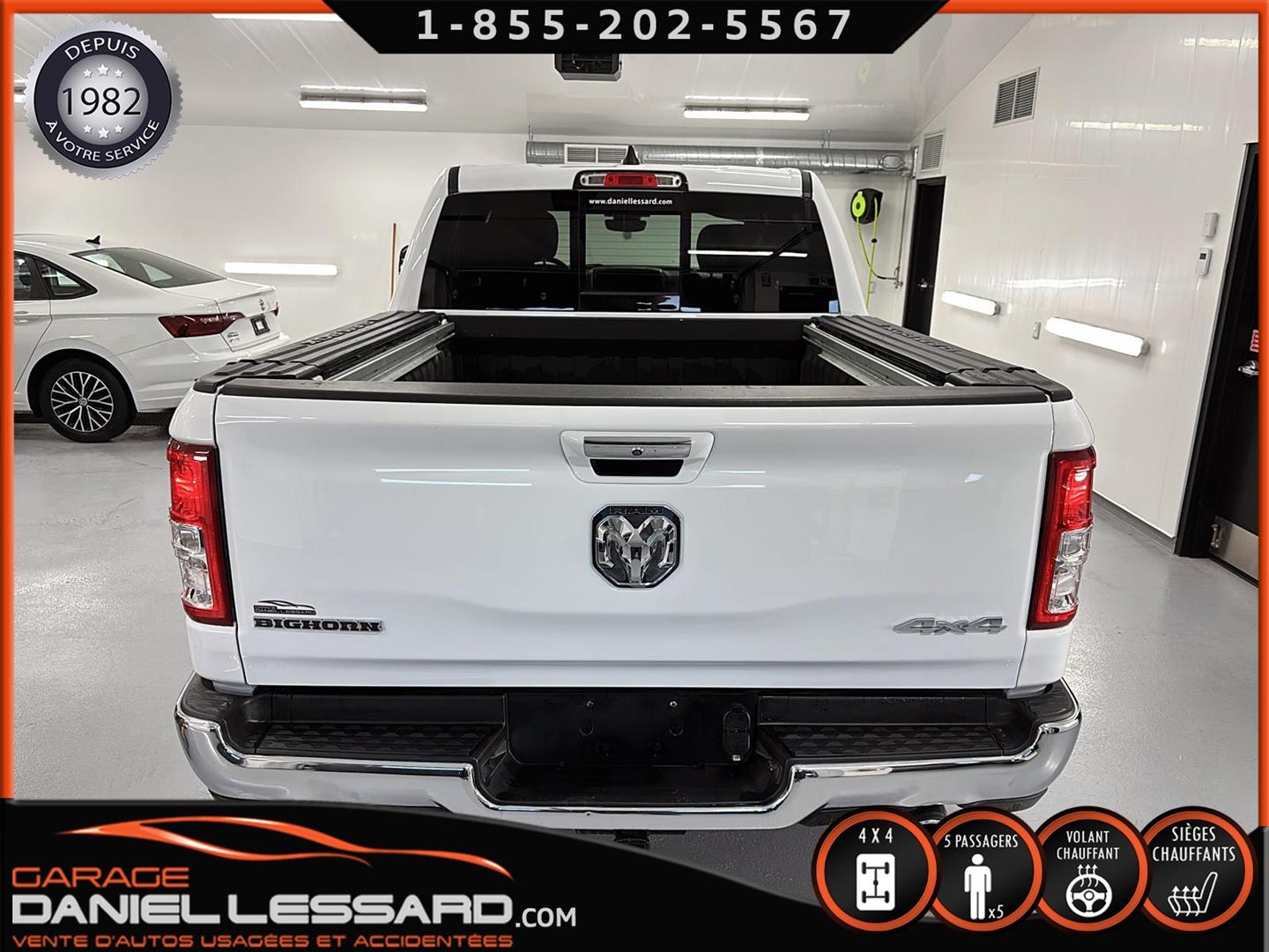 RAM 1500 BIG HORN LEVEL 2, CREW CAB, BOITE 5''7", MOTEUR HEMI DE 5.7 LITRES, TRANSMISSION 8 VITESSES, GEAR RATIO 3.92, OFF-ROAD GROUP, 5 PLACES, BANC CONDUCTEUR ÉLECTRIQUE, LUMIÈRE A BRUME, TRAILER TOW GROUP, RAMBOX, MAG 18" SUR PNEUS MICHELIN PRIMACY 265/65/18 AVEC 50% D'USURE, VOLANT CHAUFFANT, SIÈGES CHAUFFANT, PARK-SENSE, CLIMATISATION BIZONE, APPLE CARPLAY ET ANDROID AUTO, ÉCRAN TACTILE DE 8.4", CAMERA ET SENSOR DE PROXIMITÉ, NOUS AVONS SEULEMENT 1 CLÉ AVEC DÉMARREUR A DISTANCE, MARCHEPIEDS EXTERIEUR, TAPIS 4 SAISONS FLAMBANT NEUF D'ORIGINE INCLUS !