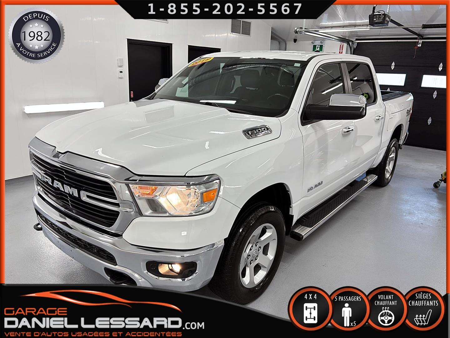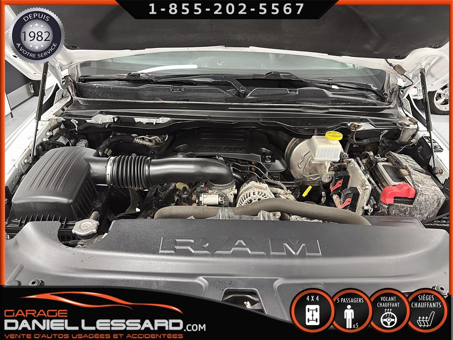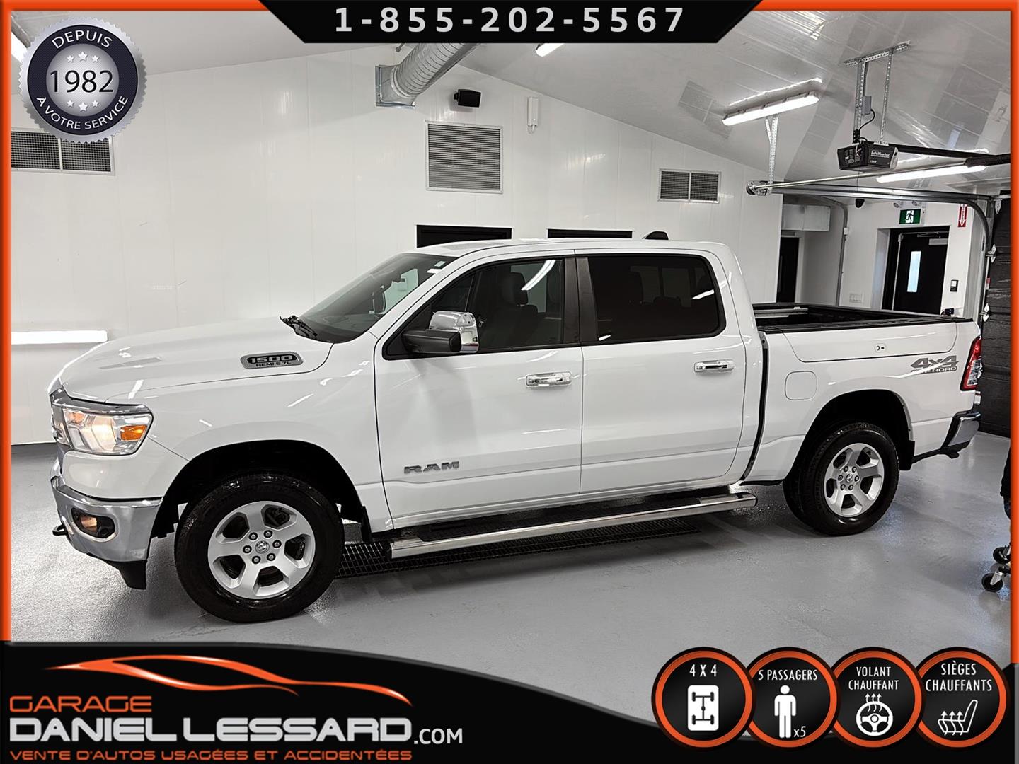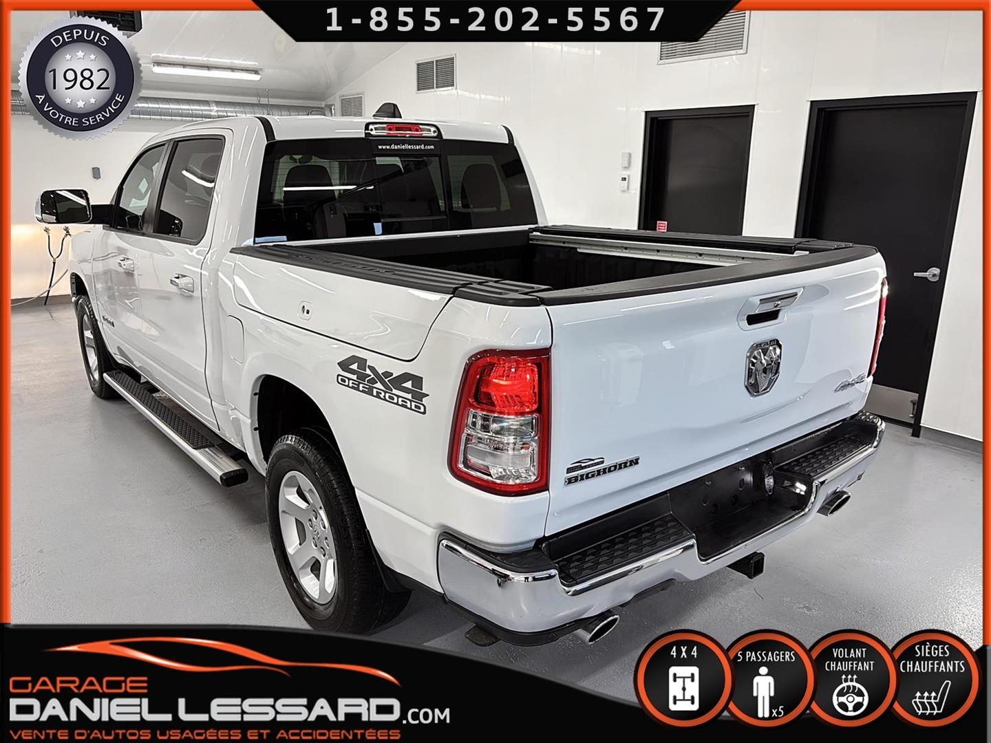 RAM 1500 BIG HORN LEVEL 2, CREW CAB, BOITE 5''7", MOTEUR HEMI DE 5.7 LITRES, TRANSMISSION 8 VITESSES, GEAR RATIO 3.92, OFF-ROAD GROUP, 5 PLACES, BANC CONDUCTEUR ÉLECTRIQUE, LUMIÈRE A BRUME, TRAILER TOW GROUP, RAMBOX, MAG 18" SUR PNEUS MICHELIN PRIMACY 265/65/18 AVEC 50% D'USURE, VOLANT CHAUFFANT, SIÈGES CHAUFFANT, PARK-SENSE, CLIMATISATION BIZONE, APPLE CARPLAY ET ANDROID AUTO, ÉCRAN TACTILE DE 8.4", CAMERA ET SENSOR DE PROXIMITÉ, NOUS AVONS SEULEMENT 1 CLÉ AVEC DÉMARREUR A DISTANCE, MARCHEPIEDS EXTERIEUR, TAPIS 4 SAISONS FLAMBANT NEUF D'ORIGINE INCLUS !