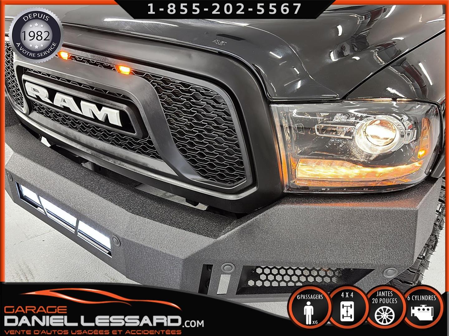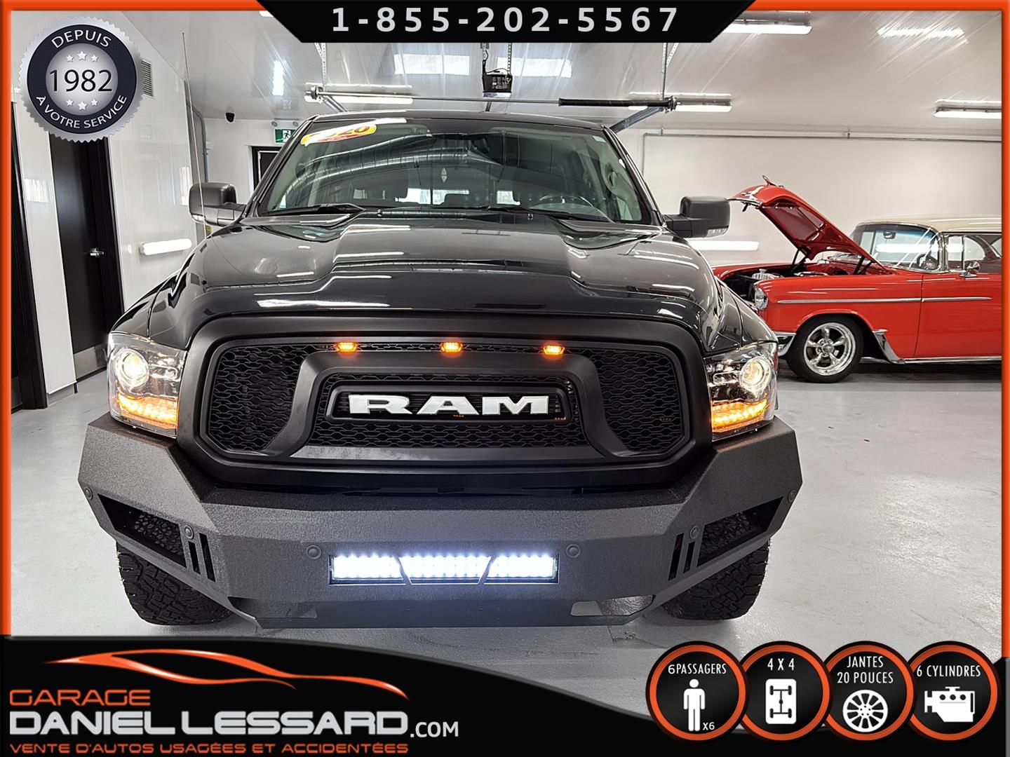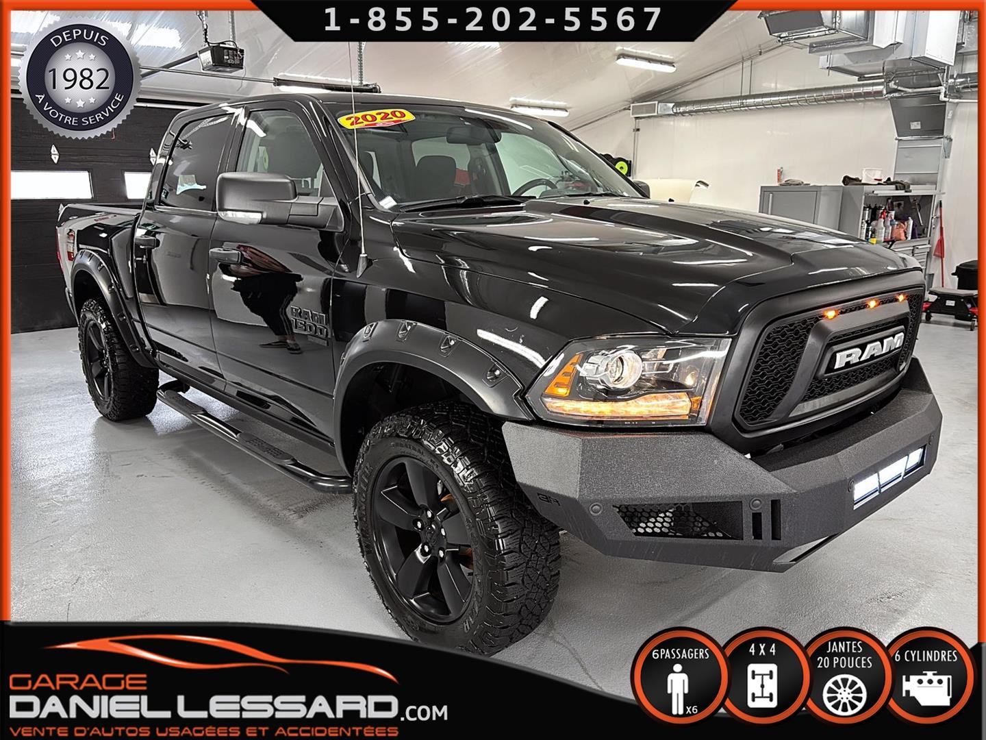 2020 RAM 1500 CLASSIC WARLOCK CREW CAB AVEC UNE BOITE DE 5.7, MOTEUR PENTASTAR DE 3.6 LITRES, TRANSMISSION AUTOMATIQUE 8 VITESSES, PROTECTION DE ROCKER PANNEL DE MARQUE BUSHWACKER, FENDER FLAIRE, DÉFLECTEUR DE CAPOT, MARCHEPIED ARIES, PARE CHOC AVANT BA AVEC BARRE DE LED INTÉGRÉE, MUNIE DE L' ÉCRAN TACTITLE8.4" AVEC UCONNECT, APPLE CARPLAY, ANDROID AUTO, CLIMATISATION 2 ZONES, ATTACHE REMORQUE, CAMÉRA DE RECUL, CRUISE CONTROL, NOUS AVONS SEULEMENT 1 CLÉ, MONTÉ SUR MAG 20 POUCES AVEC PNEUS HOMOLOGUÉE GOODYEAR WRANGLER DURATRAC EN 275-60-20 VÉHICULE PRÊT À PARTIR, POSSIBILITÉ DE FINANCEMENT PERSONNEL!