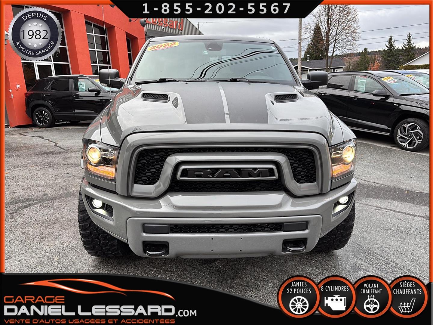 MAGNIFIQUE RAM 1500 CLASSIC 2022 ** WARLOCK ** DE COULEUR GRIS CÉRAMIQUE 79204 KM AU COMPTEUR WOW 4X4, TRANSMISSION AUTOMATIQUE A 8 RAPPORTS, AVEC DIFFÉRENTIEL A BLOCAGES ET RATIO DE 3,92, MOTEUR HEMI 5.7 L V8, EDITION CREWCAB AVEC LES 4 GRANDES PORTES ET LA BOITE DE 5.7 PIEDS AVEC FOND EN ENDUIT PULVÉRISÉ, CAMION BUCKET SEAT AVEC LA GROSSE CONSOLE AU CENTRE, SIÈGE ÉLECTRIQUE CONDUCTEUR, BANCS AVANT CHAUFFANT ET VOLANT CHAUFFANT, AFFICHAGE SUR GRANDE ECRAN DE BORD TACTILE AVEC CAMERA DE RECUL ET SENSORS DE RAPPROCHEMENT ARRIÈRE, RADIO COMPATIBLE POUR APPLECARPLAY ET ANDROIDAUTO, SYSTEM DE NAVIGATION, SYSTEM DE SON AVEC 9 HAUTPARLEUR ALPINE ET SUBWOOFER, VITRES ET MIROIRS ÉLECTRIQUE, MIROIRS CHAUFFANT ET POWER FOLD, INTÉRIEUR EN TISSUS CHARBON, COMMANDE MONTÉ AU VOLANT AVEC BLUETOOTH, CRUSE CONTROLE, COMMANDE VOCAL ET CONTRÔLE AUDIO, AIR CLIMATISÉ DOUBLE ZONE, PRISE USB / 12 V / AUX, RADIO AM FM XM, HITCH AVEC ENTRÉ POUR FILAGE 4 ET 7 BRINS ET BOITIER DE FREIN DE REMORQUE INTEGRE, BEAU PETIT LIFTKIT DE PLUS OU MOINS 2 POUCES, HOOD RAM AIR, TOUR D'AILES STYLE POCKET STYLE, AILERON DE TOIT, MARCHE-PIEDS ARIES, PARE CHOC AVANT FULL PAINT, NOUS AVONS 1 CLEFS EN MAIN AVEC DÉMARREUR A DISTANCE INTÉGRÉ D'ORIGINE, CHAUSSÉ SUR PNEUS SURETRAC WIDE CLIMBER M/T HOMOLOGUÉ 4 SAISONS NEUF 35 X 12.50 R 22LT MONTÉ SUR JANTES 22 POUCES XF OFF ROAD CUSTOM SUPERBE LOOK. A VOIR