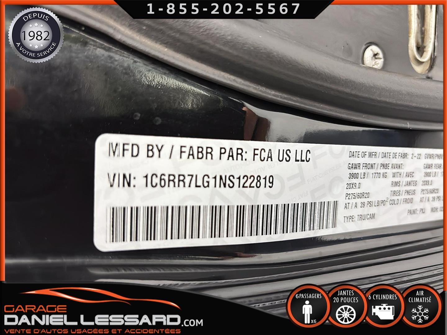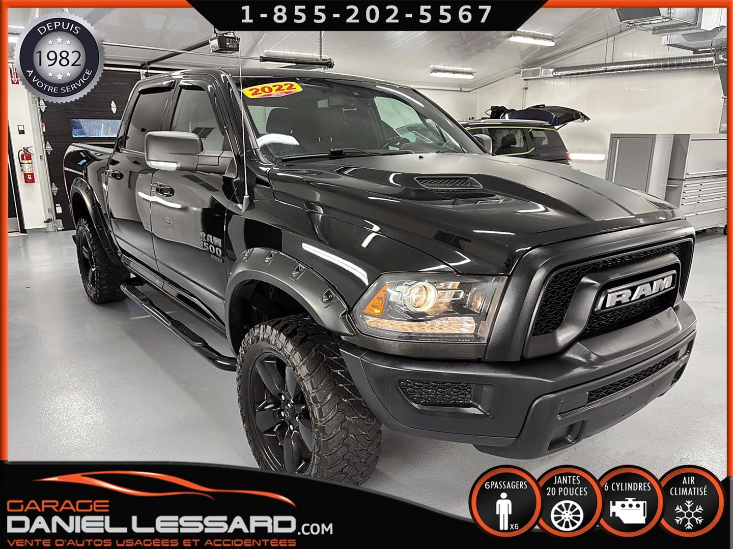 RAM 1500 CLASSIC WARLOCK CREWCAB AVEC UNE BOITE DE 5'7", MOTEUR PENTASTAR 3,6 L, TRANSMISSION AUTOMATIQUE À 8 VITESSES, RAPPORT DE PONT ARRIÈRE 3,21, CAPACITÉ DE REMORQUAGE DE 6 410 LBS, 6 PLACES, CLIMATISATION AUTOMATIQUE BIZONE, UCONNECT 5W AVEC ÉCRAN DE 8,4 POUCES, APPLE CARPLAY, GOOGLE ANDROID AUTO, SYSTÈME DE DÉMARRAGE À DISTANCE, LUNETTE ARRIÈRE COULISSANTE ÉLECTRIQUE, CAMÉRA DE RECUL PARKVIEW, SYSTÈME D'AIDE AU STATIONNEMENT ARRIÈRE PARKSENSE, CAPOT MOPAR SPORT PERFORMANCE, MARCHE-PIEDS, MAG 20" SUR PNEUS ATTURO BLADE M/T 33X12.50R20LT, ENDUIT DE BOITE LINE X, FLAIRE D'AILE, NOUS AVONS SEULEMENT 1 CLÉ.