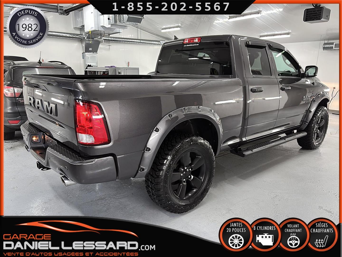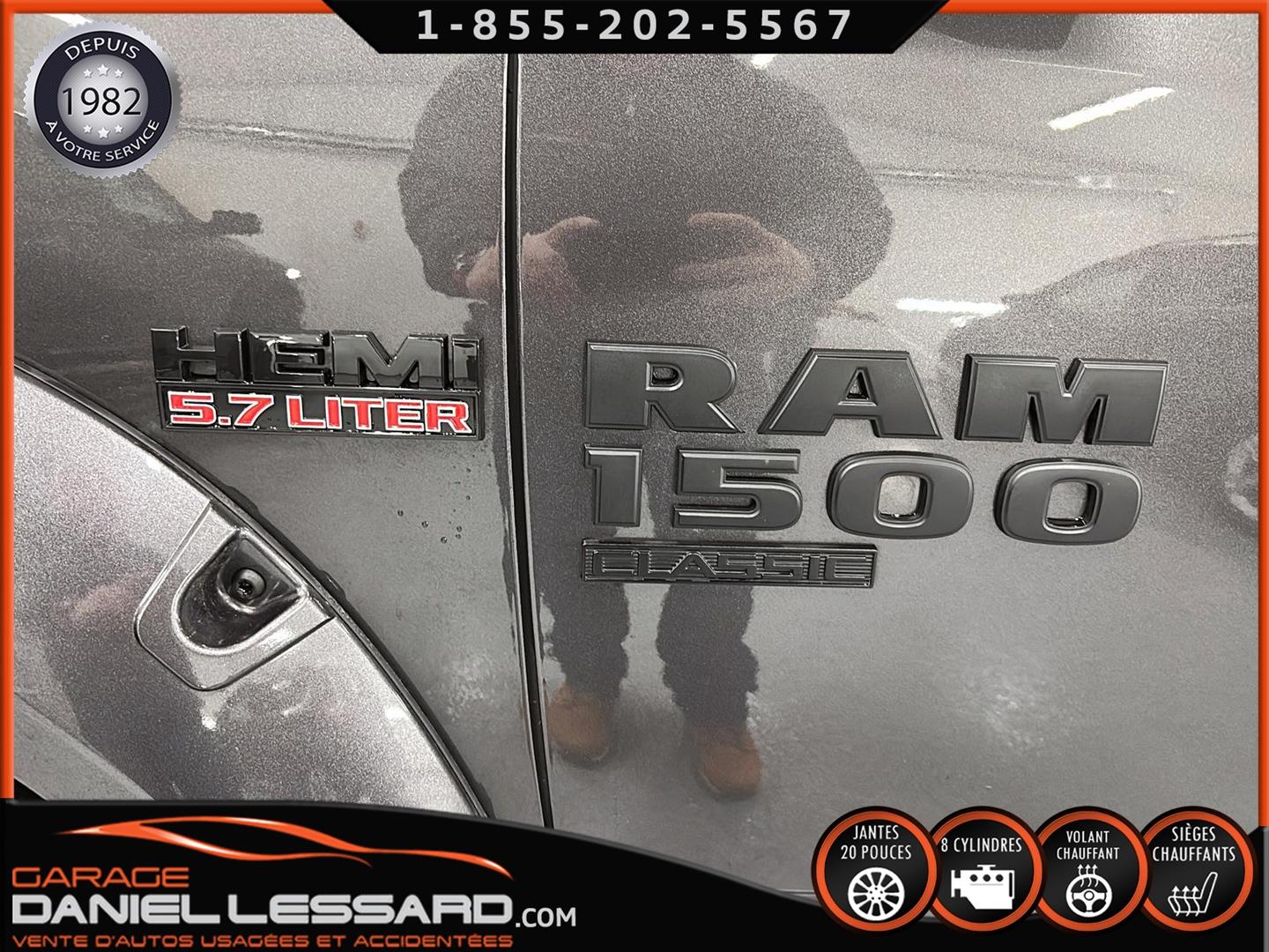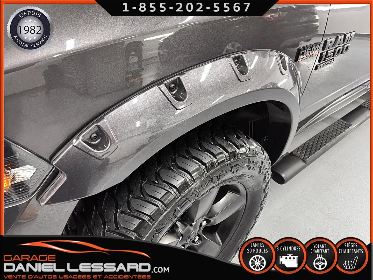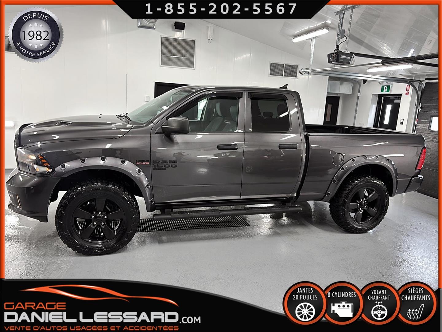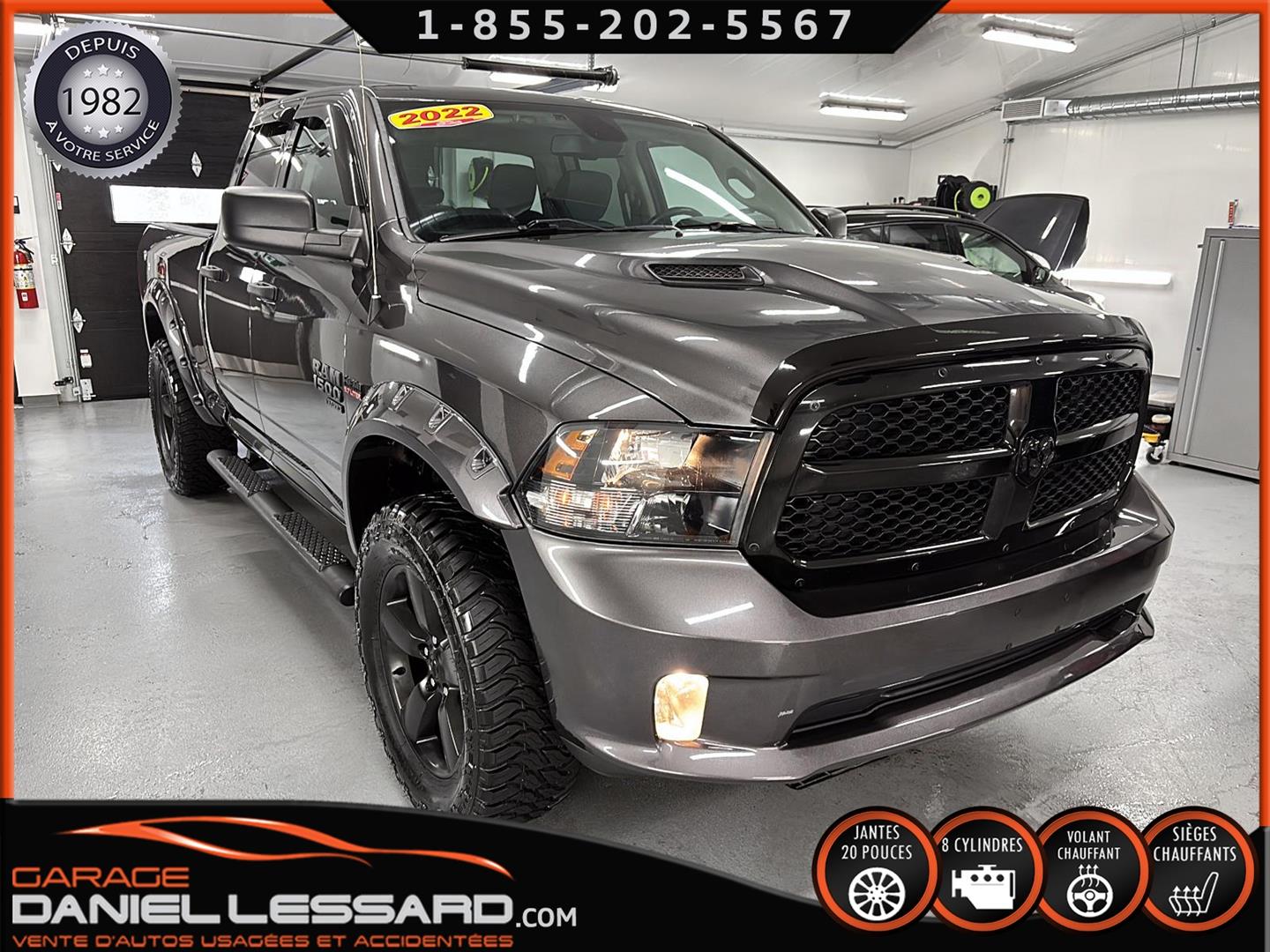 RAM 1500 CLASSIC EXPRESS QUAD CAB 4X4 NIGHT EDITION, GRANITE CRYSTAL METALLIC, MOTEUR V8 HEMI 5,7 L, TRANSMISSION AUTOMATIQUE TORQUEFLITE À 8 VITESSES, MAG 20 PO SUR PNEUS HOMOLOGER GRENLANDER PREDATOR M/T 35X12.50R20LT, DÉFLECTEUR DE PORTES ET DE CAPORT, ENSEMBLE SUB ZERO, SIÈGES AVANT CHAUFFANTS, VOLANT CHAUFFANT, MARCHEPIEDS LATÉRAUX TUBULAIRES NOIRS MOPAR, ÉCRAN TACTILE DE 8,4 POUCES, CLIMATISATION AVEC RÉGLAGE AUTOMATIQUE BI-ZONE, APPLE CARPLAY, GOOGLE ANDROID AUTO, CAMÉRA DE RECUL PARKVIEW, ATTELAGE DE CLASSE IV, SYSTÈME DE DÉMARRAGE À DISTANCE, NOUS AVONS LES DEUX KEY FOB MAIS JUSTE UNE CLÉ.