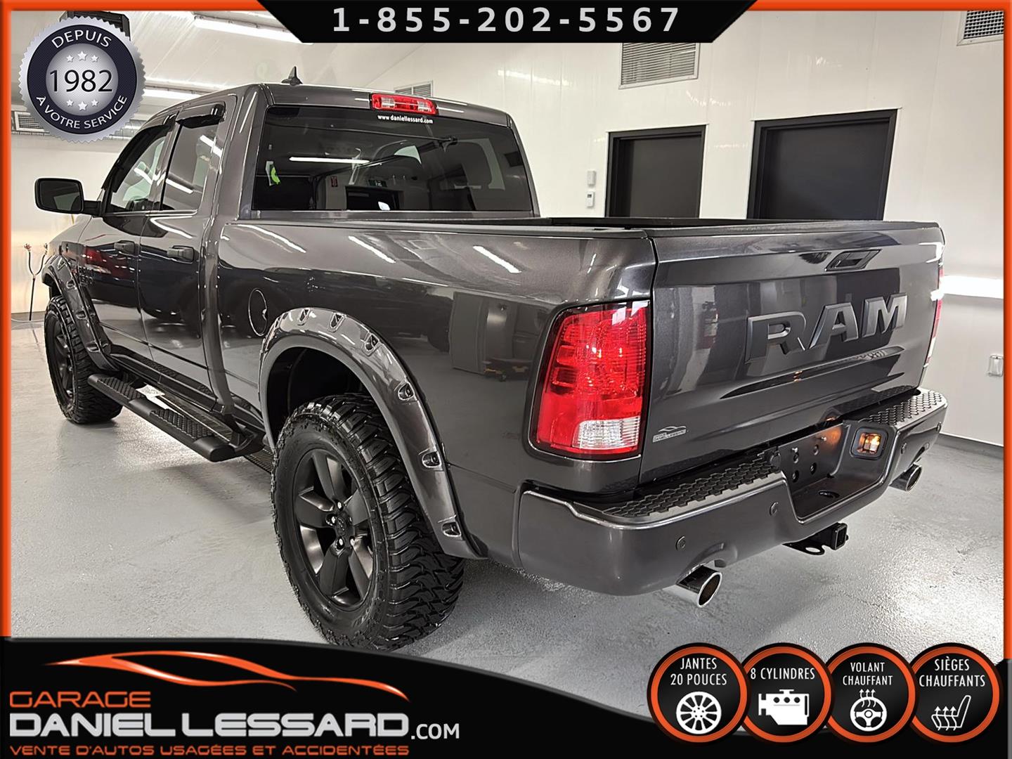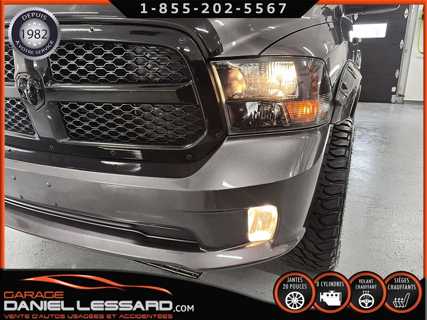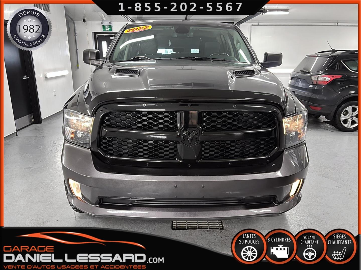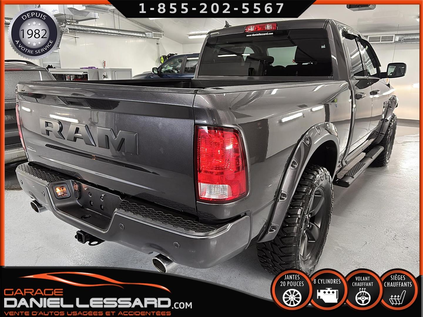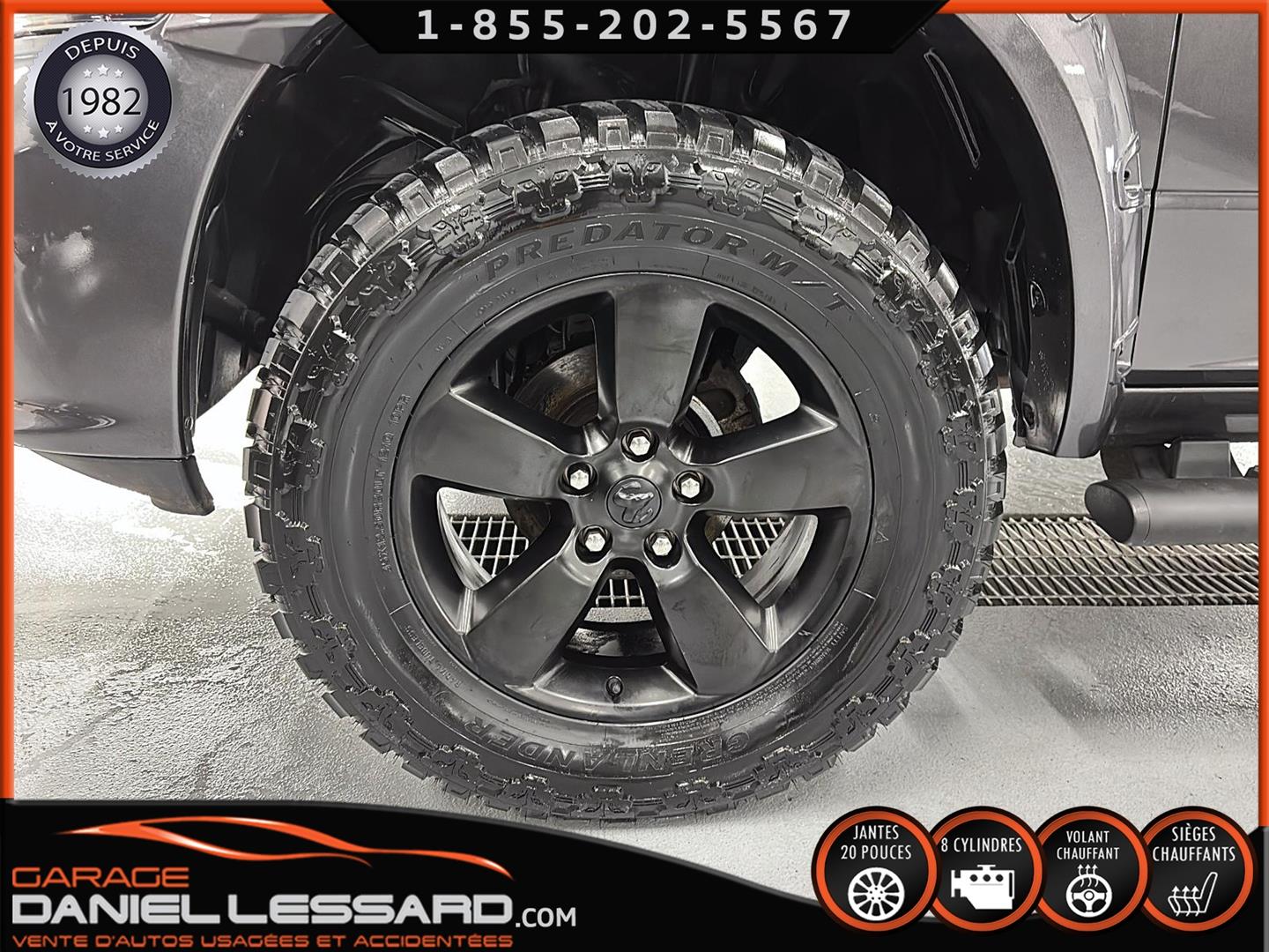 RAM 1500 CLASSIC EXPRESS QUAD CAB 4X4 NIGHT EDITION, GRANITE CRYSTAL METALLIC, MOTEUR V8 HEMI 5,7 L, TRANSMISSION AUTOMATIQUE TORQUEFLITE À 8 VITESSES, MAG 20 PO SUR PNEUS HOMOLOGER GRENLANDER PREDATOR M/T 35X12.50R20LT, DÉFLECTEUR DE PORTES ET DE CAPORT, ENSEMBLE SUB ZERO, SIÈGES AVANT CHAUFFANTS, VOLANT CHAUFFANT, MARCHEPIEDS LATÉRAUX TUBULAIRES NOIRS MOPAR, ÉCRAN TACTILE DE 8,4 POUCES, CLIMATISATION AVEC RÉGLAGE AUTOMATIQUE BI-ZONE, APPLE CARPLAY, GOOGLE ANDROID AUTO, CAMÉRA DE RECUL PARKVIEW, ATTELAGE DE CLASSE IV, SYSTÈME DE DÉMARRAGE À DISTANCE, NOUS AVONS LES DEUX KEY FOB MAIS JUSTE UNE CLÉ.