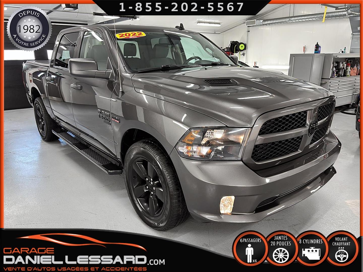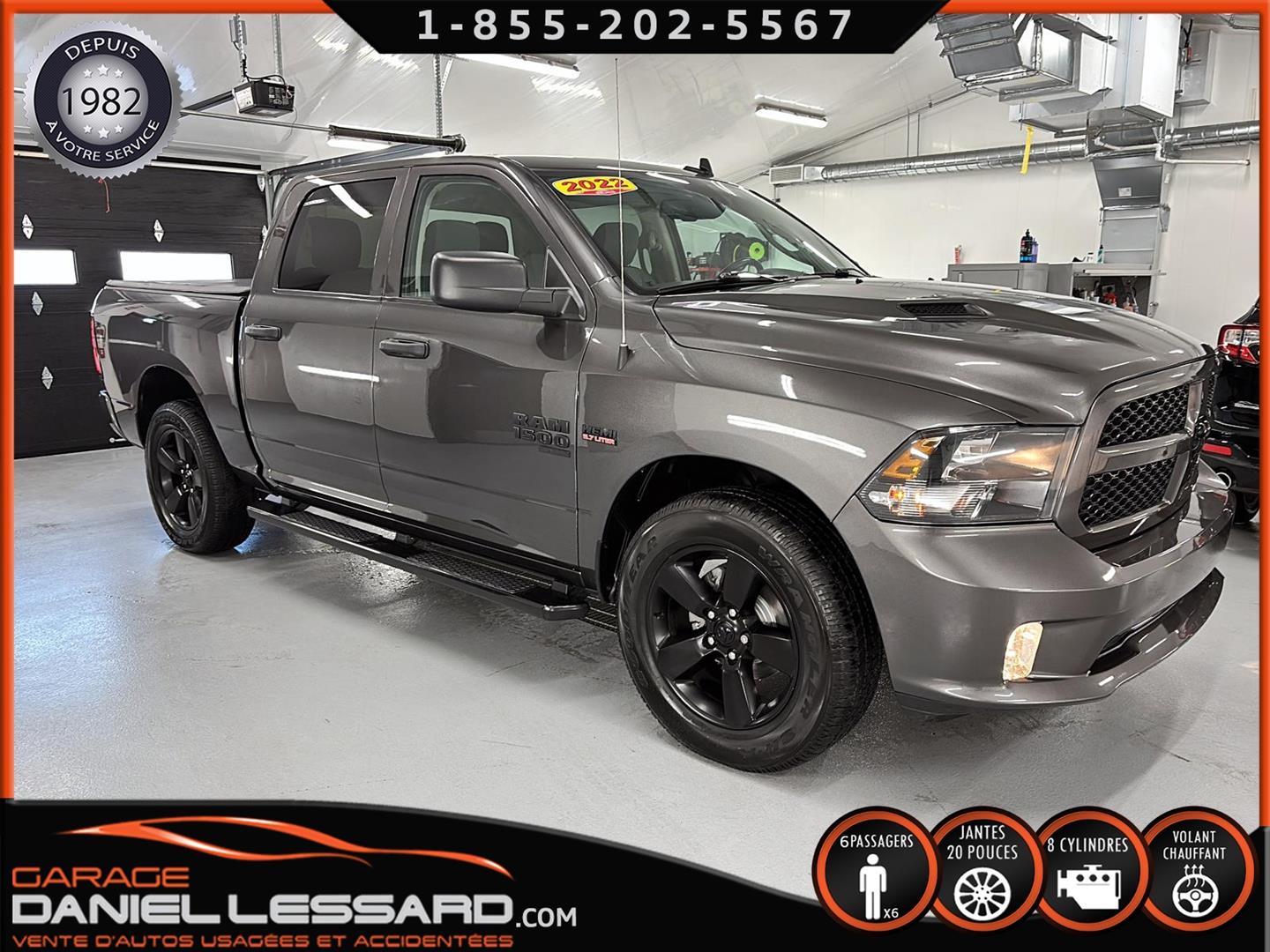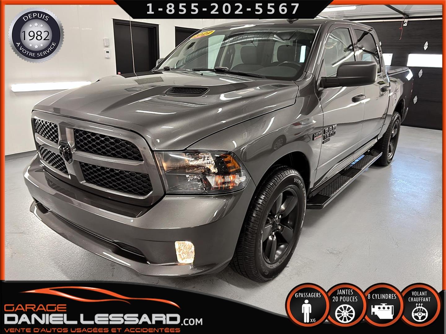 RAM 1500 2022 CLASSIC EXPRESS AVEC SEULEMENT 64. 620 KM AU COMPTEUR, TRANSMISSION AUTOMATIQUE A 8 RAPPORTS, TRACTION 4X4, MOTEUR HEMI 5.7 LITRES 8 CYINDRES, CONSOLE DU CENTRE RABATTABLE POUR UN 6E OCCUPANTS MODELE CREWCAB AVEC LES 4 GRANDES PORTES ET LA BOITE DE 5.7 PIEDS, TOILE SOUPLE INCLUS SUR LA BOITE, MARCHE PIEDS EXTERIEUR, BANC CONDUCTEUR ELECTRIQUE, VITRES ET MIROIRS ÉLECTRIQUE, BANCS CHAUFFANT, VOLANT CHAUFFANT, AFFICHAGE SUR GRANDE ECRAN DE BORD AVEC CAMERA DE RECUL, SENSORS DE RAPPROCHEMENT ARRIERE, COMMANDE MONTÉ AU VOLANT, FOGLIGHTS, HOOD RAM AIR, HITCH AVEC FILAGE 4 / 7 BRINS, TAPIS 4 SAISONS D'ORIGINE INCLUS, ET BIEN PLUS ENCORE, TRÈS BEAU CAMION BIEN ÉQUIPÉ ET TRES PROPRE, DISPONIBLE DÈS MAINTENANT . FINANCEMENT DISPONIBLE , GARANTIE INCLUSE 6 MOIS / 10 000 KM, INDIQUE RECONSTRUIT SUR L'IMMATRICULATION