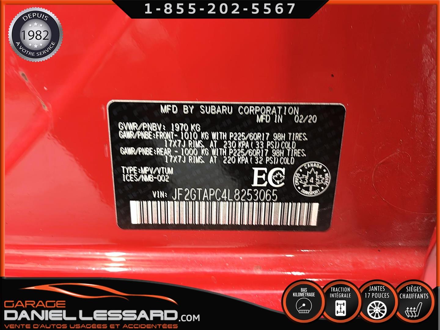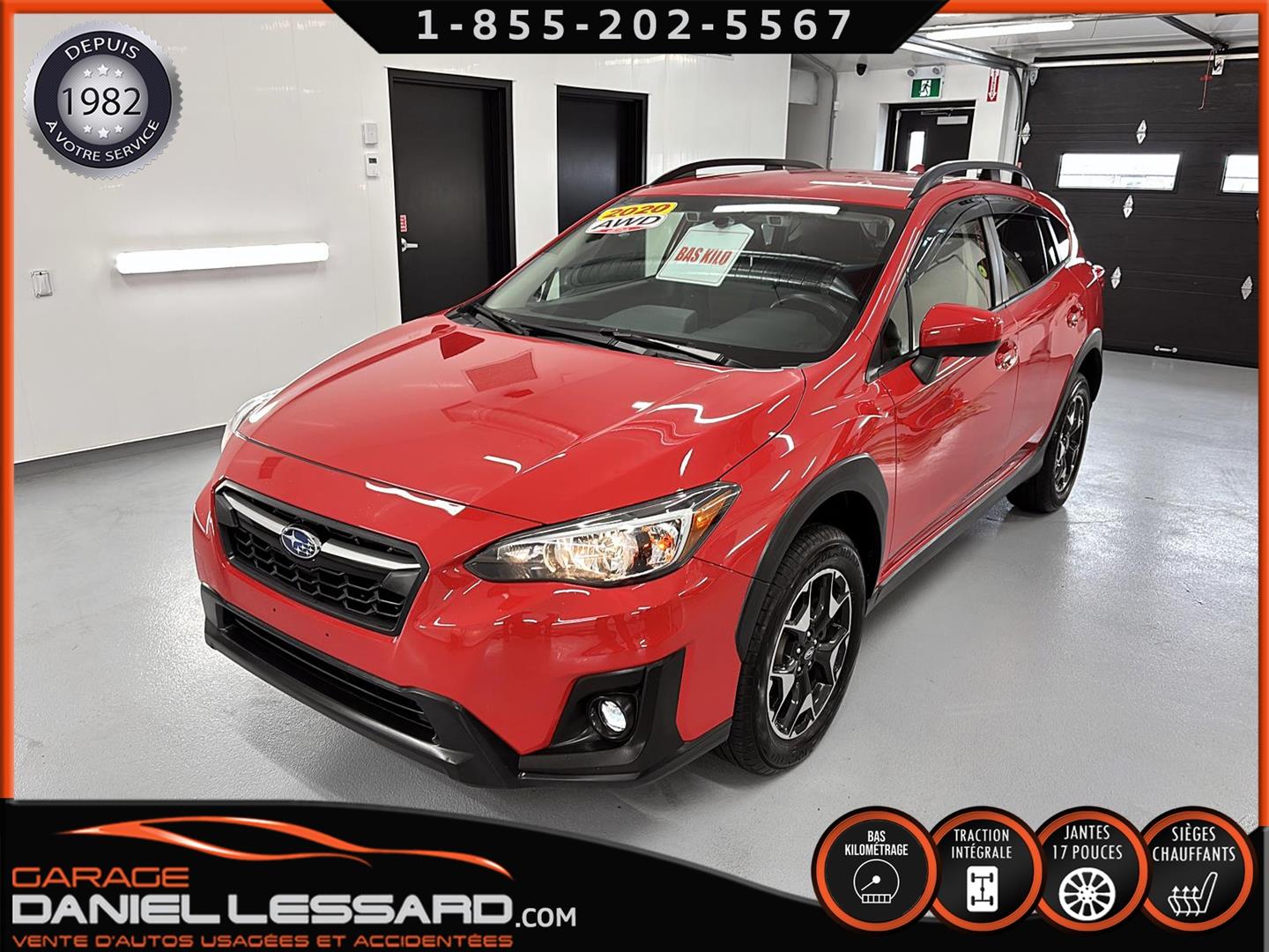 SUBARU CROSSTREK TOURING 2020 AVEC EYESIGHT, ***À BAS KM***, COULEUR ROUGE PUR, MOTEUR SUBARU BOXER 4 CYLINDRES DE 2,0 LITRES, TRANSMISSION À VARIATION CONTINUE LINEARTRONIC AVEC PALETTES AU VOLANT, TRACTION INTÉGRALE SYMÉTRIQUE PERMANENTE SUBARU, RÉPARTITION ACTIVE DU COUPLE, X-MODE, BARRES DE TOIT, JANTES EN ALLIAGE D'ALUMINIUM DE 17 POUCES AVEC PNEUS D'ÉTÉ YOKOHAMA GEOLANDER 225/60/17, CLIMATISATION AUTOMATIQUE, SIÈGES AVANT CHAUFFANTS À DEUX MODES, SYSTÈME D'INFODIVERTISSEMENT DE 6,5 POUCES, SYSTÈME AUDIO AM/FM/MP3/WMA AVEC ÉCRAN TACTILE HAUTE RÉSOLUTION, APPLE CARPLAY ET ANDROID AUTO, 6 HAUT-PARLEURS, FREINAGE PRÉCOLLISION, RÉGULATEUR DE VITESSE ADAPTATIF, AVERTISSEUR DE SORTIE DE VOIE ET DE DÉVIATION DE TRAJECTOIRE AVEC ASSISTANCE AU MAINTIEN DE VOIE, DÉFLECTEUR DE PORTES. NOUS NE POSSÉDONS QU'UNE SEULE CLÉ ET LE MANUEL DU PROPRIÉTAIRE.
