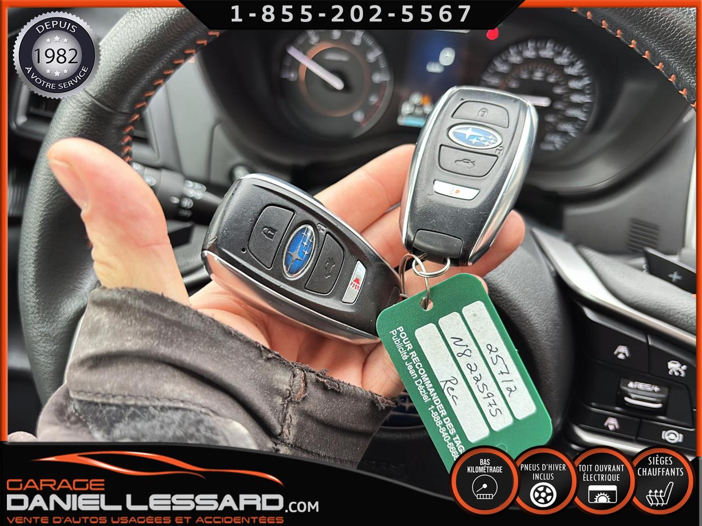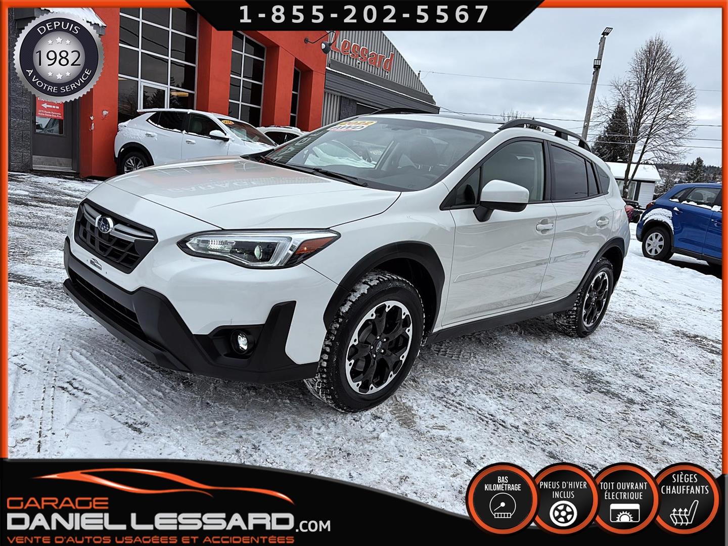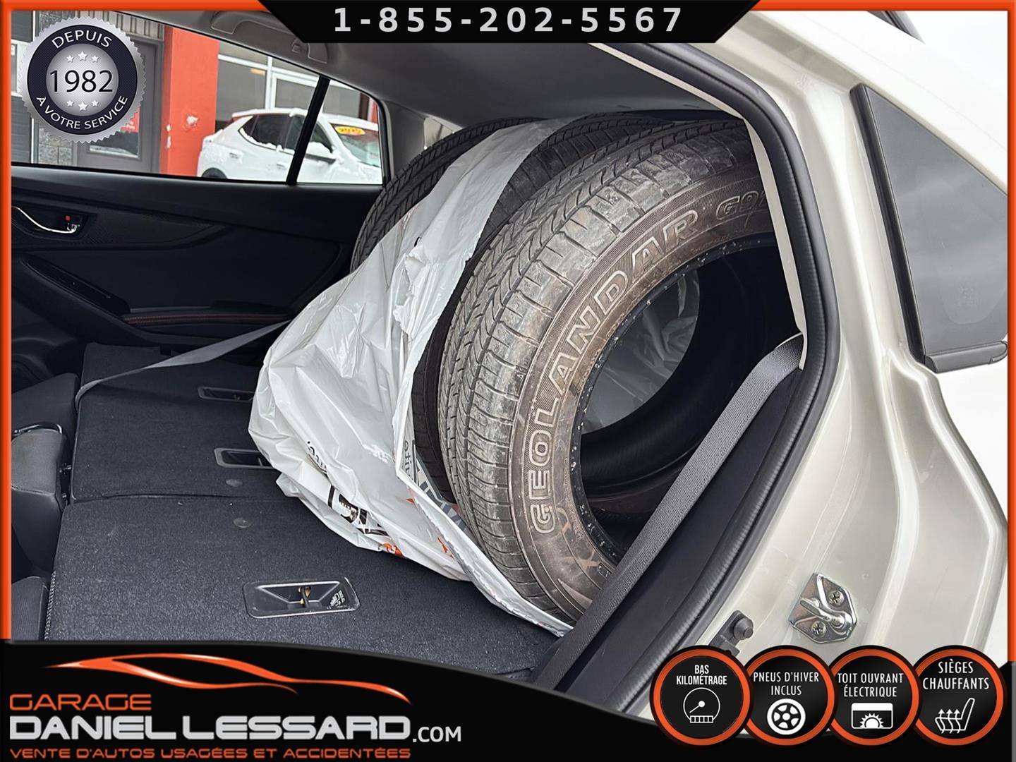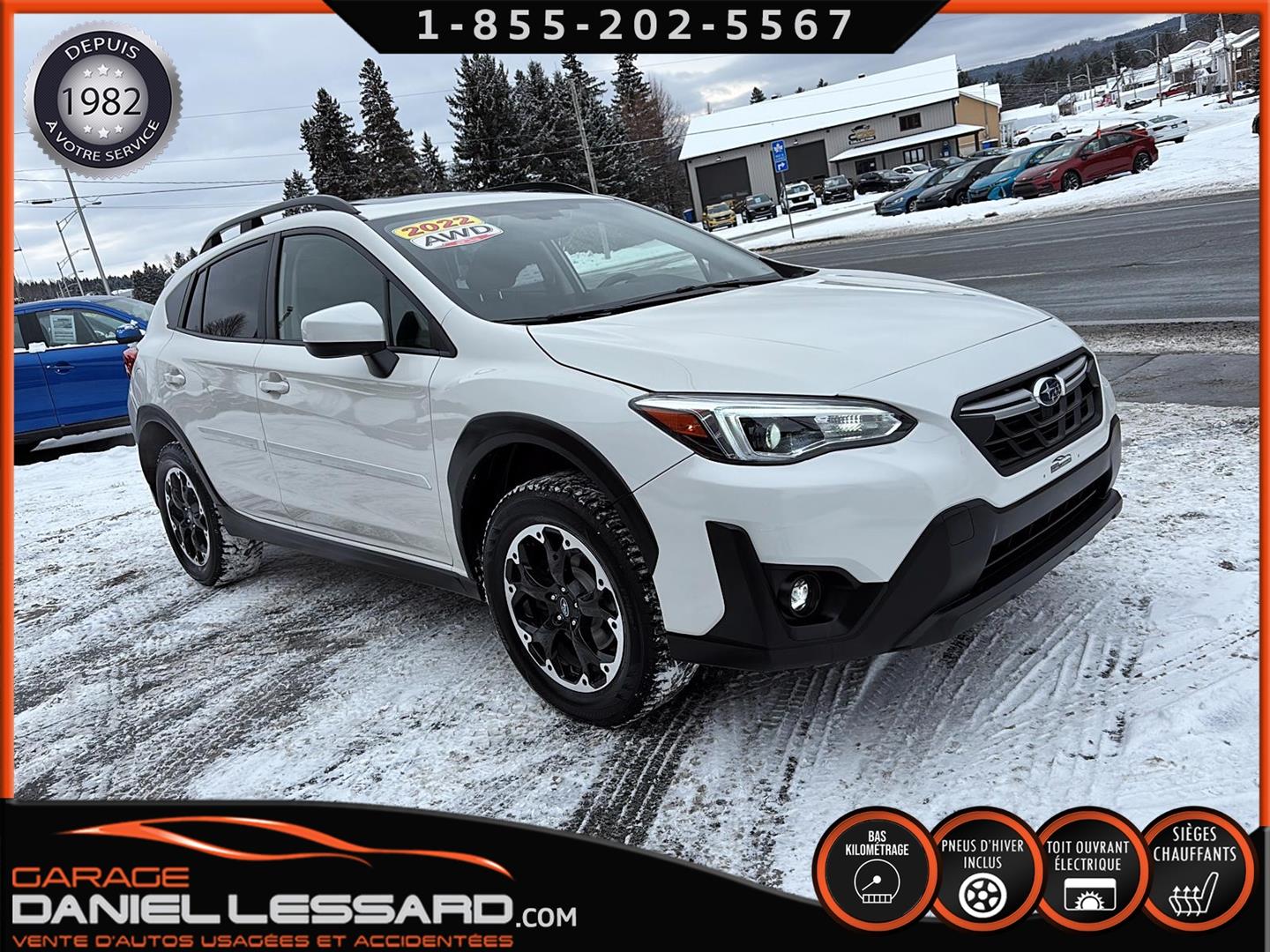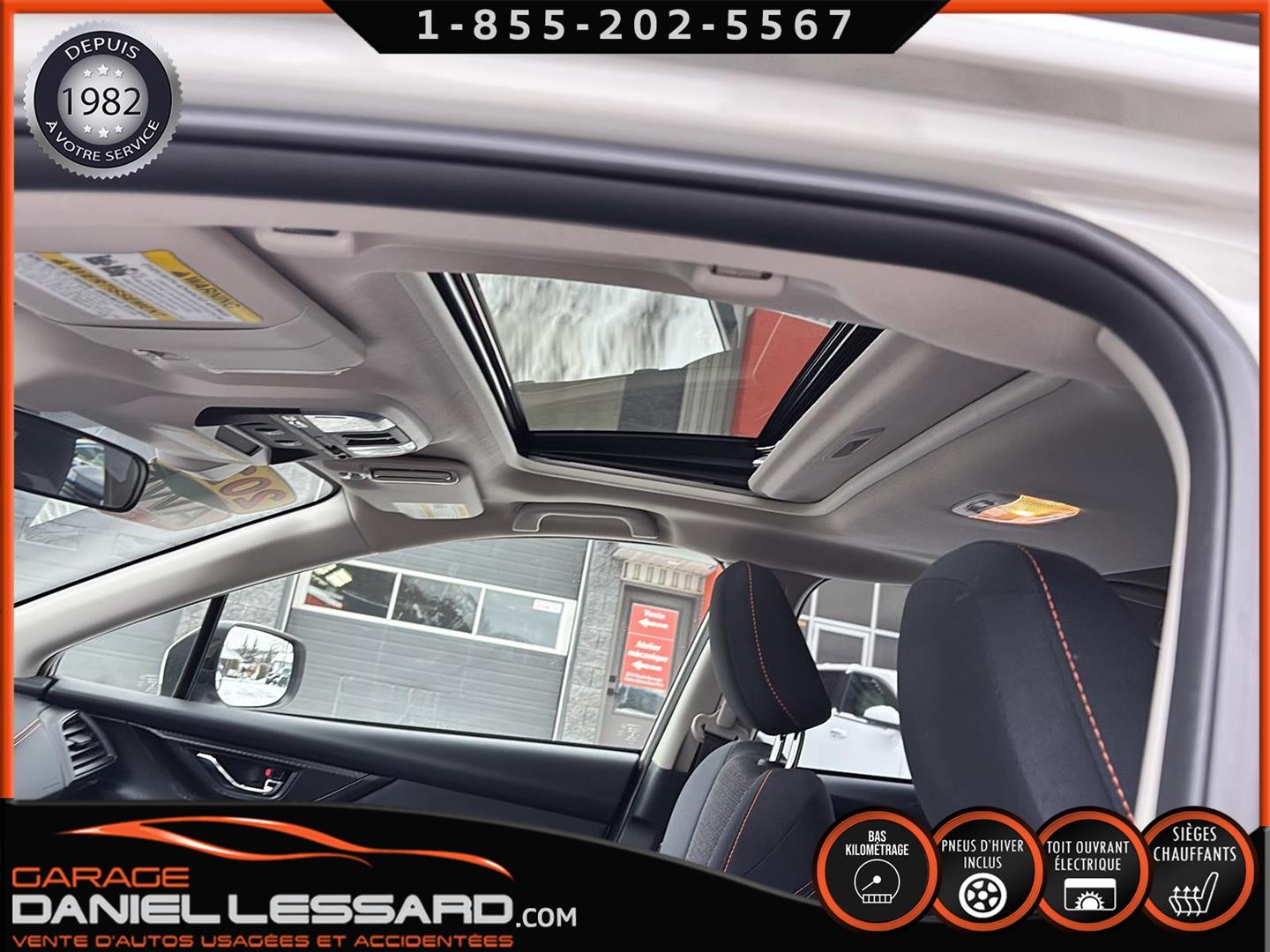 SUBARU CROSSTREK SPORT AWD 2022, BAS KM 26. 768 SEULEMENT, MOTEUR 2.0 LITRES 4 CYLINDRES, SYSTEME EYESIGHT POUR AIDES A LA CONDUITE, TOIT OUVRANT, GROUPE ÉLECTRIQUE, CONTROL AUDIO, TÉLÉPHONIQUE, CRUISE CONTROL ADAPTATIF ET CHANGEMENT DE VITESSE AU VOLANT, SYSTEM DE DÉTECTION D'ANGLES MORT, SYSTEM DE MAINTIEN DE VOIE ET CHANGEMENT DE VOIE INVOLONTAIRE, VOLANT CHAUFFANT, SIÈGE CHAUFFANT CAMÉRA DE RECUL, LUMIÈRE A BRUME, CD, SIRIUS, VITRE TEINTÉ, PORTE BAGAGE, PUSH START, SENSOR DE PROXIMITÉ ARRIERE, MAG AVEC PNEU HIVER HANKOOK 225-60-17 COMME NEUF ET VIENT AUSSI AVEC PNEUS D'ÉTÉ YOKOHAMA 225 / 60 / 17 DONC 8 PNEUS INCLUS, NOUS AVONS LES 2 CLÉS, TAPIS ET MANUEL DU PROPRIÉTAIRE. TRÈS BELLE CONDITION GENERALE, FREINS AVANT ET ARRIERE FLAMBANT NEUF, CHANGEMENT D'HUILE A JOUR