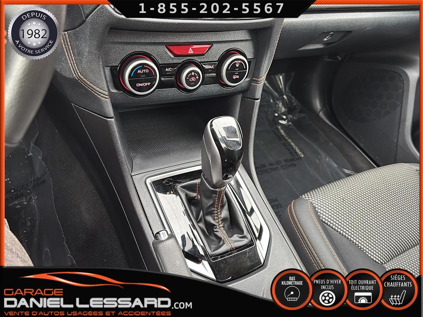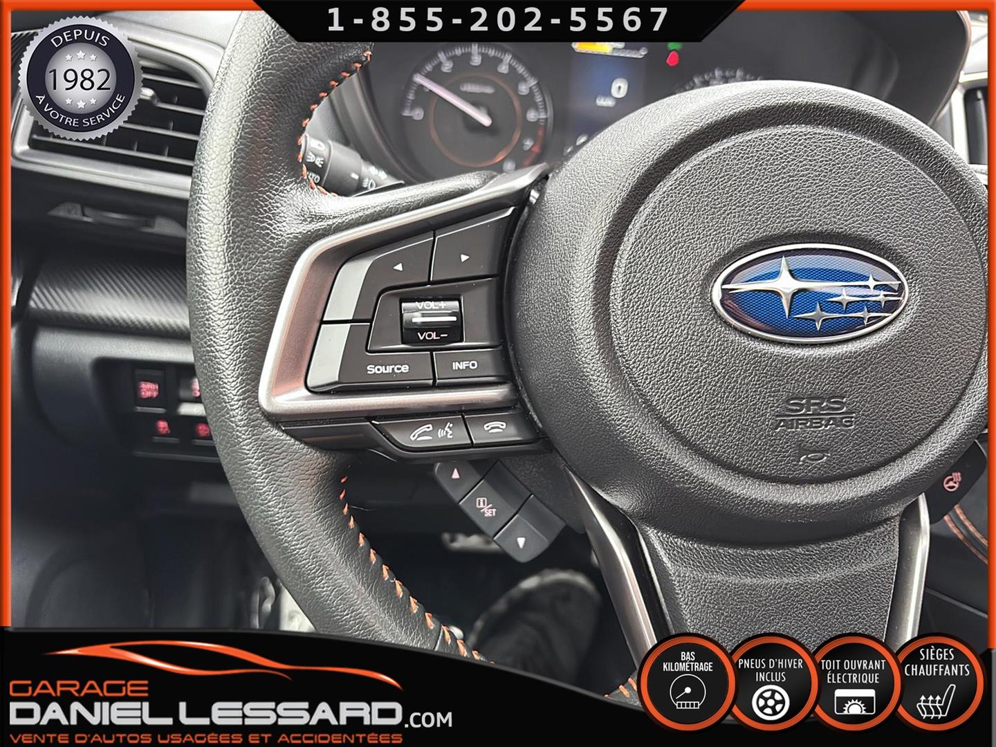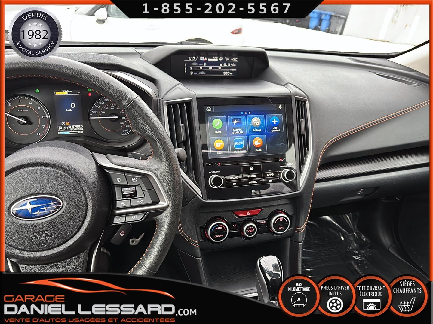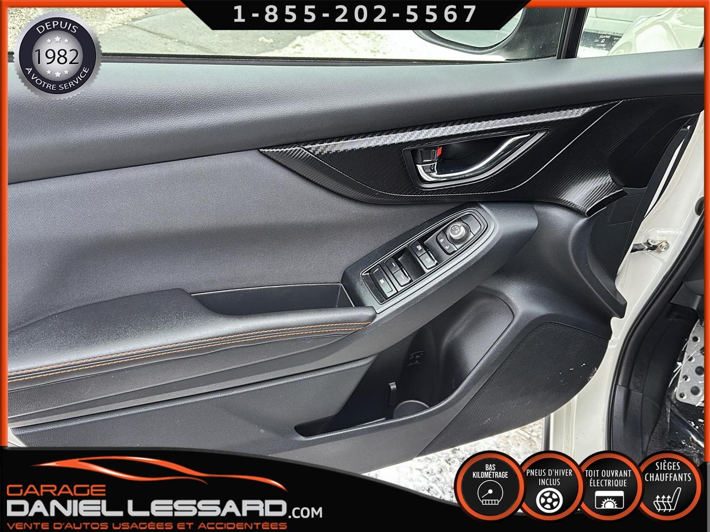 SUBARU CROSSTREK SPORT AWD 2022, BAS KM 26. 768 SEULEMENT, MOTEUR 2.0 LITRES 4 CYLINDRES, SYSTEME EYESIGHT POUR AIDES A LA CONDUITE, TOIT OUVRANT, GROUPE ÉLECTRIQUE, CONTROL AUDIO, TÉLÉPHONIQUE, CRUISE CONTROL ADAPTATIF ET CHANGEMENT DE VITESSE AU VOLANT, SYSTEM DE DÉTECTION D'ANGLES MORT, SYSTEM DE MAINTIEN DE VOIE ET CHANGEMENT DE VOIE INVOLONTAIRE, VOLANT CHAUFFANT, SIÈGE CHAUFFANT CAMÉRA DE RECUL, LUMIÈRE A BRUME, CD, SIRIUS, VITRE TEINTÉ, PORTE BAGAGE, PUSH START, SENSOR DE PROXIMITÉ ARRIERE, MAG AVEC PNEU HIVER HANKOOK 225-60-17 COMME NEUF ET VIENT AUSSI AVEC PNEUS D'ÉTÉ YOKOHAMA 225 / 60 / 17 DONC 8 PNEUS INCLUS, NOUS AVONS LES 2 CLÉS, TAPIS ET MANUEL DU PROPRIÉTAIRE. TRÈS BELLE CONDITION GENERALE, FREINS AVANT ET ARRIERE FLAMBANT NEUF, CHANGEMENT D'HUILE A JOUR