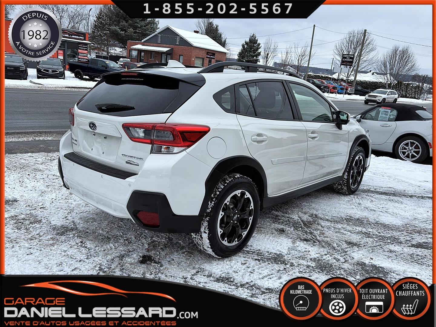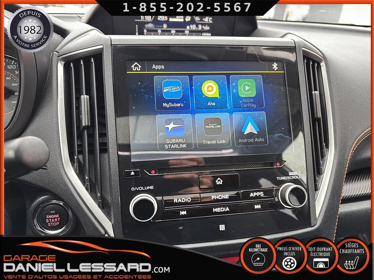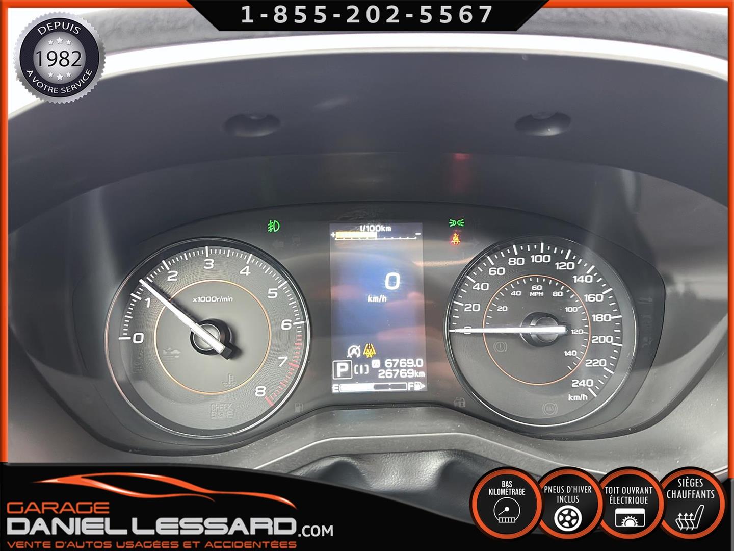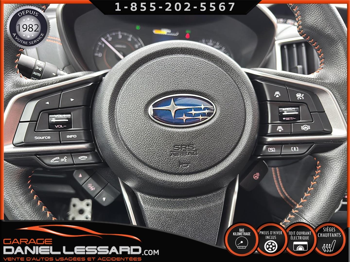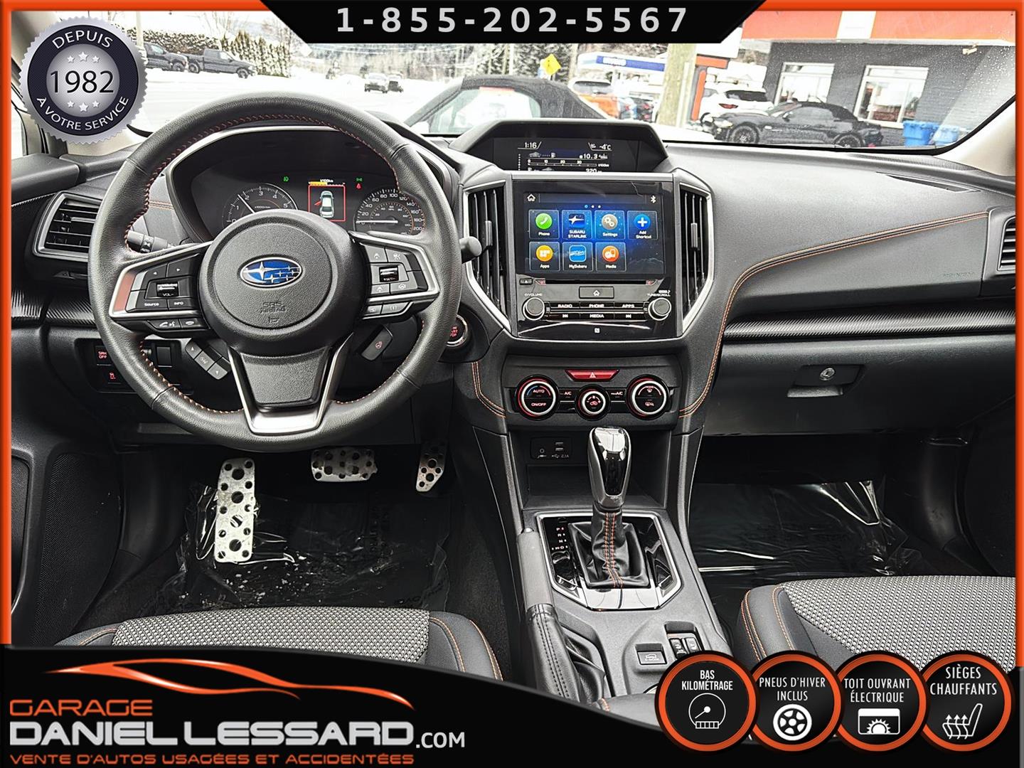 SUBARU CROSSTREK SPORT AWD 2022, BAS KM 26. 768 SEULEMENT, MOTEUR 2.0 LITRES 4 CYLINDRES, SYSTEME EYESIGHT POUR AIDES A LA CONDUITE, TOIT OUVRANT, GROUPE ÉLECTRIQUE, CONTROL AUDIO, TÉLÉPHONIQUE, CRUISE CONTROL ADAPTATIF ET CHANGEMENT DE VITESSE AU VOLANT, SYSTEM DE DÉTECTION D'ANGLES MORT, SYSTEM DE MAINTIEN DE VOIE ET CHANGEMENT DE VOIE INVOLONTAIRE, VOLANT CHAUFFANT, SIÈGE CHAUFFANT CAMÉRA DE RECUL, LUMIÈRE A BRUME, CD, SIRIUS, VITRE TEINTÉ, PORTE BAGAGE, PUSH START, SENSOR DE PROXIMITÉ ARRIERE, MAG AVEC PNEU HIVER HANKOOK 225-60-17 COMME NEUF ET VIENT AUSSI AVEC PNEUS D'ÉTÉ YOKOHAMA 225 / 60 / 17 DONC 8 PNEUS INCLUS, NOUS AVONS LES 2 CLÉS, TAPIS ET MANUEL DU PROPRIÉTAIRE. TRÈS BELLE CONDITION GENERALE, FREINS AVANT ET ARRIERE FLAMBANT NEUF, CHANGEMENT D'HUILE A JOUR