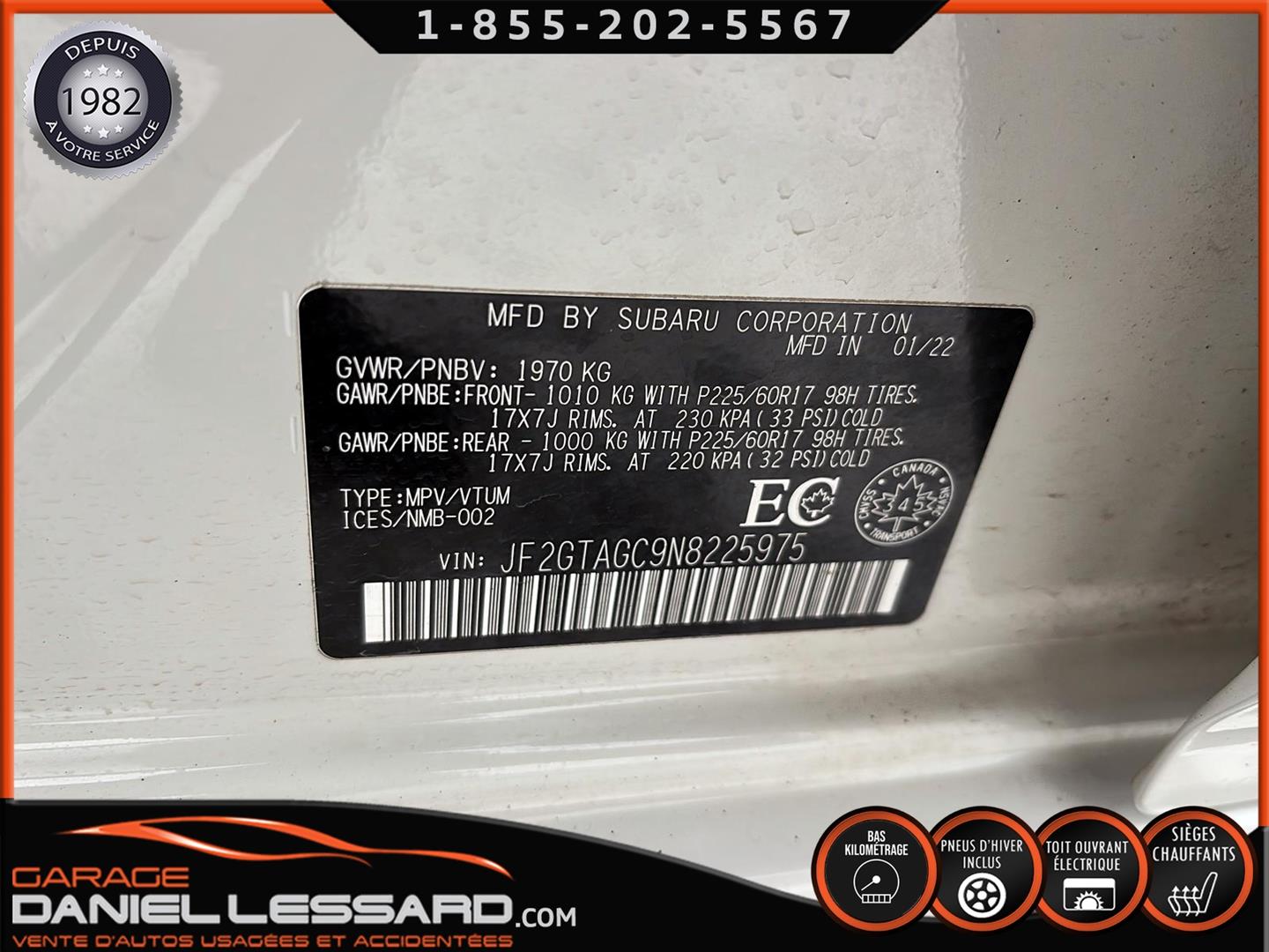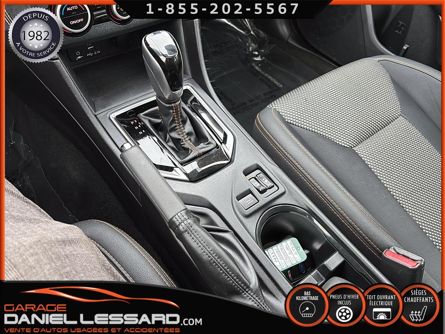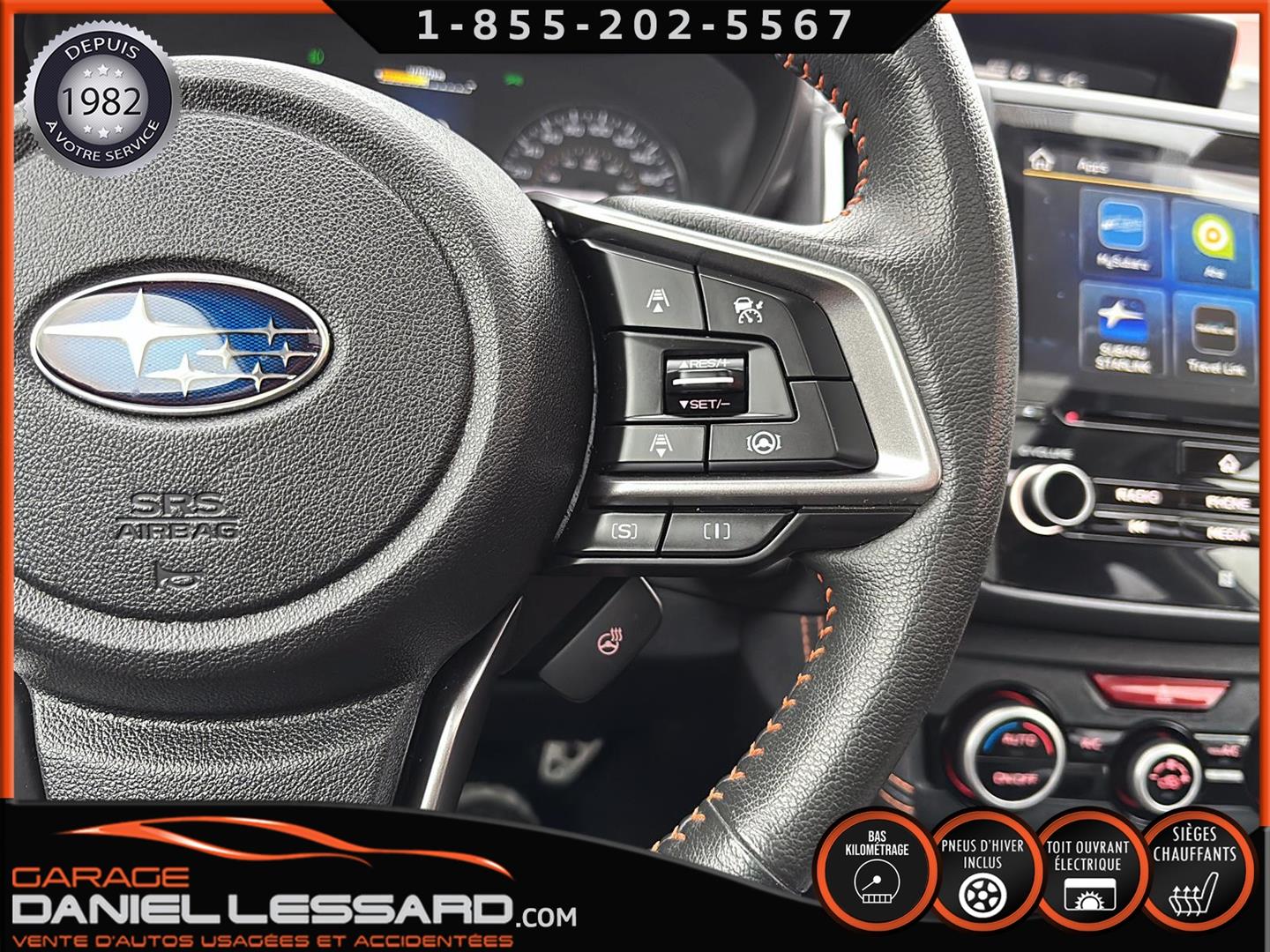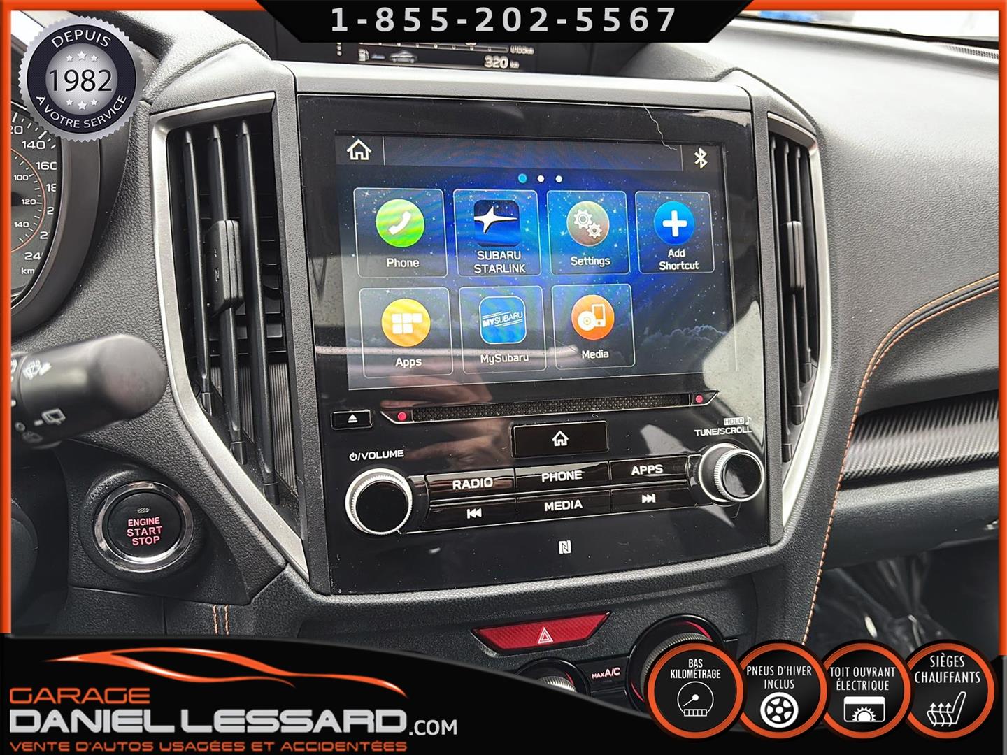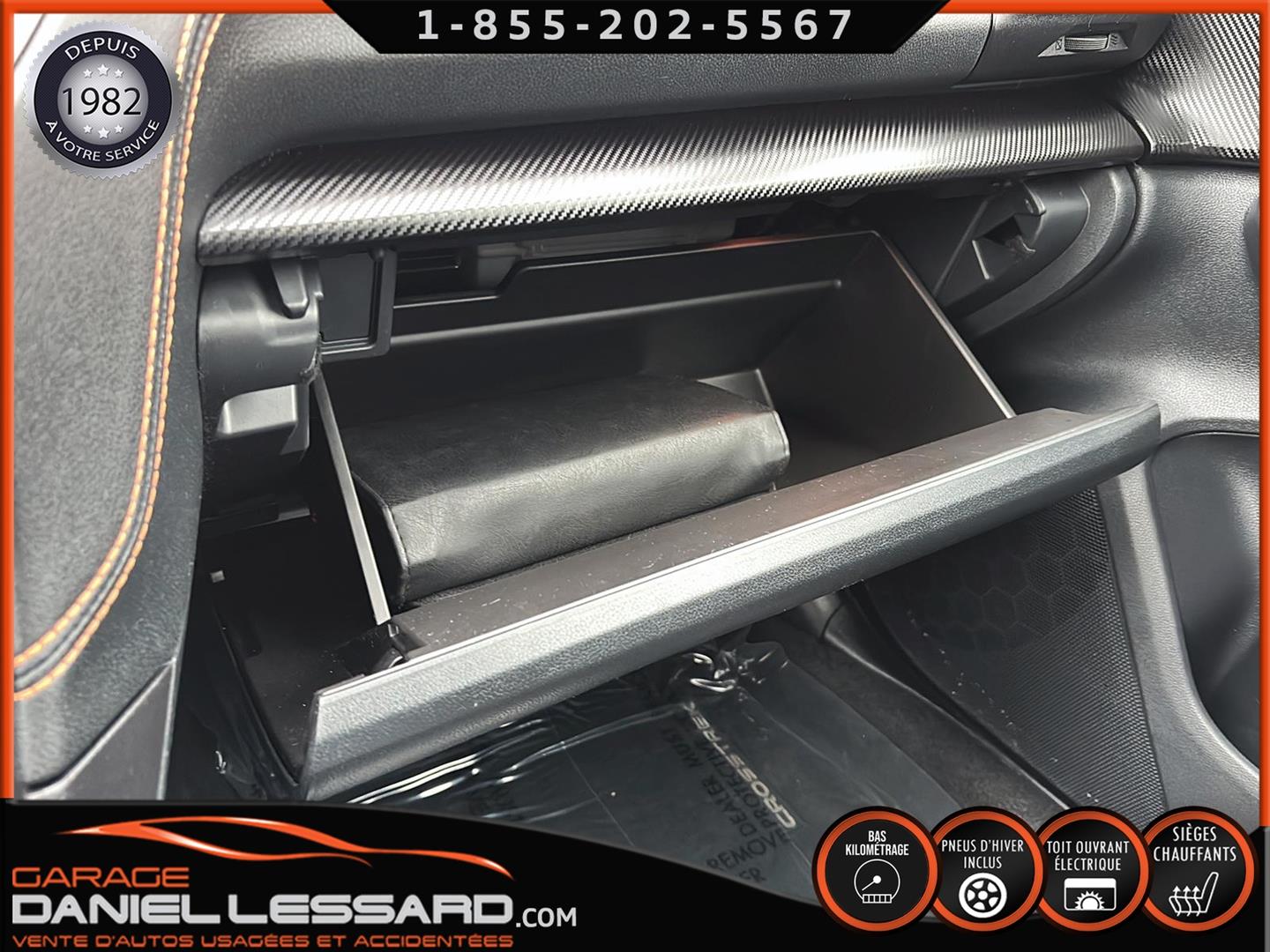 SUBARU CROSSTREK SPORT AWD 2022, BAS KM 26. 768 SEULEMENT, MOTEUR 2.0 LITRES 4 CYLINDRES, SYSTEME EYESIGHT POUR AIDES A LA CONDUITE, TOIT OUVRANT, GROUPE ÉLECTRIQUE, CONTROL AUDIO, TÉLÉPHONIQUE, CRUISE CONTROL ADAPTATIF ET CHANGEMENT DE VITESSE AU VOLANT, SYSTEM DE DÉTECTION D'ANGLES MORT, SYSTEM DE MAINTIEN DE VOIE ET CHANGEMENT DE VOIE INVOLONTAIRE, VOLANT CHAUFFANT, SIÈGE CHAUFFANT CAMÉRA DE RECUL, LUMIÈRE A BRUME, CD, SIRIUS, VITRE TEINTÉ, PORTE BAGAGE, PUSH START, SENSOR DE PROXIMITÉ ARRIERE, MAG AVEC PNEU HIVER HANKOOK 225-60-17 COMME NEUF ET VIENT AUSSI AVEC PNEUS D'ÉTÉ YOKOHAMA 225 / 60 / 17 DONC 8 PNEUS INCLUS, NOUS AVONS LES 2 CLÉS, TAPIS ET MANUEL DU PROPRIÉTAIRE. TRÈS BELLE CONDITION GENERALE, FREINS AVANT ET ARRIERE FLAMBANT NEUF, CHANGEMENT D'HUILE A JOUR