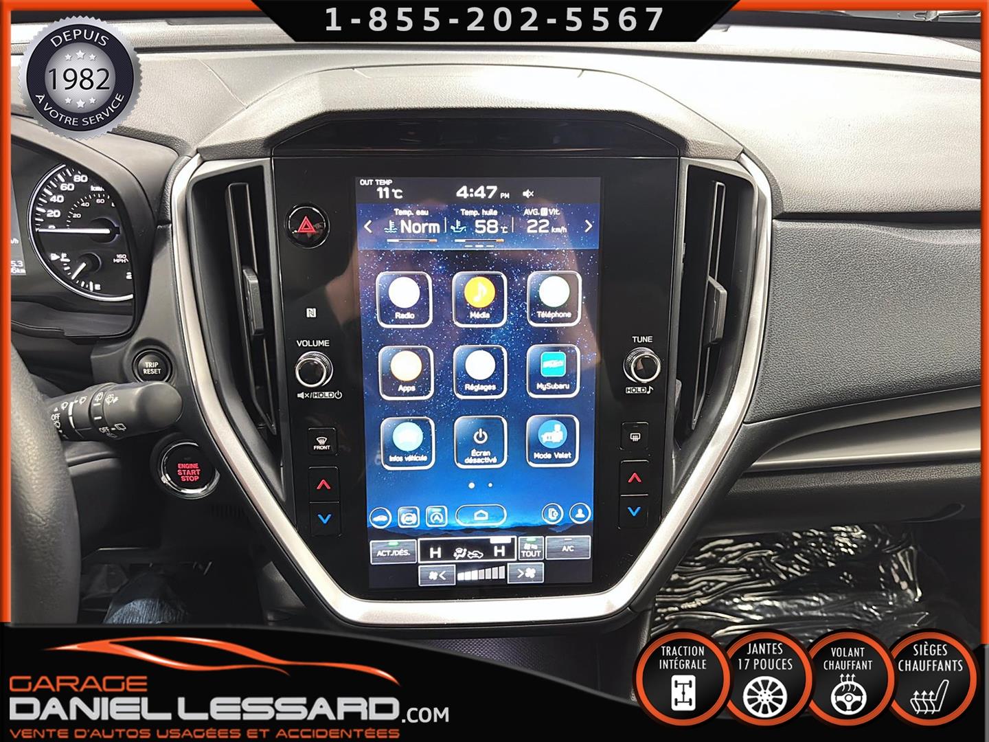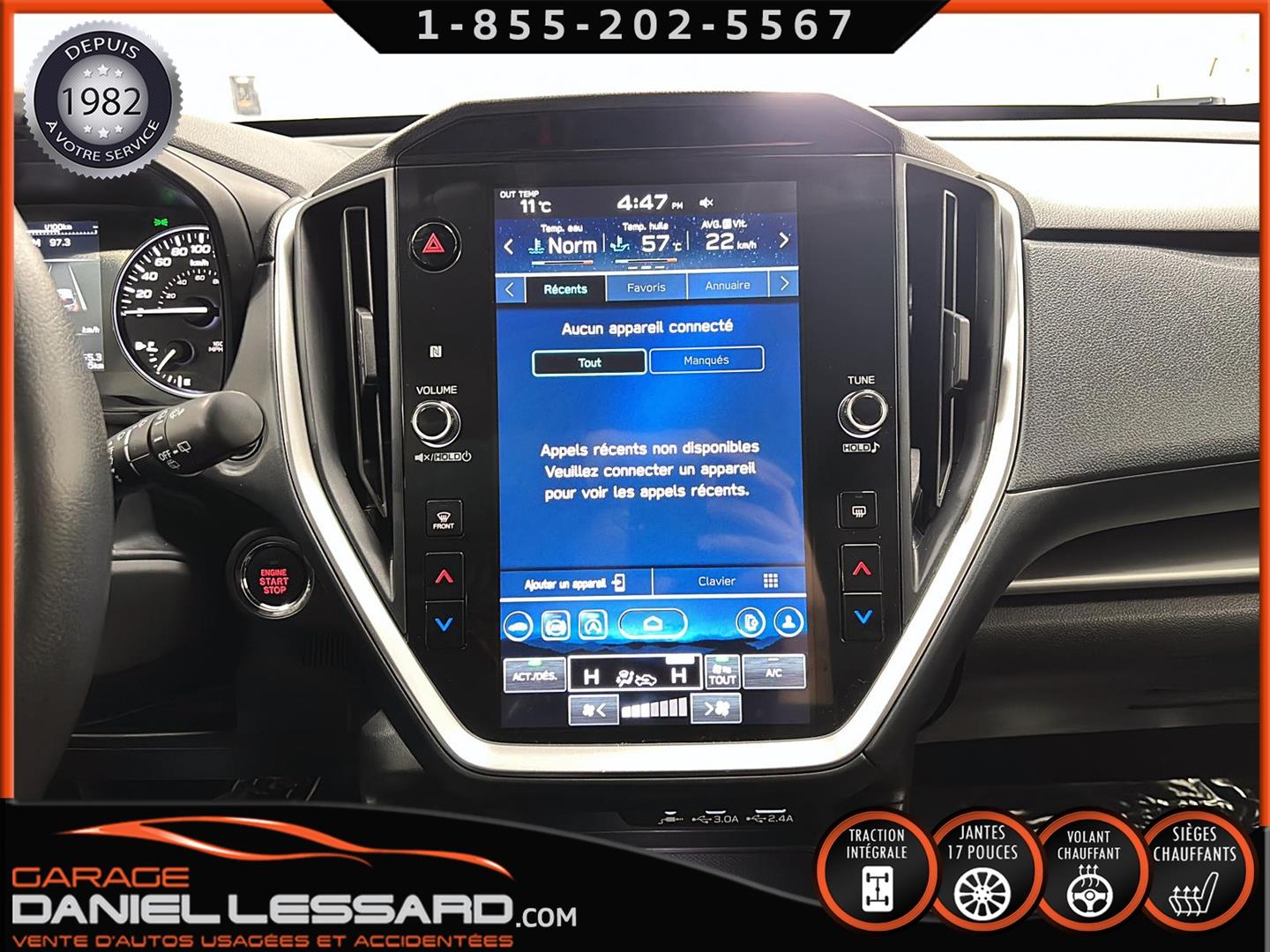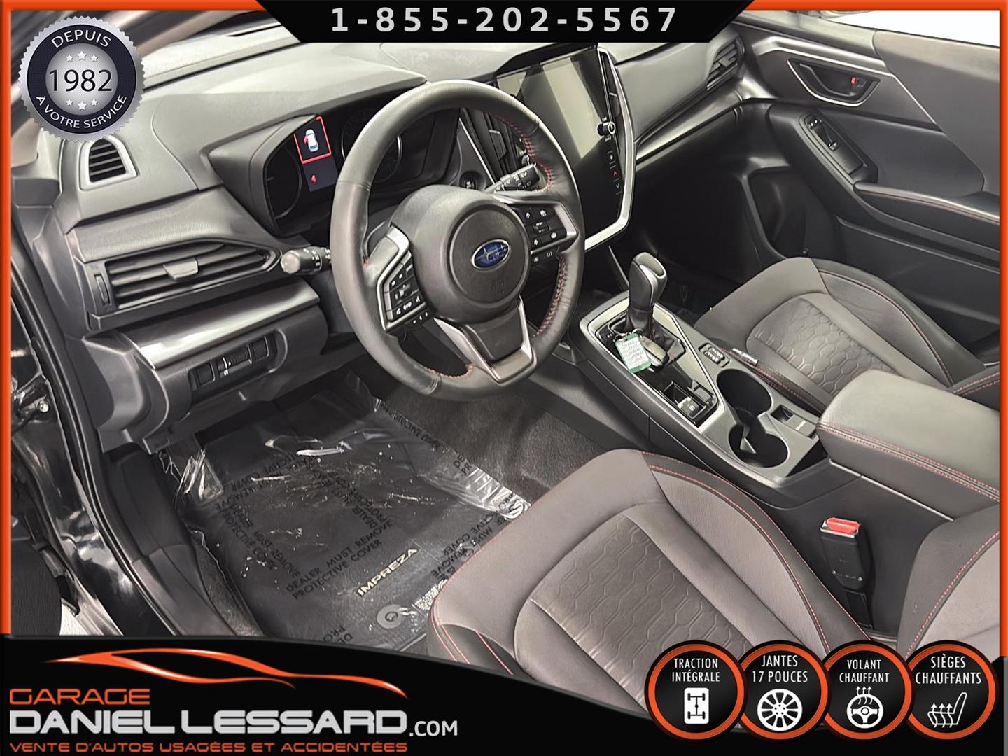 SUBARU IMPREZA TOURING 2024, MOTEUR SUBARU BOXER 4 CYLINDRES 2,0 LITRES DE 152 CH, TRANSMISSION À VARIATION CONTINUE (CVT), TRACTION INTÉGRALE SYMÉTRIQUE PERMANENTE SUBARU, SIÈGES AVANT CHAUFFANTS À DEUX MODES, CLIMATISATION AUTOMATIQUE BIZONE, TECHNOLOGIE D'AIDE À LA CONDUITE EYESIGHT, VOLANT CHAUFFANT, JANTES EN ALLIAGE D'ALUMINIUM DE 17 POUCES AVEC FINITION NOIRE BRILLANTE ET PNEUS FIRESTONE FT140 205/50/17, SI-DRIVE, PHARES ANTIBROUILLARD À DEL, SYSTÈME D'INFODIVERTISSEMENT DE TYPE TABLETTE DE 11,6 POUCES AVEC ÉCRAN TACTILE HAUTE RÉSOLUTION, SYSTÈME AUDIO AM/FM/MP3/WMA AVEC COMPATIBILITÉ SANS FIL APPLE CARPLAY ET ANDROID AUTO, SYSTÈME DE DÉTECTION DES VÉHICULES ARRIÈRE ET LATÉRAUX SUBARU AVEC DÉTECTION DES ANGLES MORTS, ASSISTANCE AU CHANGEMENT DE VOIE ET ALERTE DE CIRCULATION TRANSVERSALE ARRIÈRE. NOUS NE POSSÉDONS QU'UNE SEULE CLÉ ET LE MANUEL DU PROPRIÉTAIRE.