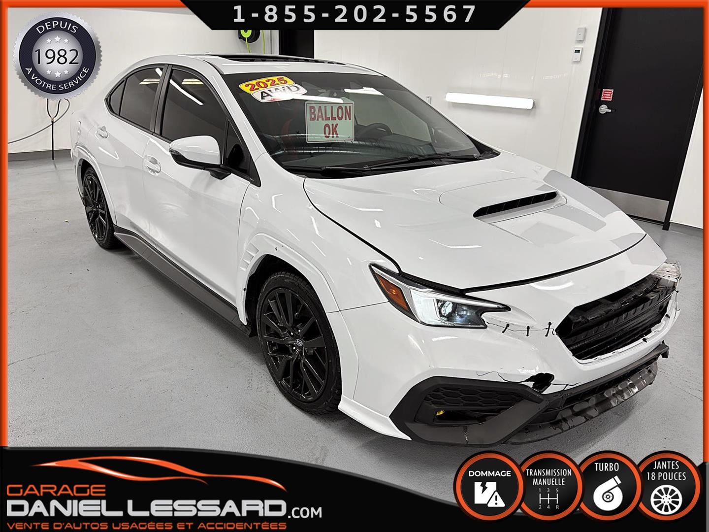 SUBARU WRX 2025, SPORT-TECH, DE COULEUR BLANC CÉRAMIQUE, MOTEUR BOXER DE SUBARU TURBO À INJECTION DIRECTE DE 2,4 L ET 271 CH, TRANSMISSION MANUELLE À 6 RAPPORTS RAPPROCHÉS, SYSTÈME DE TRACTION INTÉGRALE SYMÉTRIQUE À PRISE CONSTANTE SUBARU, ROUES EN ALLIAGE D'ALUMINIUM À 10 RAYONS JUMELÉS 18 PO FINI NOIR SUR PNEUS HOMOLOGER DE MARQUE HIFLY IN-TURI DE 245/40/18, TOIT OUVRANT ÉLECTRIQUE, FONCTIONNALITÉ APPLE CARPLAY ET ANDROID AUTO SANS FIL, SYSTÈME AUDIO À 11 ENCEINTES HAUT DE GAMME HARMAN KARDON AVEC CAISSON DE GRAVES ET AMPLIFICATEUR, SYSTÈME D'INFODIVERTISSEMENT À ÉCRAN TACTILE VERTICAL DE 11,6 PO AVEC NAVIGATION GPS, MONITEUR D'ASSISTANCE EYESIGHT, BAQUETS SPORT AVEC GARNISSAGE SOUPLE AVEC INSERTIONS D'ULTRASUEDE, SIÈGES AVANT CHAUFFANTS À TROIS INTENSITÉS, SIÈGES LATÉRALES ARRIÈRE CHAUFFANTS À DEUX INTENSITÉS, NOUS AVONS LES DEUX CLÉS ET LE MANUEL DU PROPRIO