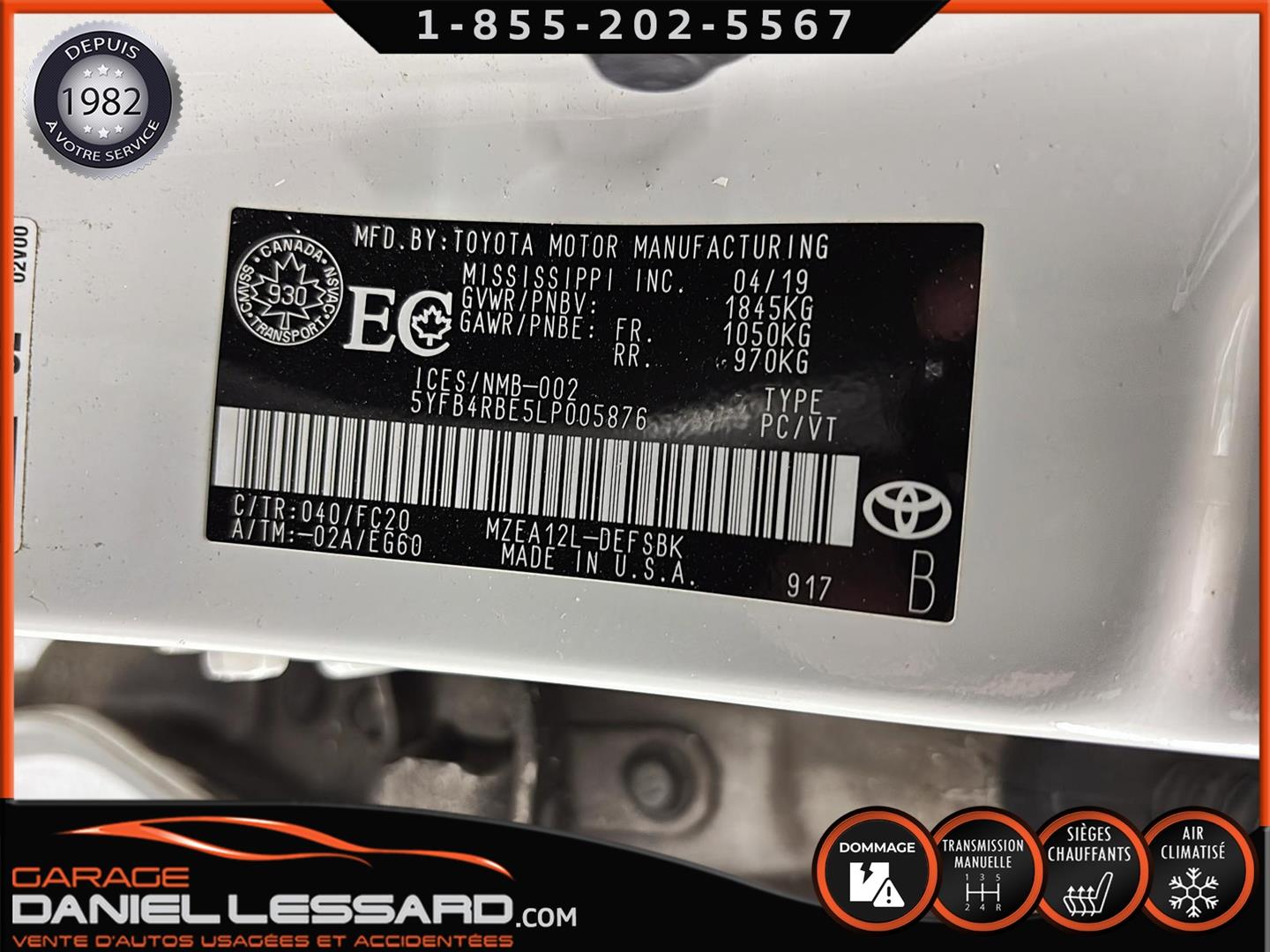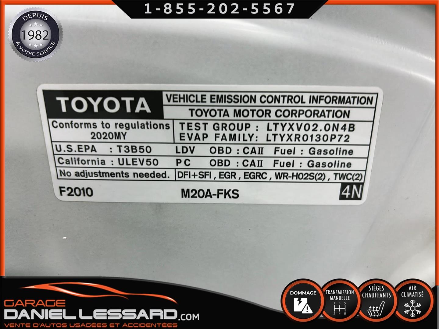 TOYOTA COROLLA SE 2020, MOTEUR 4 CYLINDRES EN LIGNE DE 2,0 LITRES DÉVELOPPANT 169 CH À 6 600 TR/MIN ET UN COUPLE DE 151 À 4 400 TR/MIN, BOÎTE MANUELLE INTELLIGENTE À 6 RAPPORTS, JANTES EN ACIER DE 16 POUCES AVEC ENJOLIVEURS, PNEUS D'HIVER CLOUTÉS GISLAVED NORD FROST 205/55/16, SYSTÈME AUDIO AVEC ÉCRAN TACTILE DE 8 POUCES, 6 HAUT-PARLEURS, DÉMARRAGE SANS CLÉ, SIÈGES EN TISSU HAUT DE GAMME AVEC REVÊTEMENT SPORT, SIÈGES BAQUETS AVANT CHAUFFANTS, SURVEILLANCE DES ANGLES MORTS, RÉGULATEUR DE VITESSE DYNAMIQUE À RADAR, FEUX DE ROUTE AUTOMATIQUES., NOUS AVONS SEULEMENT 1 CLÉ.