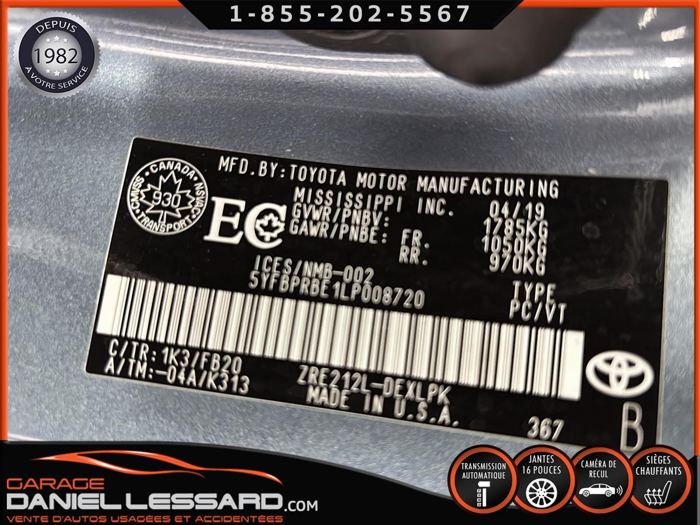TOYOTA COROLLA LE 2020, 4 CYLINDRE, AUTOMATIQUE, BAS KM, GROUPE ÉLECTRIQUE COMPLET , AIR CLIMATISÉ, LES BANC AVANT ET LE PARE BRISE SONT CHAUFFANTS, CAMERA DE RECUL, SYSTEME DE CHANGEMENT DE VOIE, ALERT IMPACT, CRUISE ADAPTATIF, DEFLECTEUR DE CAPOT, MAG AVEC PNEU D'ÉTÉ TOYO 205-55-15 AVEC 40% D'USURE, PRISE USB ET AUXILIAIRE, GARDE BOUE, TRACTION CONTROL, 1 CLÉ, LIVRE DE COMPAGNIE ET TAPIS D'ORIGINE, TRÈS BELLE VOITURE !!