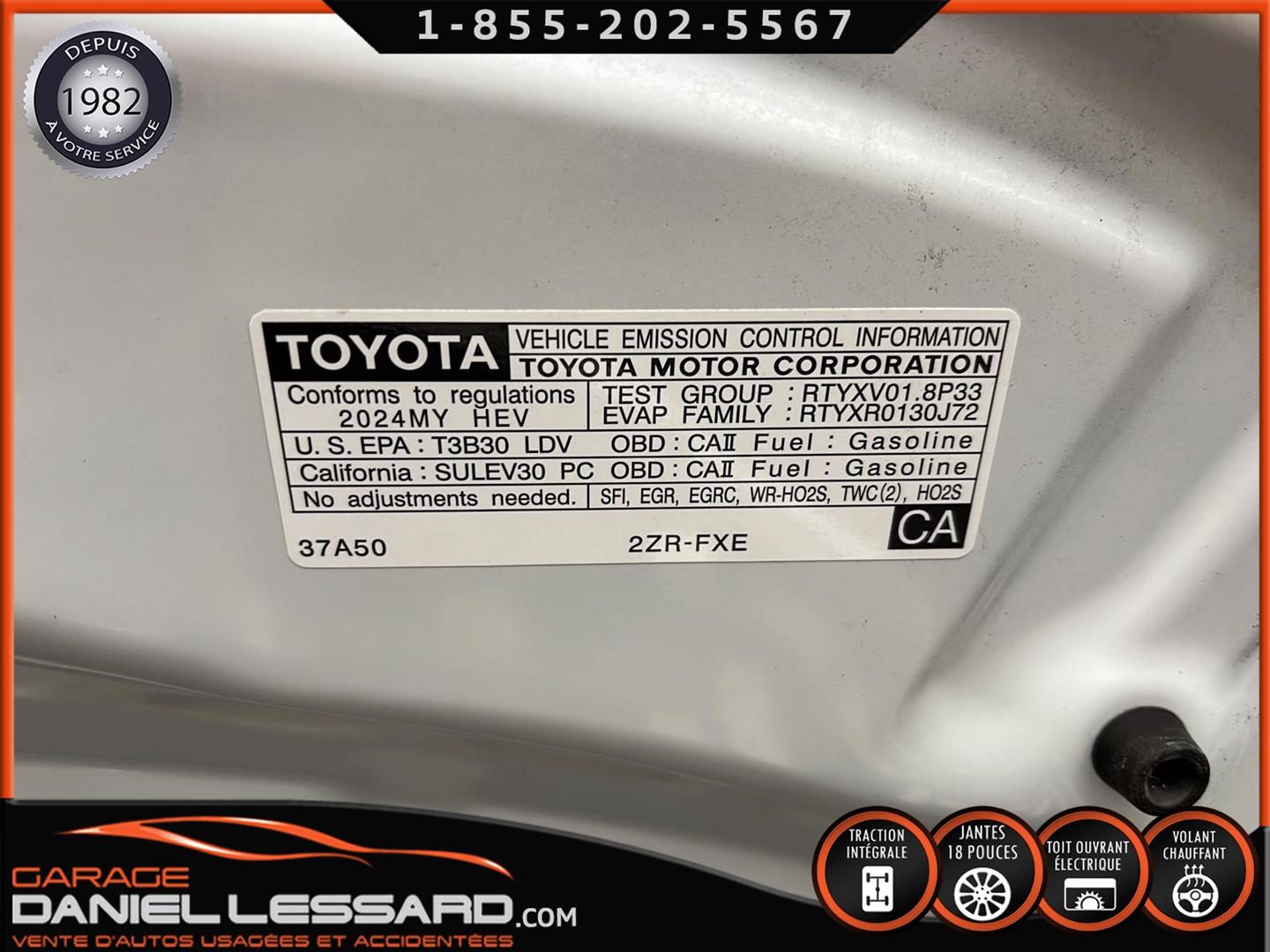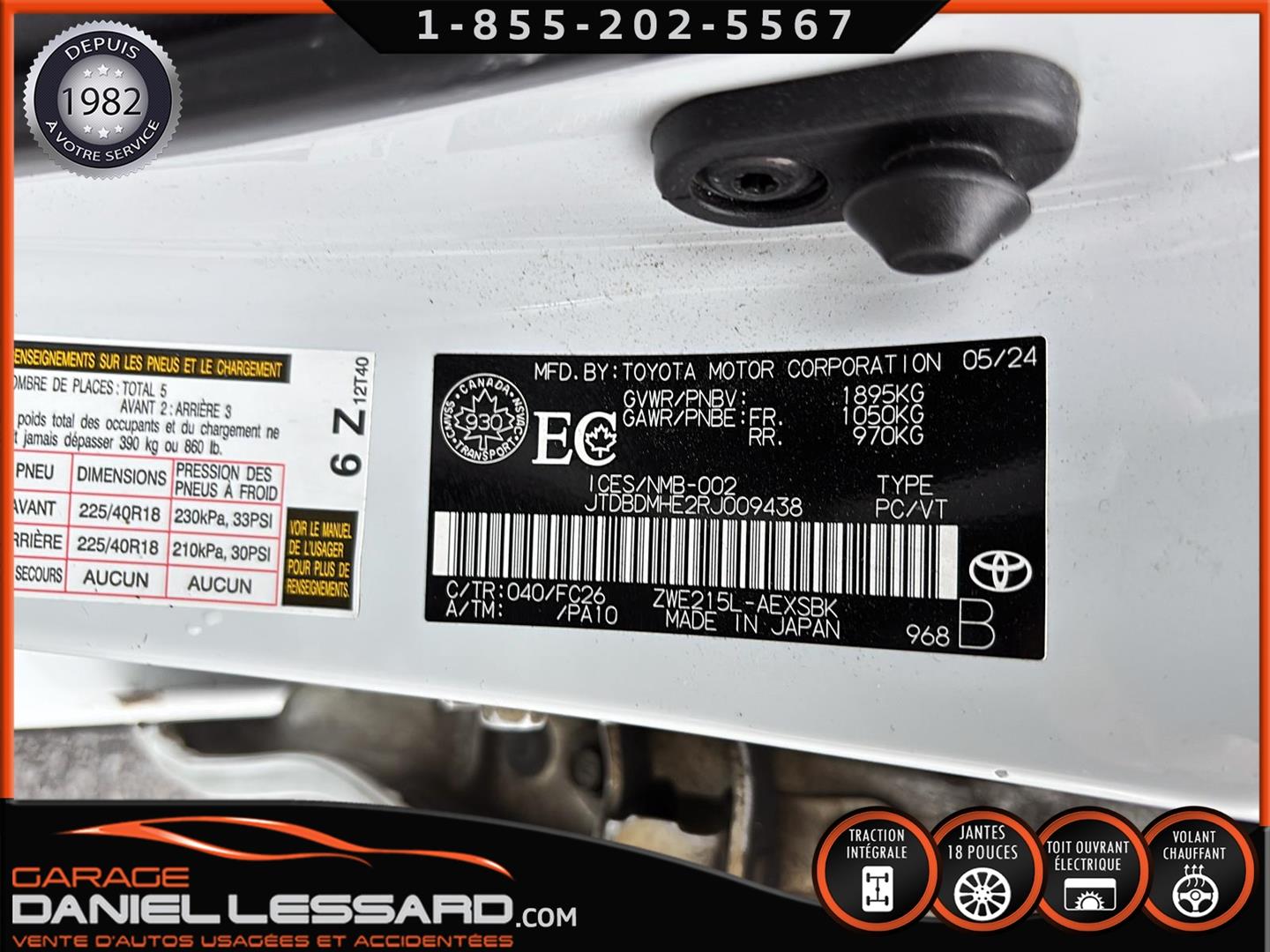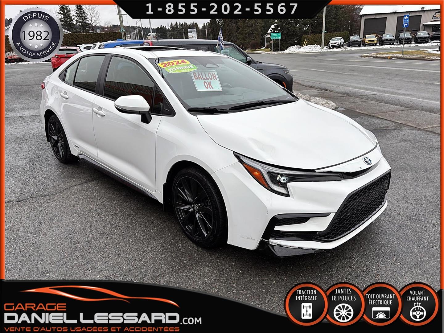 TOYOTA COROLLA 2024 HYBRIDE SE AWD, 1,8 LITRE 4 CYLINDRES, TRANSMISSION À VARIATION CONTINUE À COMMANDE ÉLECTRONIQUE, TOIT OUVRANT COULISSANT ET INCLINABLE À COMMANDE ASSISTÉE, ROUES DE 18 PO EN ALLIAGE SUR PNEUS BFGOODRICH ADVANTAGE, TRACTION INTÉGRALE, TOYOTA SAFETY SENSE 3.0, RECONNAISSANCE DES PANNEAUX DE SIGNALISATION, SYSTÈME D'AIDE AU MAINTIEN DANS LA VOIE, PHARES DE ROUTE AUTOMATIQUES, SYSTÈME PRÉCOLLISION, RÉGULATEUR DE VITESSE DYNAMIQUE, CLÉ INTELLIGENTE AVEC DÉMARRAGE À BOUTONPOUSSOIR, RECHARGE SANS FIL, COMPATIBILITÉ AVEC APPLE CARPLAY ET ANDROID AUTO SANS FIL, VOLANT CHAUFFANT GAINÉ DE CUIR, SIÈGES AVANT CHAUFFANTS, NOUS AVONS SEULEMENT 1 CLÉ