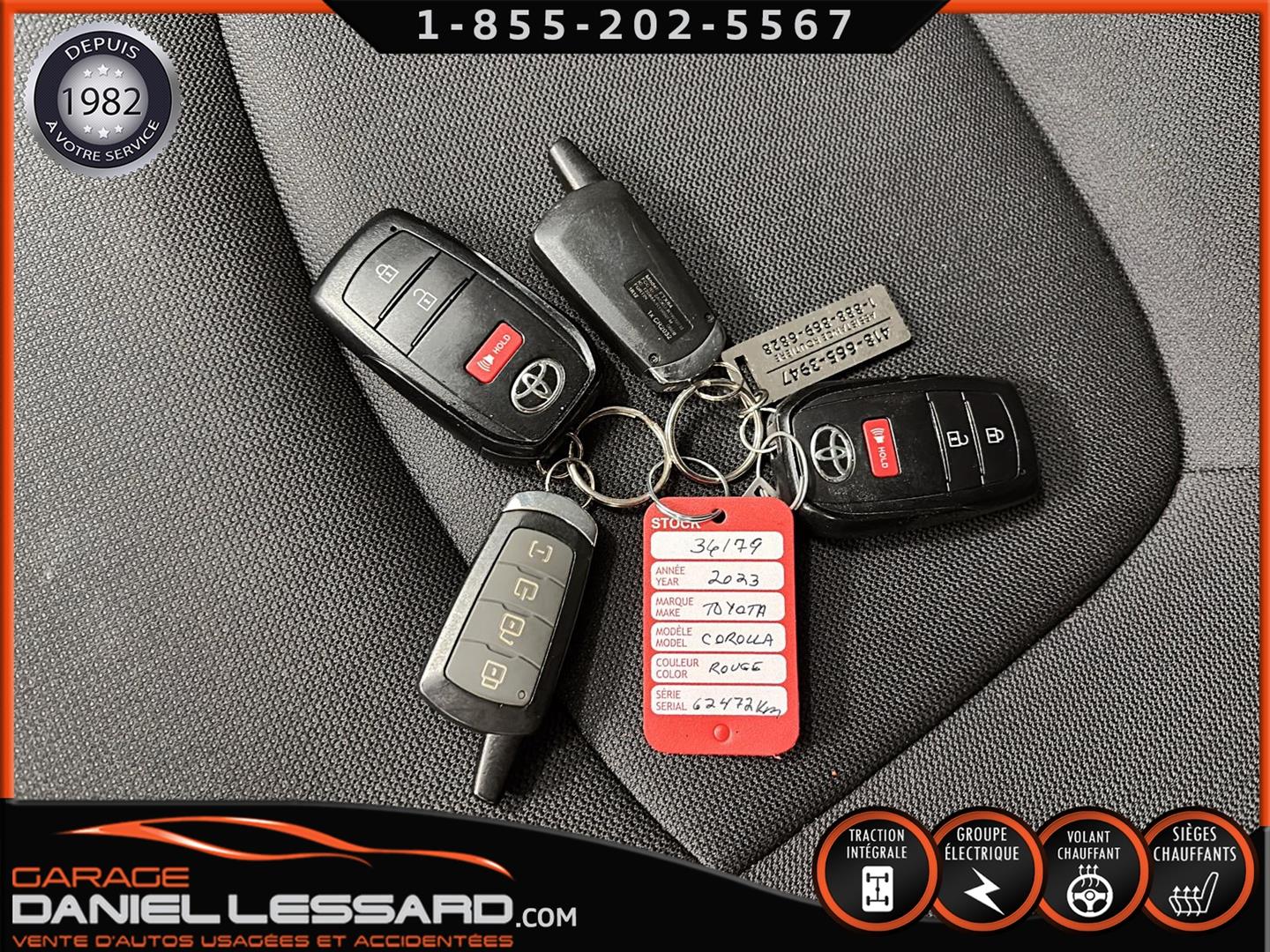TOYOTA COROLLA CROSS LE AWD 2023, MOTEUR 2.0L, AUTOMATIQUE, BANC AVANT, VOLANT ET PARE BRISE CHAUFFANT, CONTROL AUDIO, TÉLÉPHONIQUE ET CRUISE CONTROL AU VOLANT, STOP N GO, TRACTION CONTROL, ANGLE MORT, CAMERA DE RECUL, MAGS AVEC PNEU BRIDGESTONE BLIZZAK 215 / 65 / 17 AVEC 35% D'USURE, GARDE BOUE, VITRE TEINTÉ, DÉFLECTEUR AVANT, 2 CLÉS ET 2 MANETTES DE DÉMARREUR A DISTANCE