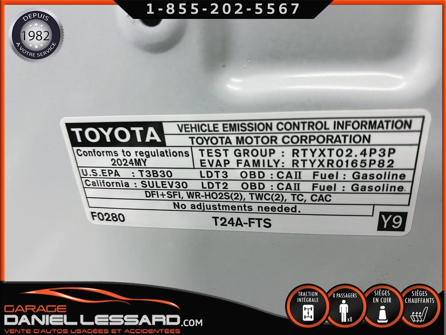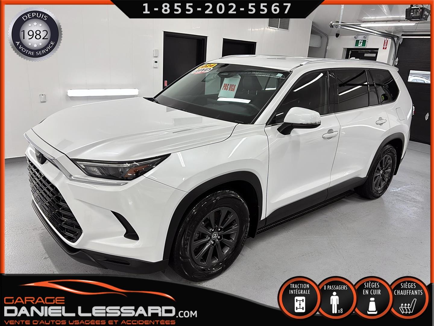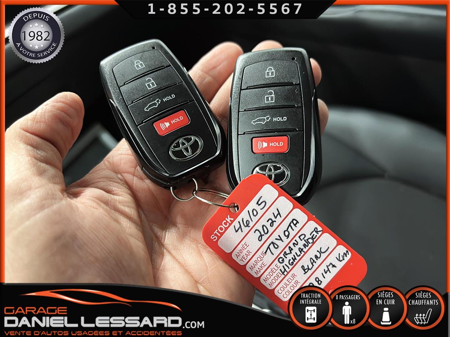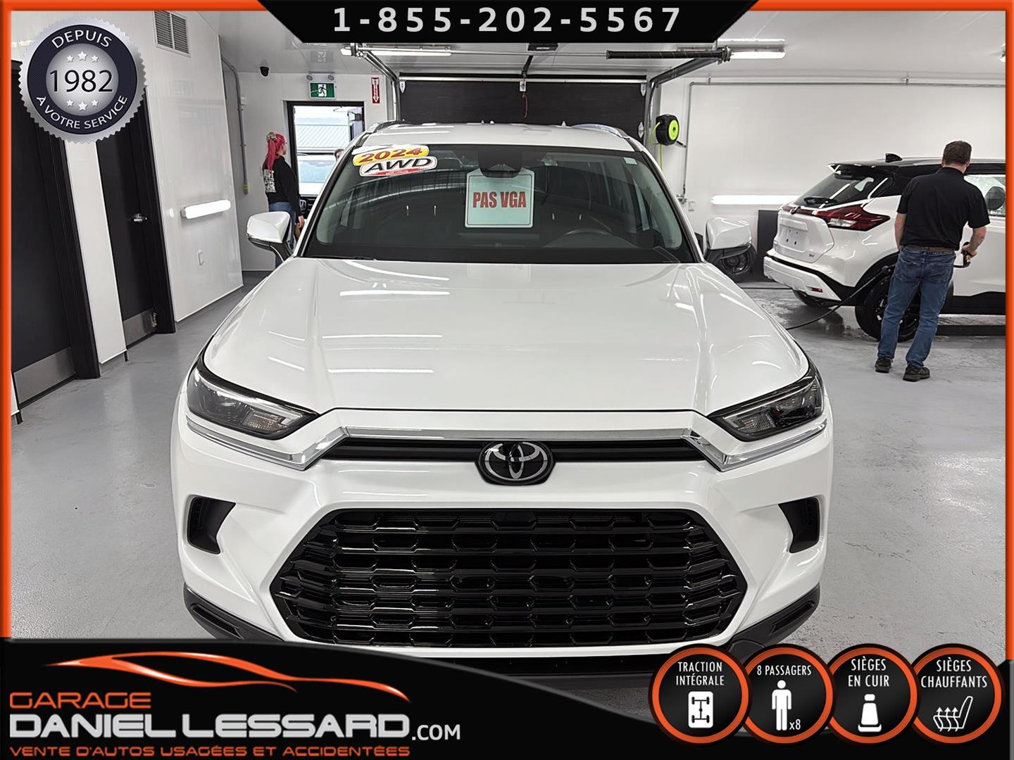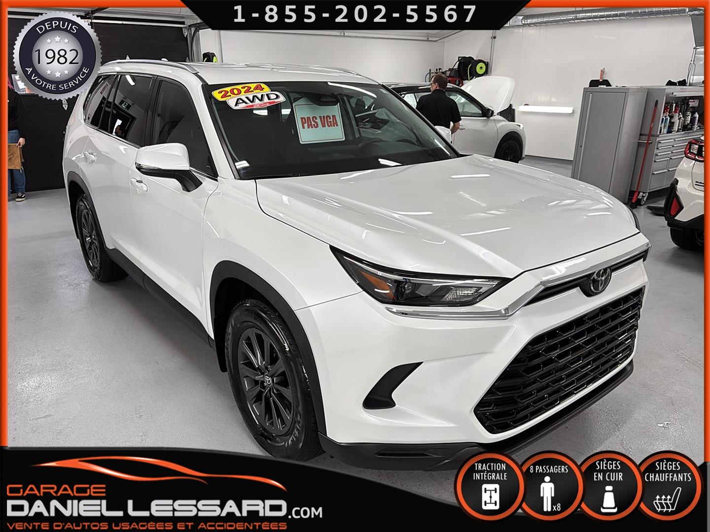 TOYOTA GRAND HIGHLINDER XLE AWD 2024, BAS KM, BLANC PERLE, 2.4 LITRES, 8 PLACES, LES BANC AVANT SONT ÉLECTRIQUE ET CHAUFFANT, VOLANT ET PARE BRISE CHAUFFANT, CONTROL AUDIO, TÉLÉPHONIQUE ET CRUISE CONTROL AU VOLANT, CAMERA DE RECUL, STORE DANS LES PORTE ARRIÈRE, PUSH START, VITRE TEINTÉ, PORTE BAGAGE, MODE ECO, SPORT, MUD ET ROCK, MAGS AVEC PNEU D'ÉTÉ255 / 65 / 18 AVEC 25% D'USURE, GARDE BOUE, TAPIS DE CAOUTCHOUC, CACHE BAGAGE ET 2 CLÉ NEUVES TOYOTA