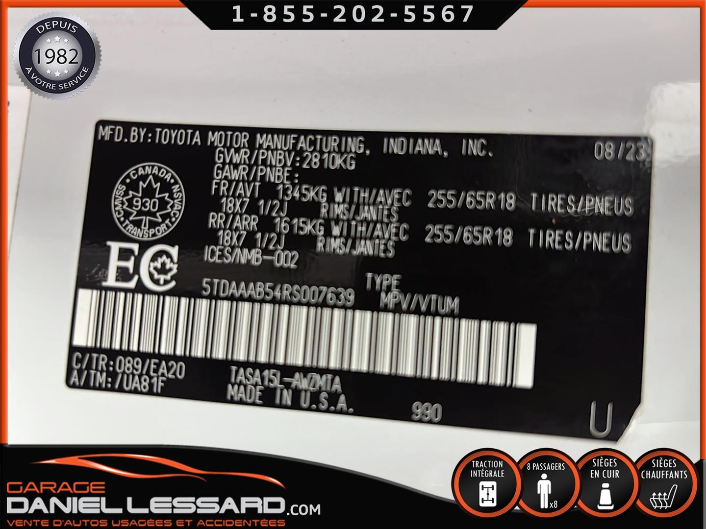 VOLÉ ET RETROUVÉ, AUCUNE MENTION SUR LES ENREGISTREMENTS ( NOUS AVONS REMPLACER LA BACK GLASS + CLÉ ) MODÈLE XLE AWD 8 PASSAGÉES, 2.4 LITRES, INTÉRIEUR EN CUIR, TRÈS BIEN ÉQUIPÉ, INSPECTÉ AU COMPLET, CHANGEMENT D'HUILE FAIT, RAPPEL TOYOTA FAIT, GARANTIE DE 6 MOIS OU 10 000 KM, BALANCE DE GARANTIE TOYOTA JUSQU'AU 30 AOUT 2026 OU 60 000 KM ET 30 AOUT 2028 OU 100 000 KM PROPULSION ( VÉRIFIER LA VALIDITÉ ET LES MODALITÉS DE LA GARANTIE AUPRÈS DE VOTRE DEALER TOYOTA ) , ÉCONOMISEZ GROS !! PLUS DE DÉTAILS ET PHOTOS AU WWW.DANIELLESSARD.COM