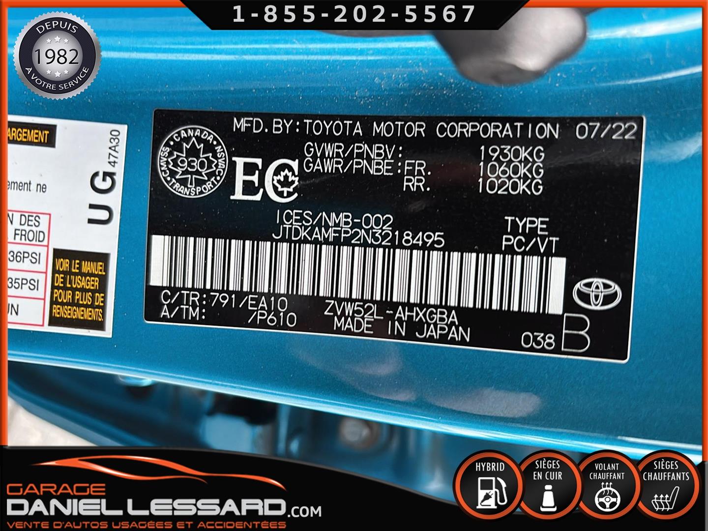 TOYOTA PRIUS PRIME GROUPE AMÉLIORÉ, À BAS KM, MOTEUR 4 CYLINDRES DE 1,8 LITRE AVEC UNE PUISSANCE NETTE DE 121 CH (90 KW), HYBRIDE BRANCHABLE, SYSTÈME HYBRIDE SYNERGÉTIQUE, SYSTÈME DE DISTRIBUTION À CALAGE VARIABLE INTELLIGENT, CYCLE ATKINSON, BATTERIE AU LITHIUM-ION, ÉCRAN HD DE 11,6 PO AVEC NAVIGATION INTÉGRÉE, SIÈGES GARNIS DE SOFTEX CHAUFFANT, VOLANT CHAUFFANT, RECHARGE SANS FIL QI AVEC TÉMOIN DE CHARGE LUMINEUX, ROUES DE 15 PO EN ALLIAGE D’ALUMINIUM SUR PNEU D'ÉTÉ BRIGESTONE 195 / 65 / 15 AVEC 20% D'USURE, MONITEUR D’ANGLES MORTS AVEC ALERTE DE CIRCULATION TRANSVERSALE ARRIÈRE, NOUS AVONS LES DEUX CLÉ ET LE CABLE DE RECHARGE, VÉHICULE PRÊT À PARTIR ET POSSIBILITÉ DE FINANCEMENT