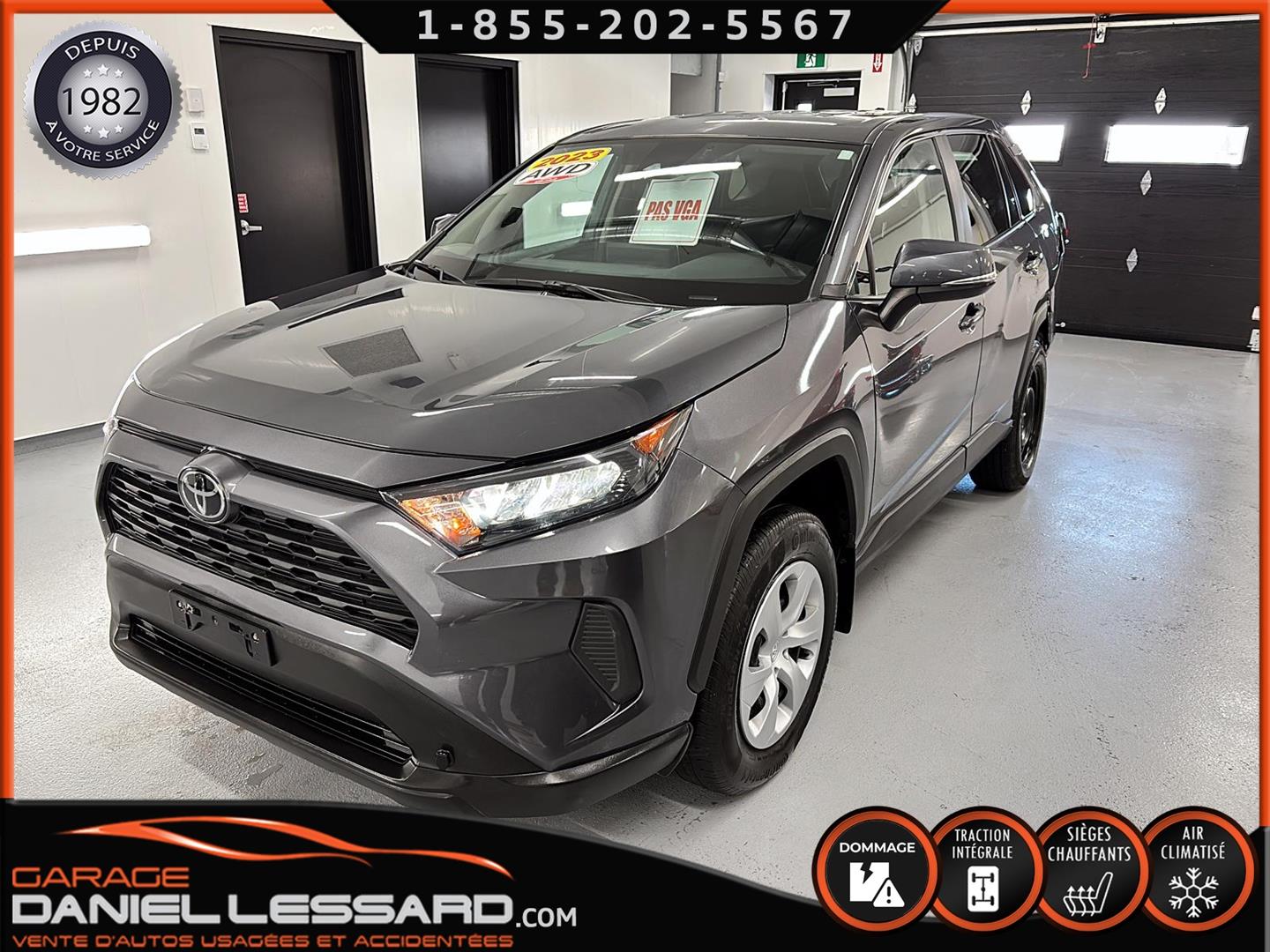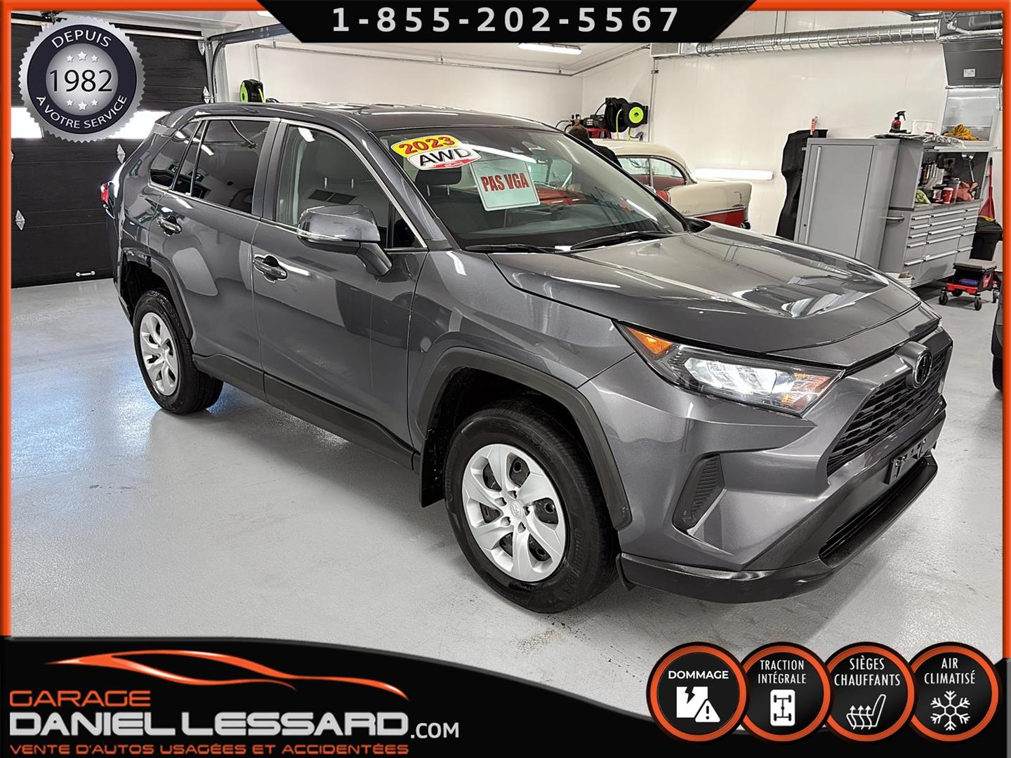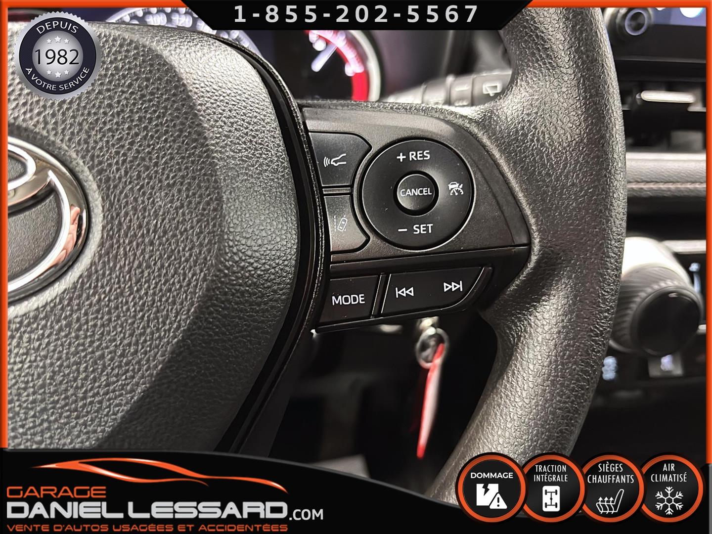 RAV4 LE AWD 2023, MOTEUR 2,5 LITRE DE 4 CYLINDRES, BOÎTE AUTOMATIQUE DIRECT SHIFT 8 RAPPORTS, SÉLECTEUR TOUT-TERRAIN, SIÈGES AVANT CHAUFFANTS, ROUES DE 17 PO EN ACIER SUR 2 PNEUS CONTINENTAL PROCONTACT ET 2 SUR PNEUS MICHELIN PRIMACY, MULTIMÉDIA TOYOTA 8 PO, COMPATIBILITÉ AVEC APPLE CARPLAY ET ANDROID AUTO, TOYOTA SAFETY SENSE 2.5, SYSTÈME D'AIDE AU MAINTIEN DANS LA VOIE, RÉGULATEUR DE VITESSE DYNAMIQUE À RADAR, SYSTÈME PRÉCOLLISION AVEC FONCTION DE DÉTECTION DES PIÉTONS, PHARES DE ROUTE AUTOMATIQUES, MONITEUR D’ANGLES MORTS AVEC SYSTÈME D’ALERTE DE CIRCULATION TRANSVERSALE ARRIÈRE, NOUS AVONS SEULEMENT 1 CLÉ ET UNE MANETTE DE DÉMARREUR À DISTANCE, LE MISE EN SERVICE EST LE 6 AVRIL 2023, VOIR AVEC LE CONCESSIONNAIRE SI LA GARANTIE EST APPLICABLE SUR LE VÉHICULE.