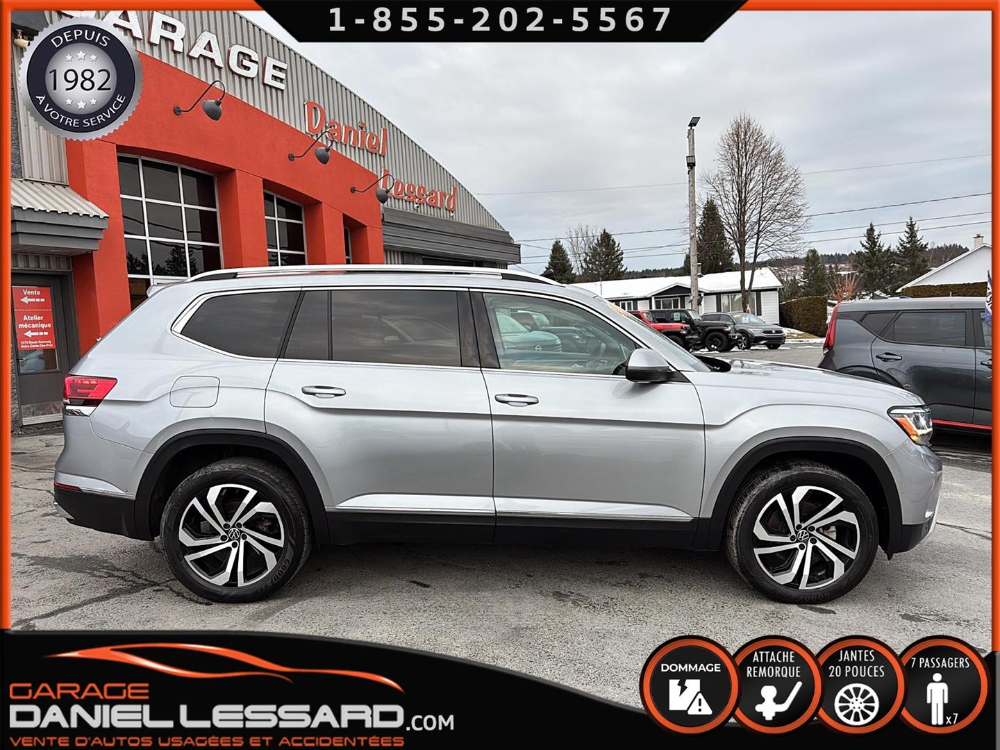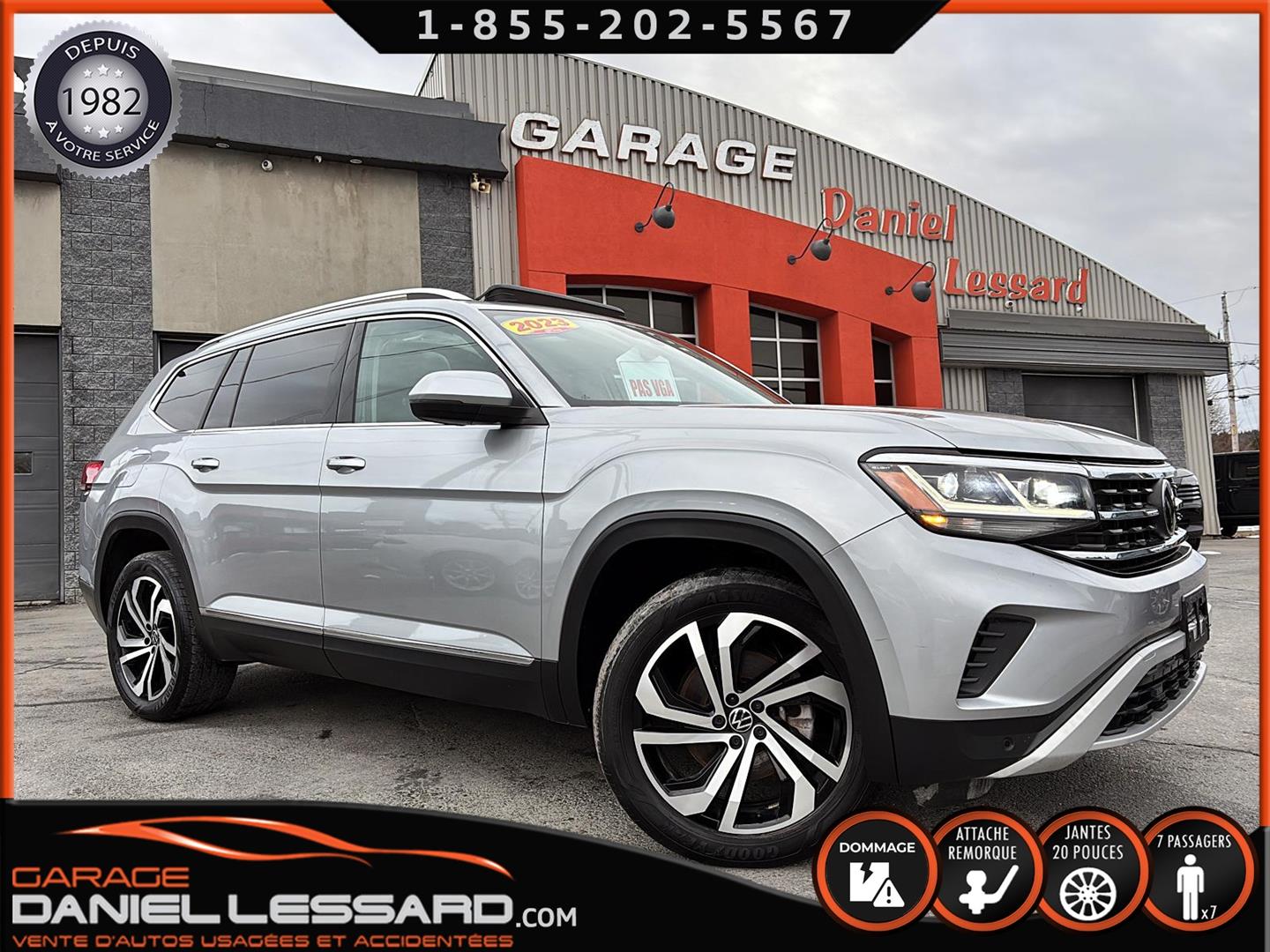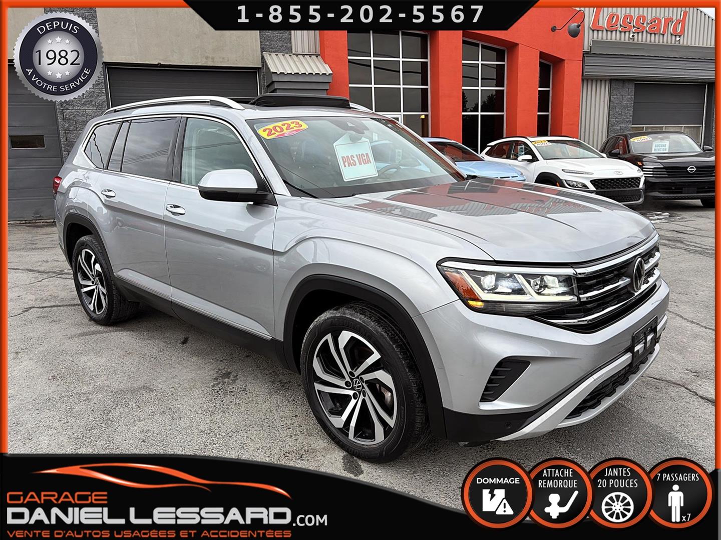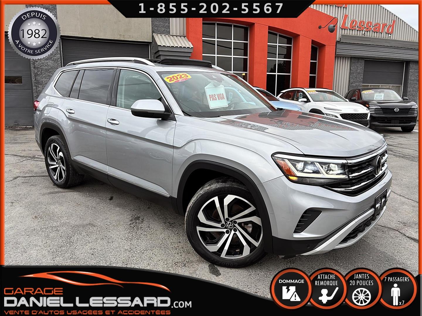 VOLKSWAGEN ATLAS HIGHLINE 2023 AVEC 53810 KM, MOTEUR V6 3.6 LITRES FSI QUI PEUT REMORQUÉ 5000 LBS, TRACTION INTÉGRALE 4MOTION, 7 PLACES, TOIT OUVRANT PARANOMIQUE, SIÈGE EN CUIR MÉMOIRE VENTILÉ ET CHAUFFANT A LAVANT ET CHAUFFANT POUR LES SIEGE DU CENTRE, MAG 20" SUR PNEUS GOOD YEAR 255/50/20, HAYON ÉLECTRIQUE, PHARES AVANT AU DEL AVEC SYSTÈME D'ÉCLAIRAGE ADAPTATIF, BLUETOOTH, APPLE CARPLAY, ANDROID AUTO, VOLANT CHAUFFANT, CRUISE ADAPTATIF, DÉTECTEUR D'ANGLE MORT, NOUS AVONS 1CLÉS AVEC DÉMARREUR INTÉGRÉ ET LA LUCK NUT