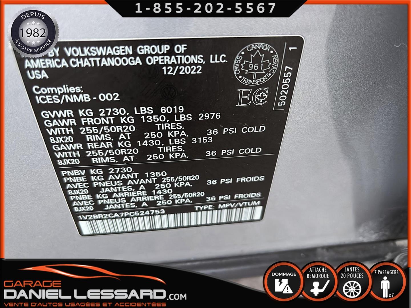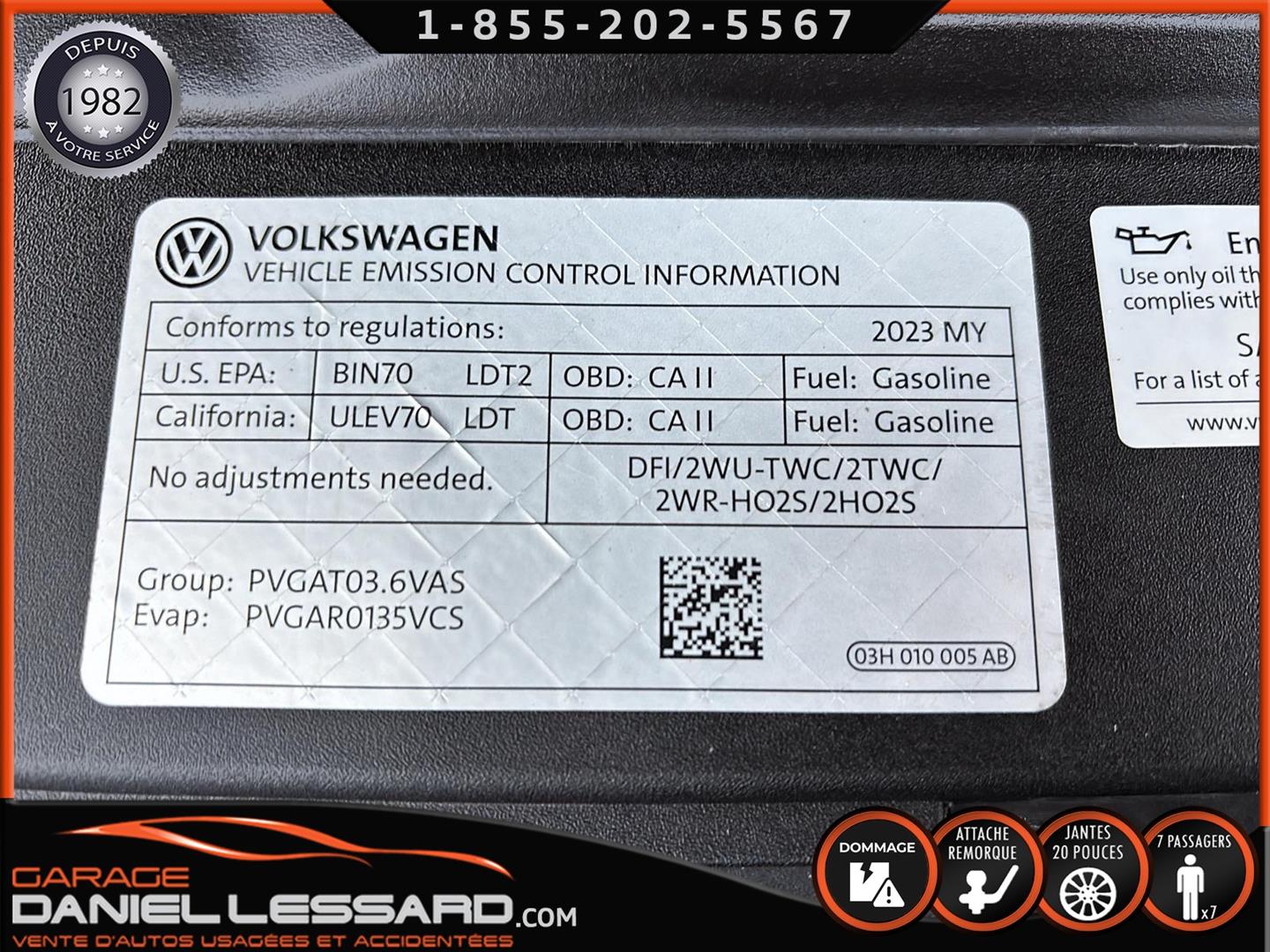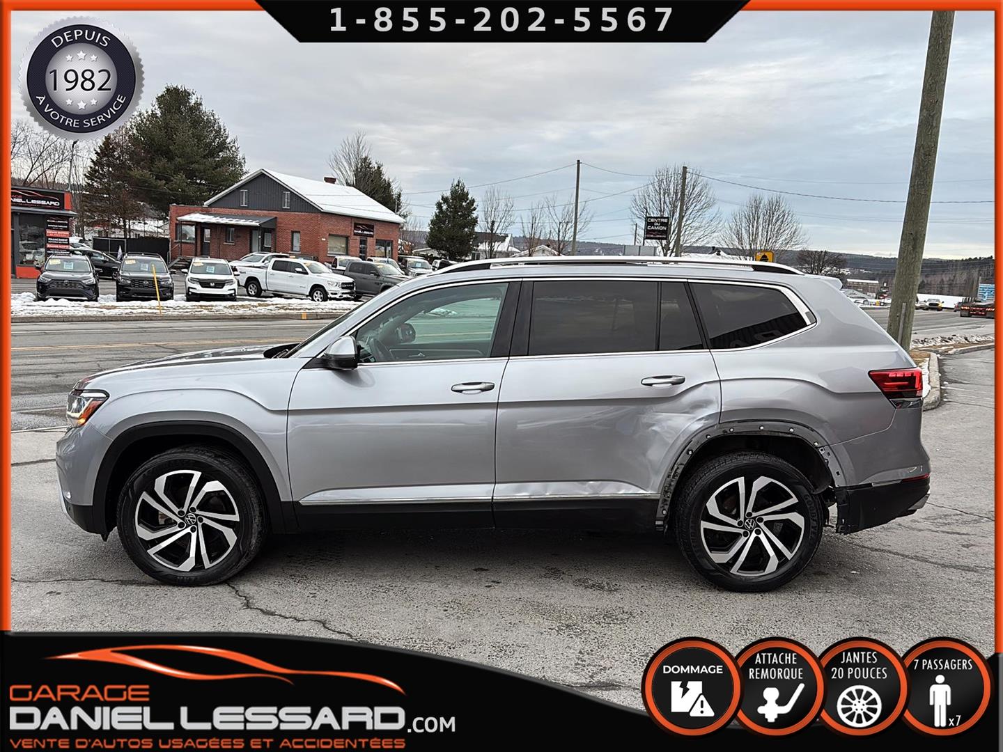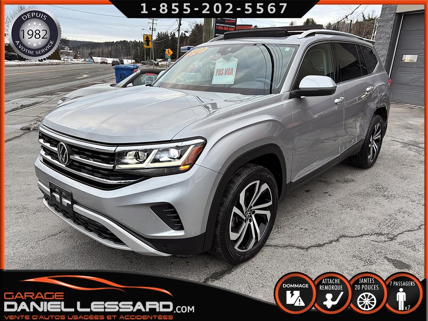 VOLKSWAGEN ATLAS HIGHLINE 2023 AVEC 53810 KM, MOTEUR V6 3.6 LITRES FSI QUI PEUT REMORQUÉ 5000 LBS, TRACTION INTÉGRALE 4MOTION, 7 PLACES, TOIT OUVRANT PARANOMIQUE, SIÈGE EN CUIR MÉMOIRE VENTILÉ ET CHAUFFANT A LAVANT ET CHAUFFANT POUR LES SIEGE DU CENTRE, MAG 20" SUR PNEUS GOOD YEAR 255/50/20, HAYON ÉLECTRIQUE, PHARES AVANT AU DEL AVEC SYSTÈME D'ÉCLAIRAGE ADAPTATIF, BLUETOOTH, APPLE CARPLAY, ANDROID AUTO, VOLANT CHAUFFANT, CRUISE ADAPTATIF, DÉTECTEUR D'ANGLE MORT, NOUS AVONS 1CLÉS AVEC DÉMARREUR INTÉGRÉ ET LA LUCK NUT