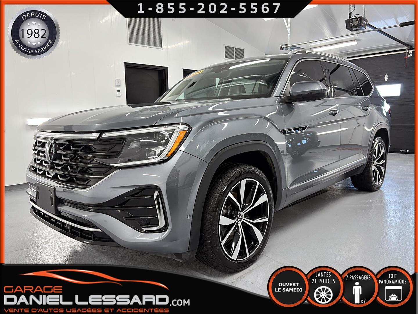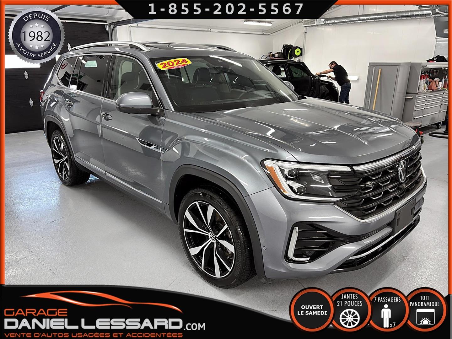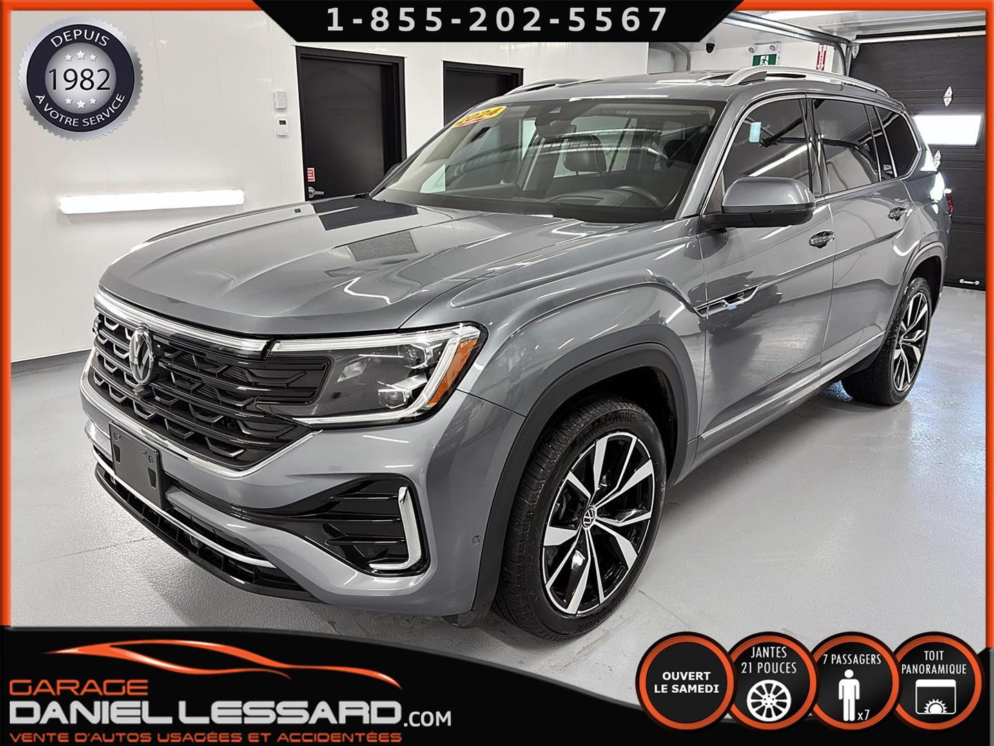 VOLKSWAGEN ATLAS EXECLINE R-LINE 4 MOTION 2024, 4CYLINDRES 2.0 LITRES TURBO, KILOMETRAGE SEULEMENT 42732 KM, INTÉRIEUR EN CUIR, 7 PLACES, LES BANC AVANT SONT ÉLECTRIQUE CHAUFFANT ET VENTILÉ A LAVANT ET CHAUFFANT POUR LA RENGÉ DU CENTRE, VOLANT CHAUFFANT, TOIT PANORAMIQUE, CONTROL AUDIO, TÉLÉPHONIQUE ET CRUISE CONTROL AU VOLANT, ANGLE MORT, CLIMATISATION 2 ZONES, PUSH START, CAMERA DE RECUL 360 + SENSOR DE RAPPROCHEMENT, NAVIGATION, SYSTÈME DE SON HARMAN KARDON, PLAQUE DE RECHARGE SANS FIL, ENSEMBLE REMORQUAGE QUI PEUX REMORQUER 5000LBS, MAGS AVEC PNEU D'ÉTÉ 265 / 45 / 21 AVEC 35% D'USURE, 1 SEUL CLÉ AVEC DÉMARREUR !** PETITE IMPERFECTION AU PARE CHOC ARRIERE.**