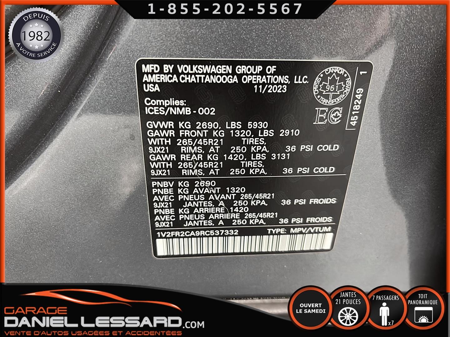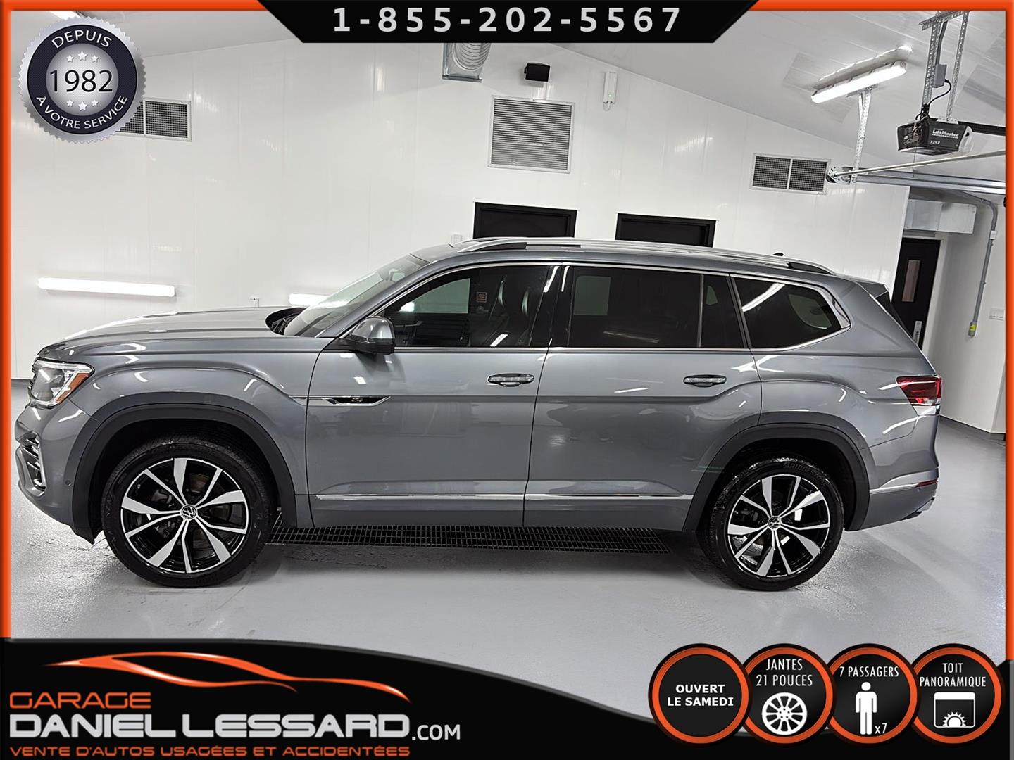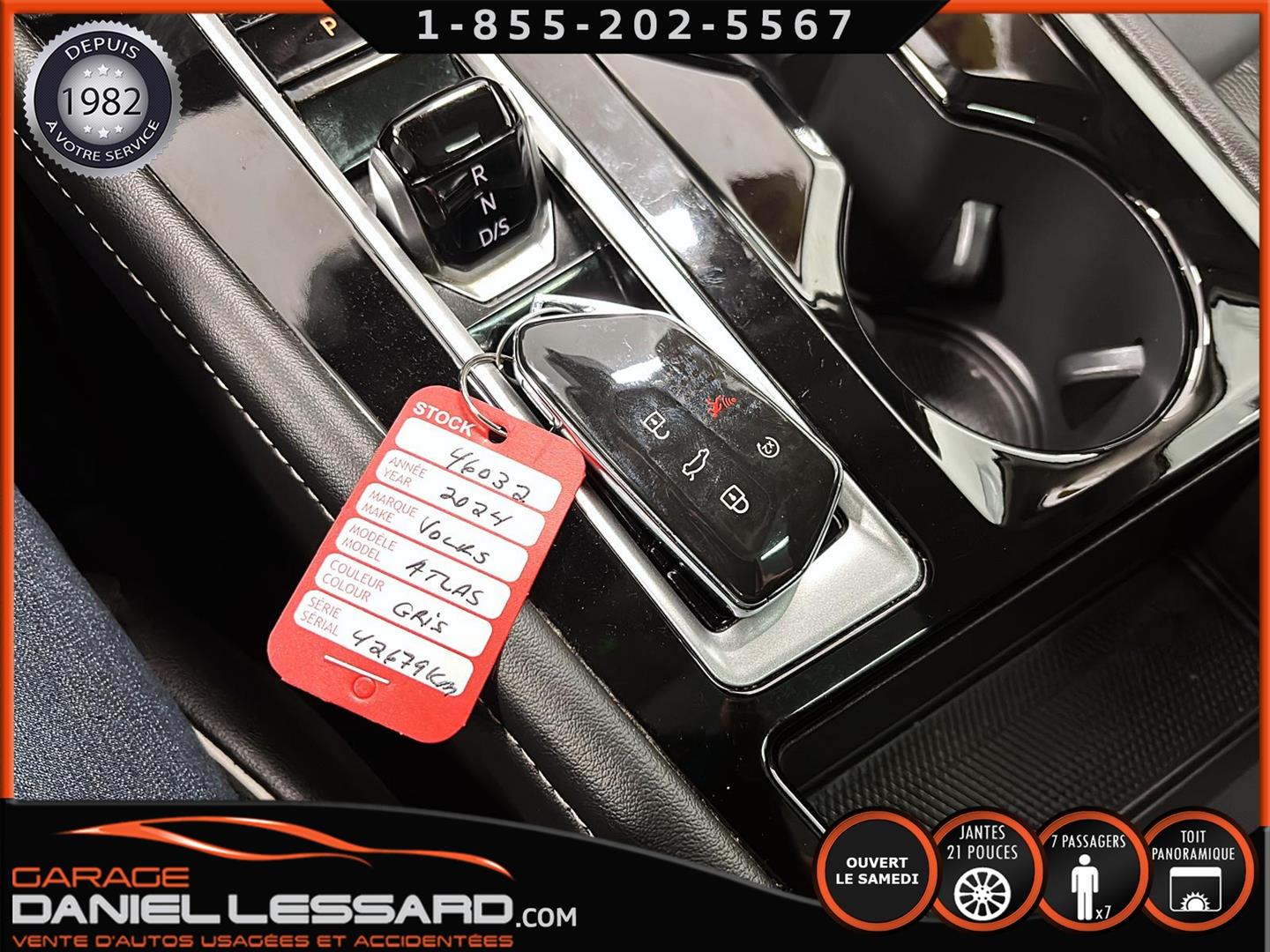 VOLKSWAGEN ATLAS EXECLINE R-LINE 4 MOTION 2024, 4CYLINDRES 2.0 LITRES TURBO, KILOMETRAGE SEULEMENT 42732 KM, INTÉRIEUR EN CUIR, 7 PLACES, LES BANC AVANT SONT ÉLECTRIQUE CHAUFFANT ET VENTILÉ A LAVANT ET CHAUFFANT POUR LA RENGÉ DU CENTRE, VOLANT CHAUFFANT, TOIT PANORAMIQUE, CONTROL AUDIO, TÉLÉPHONIQUE ET CRUISE CONTROL AU VOLANT, ANGLE MORT, CLIMATISATION 2 ZONES, PUSH START, CAMERA DE RECUL 360 + SENSOR DE RAPPROCHEMENT, NAVIGATION, SYSTÈME DE SON HARMAN KARDON, PLAQUE DE RECHARGE SANS FIL, ENSEMBLE REMORQUAGE QUI PEUX REMORQUER 5000LBS, MAGS AVEC PNEU D'ÉTÉ 265 / 45 / 21 AVEC 35% D'USURE, 1 SEUL CLÉ AVEC DÉMARREUR !** PETITE IMPERFECTION AU PARE CHOC ARRIERE.**